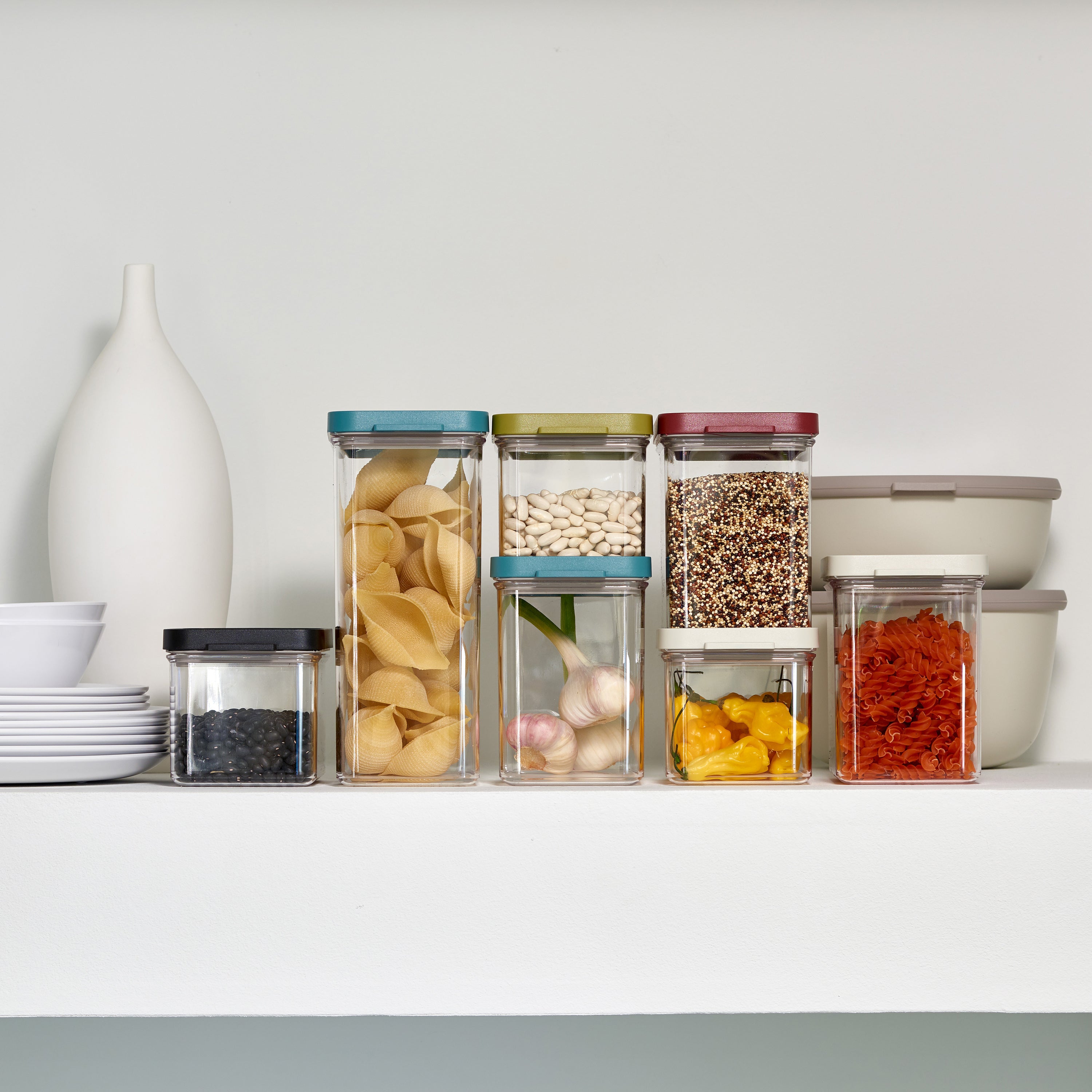 Elke vershouddoos heeft een stevig deksel, voorzien van een witte afdichtring, wat zorgt voor een luchtdichte afsluiting. Ideaal voor het bewaren van droge etenswaren, zoals pasta, bloem, suiker, koekjes en snoepjes!