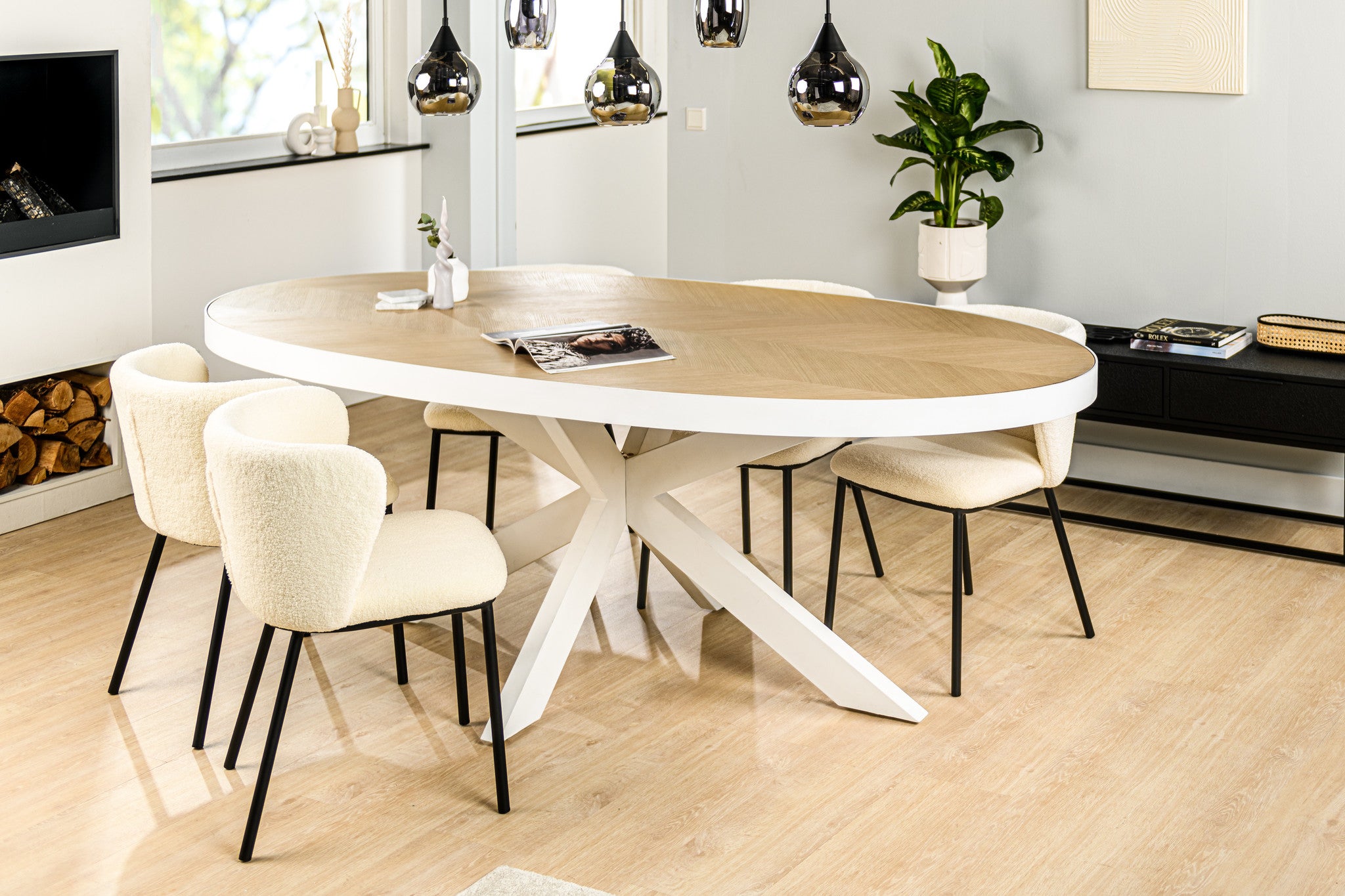 Metal white - Eettafel - ovaal - 230cm - eik fineer - stalen rand - kr