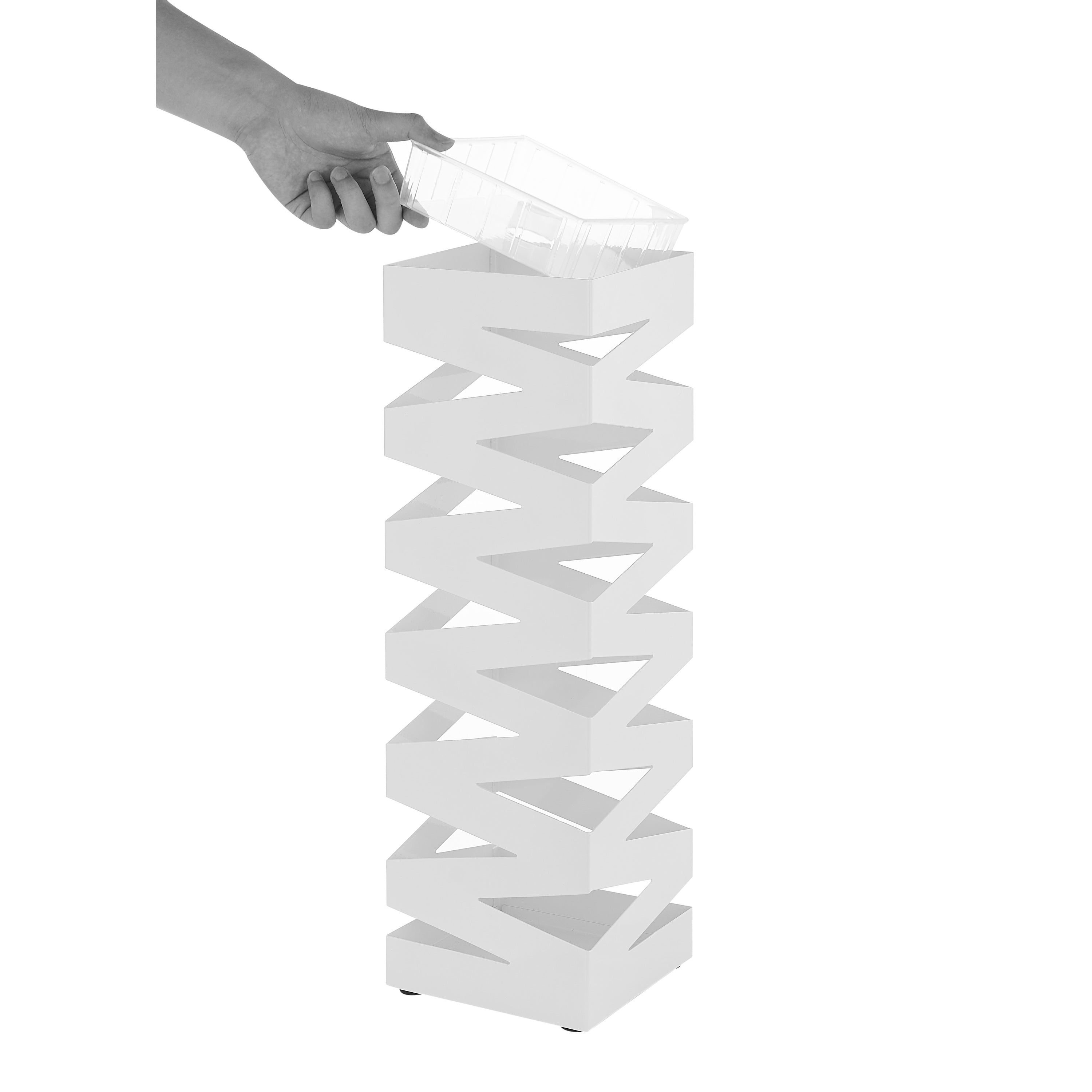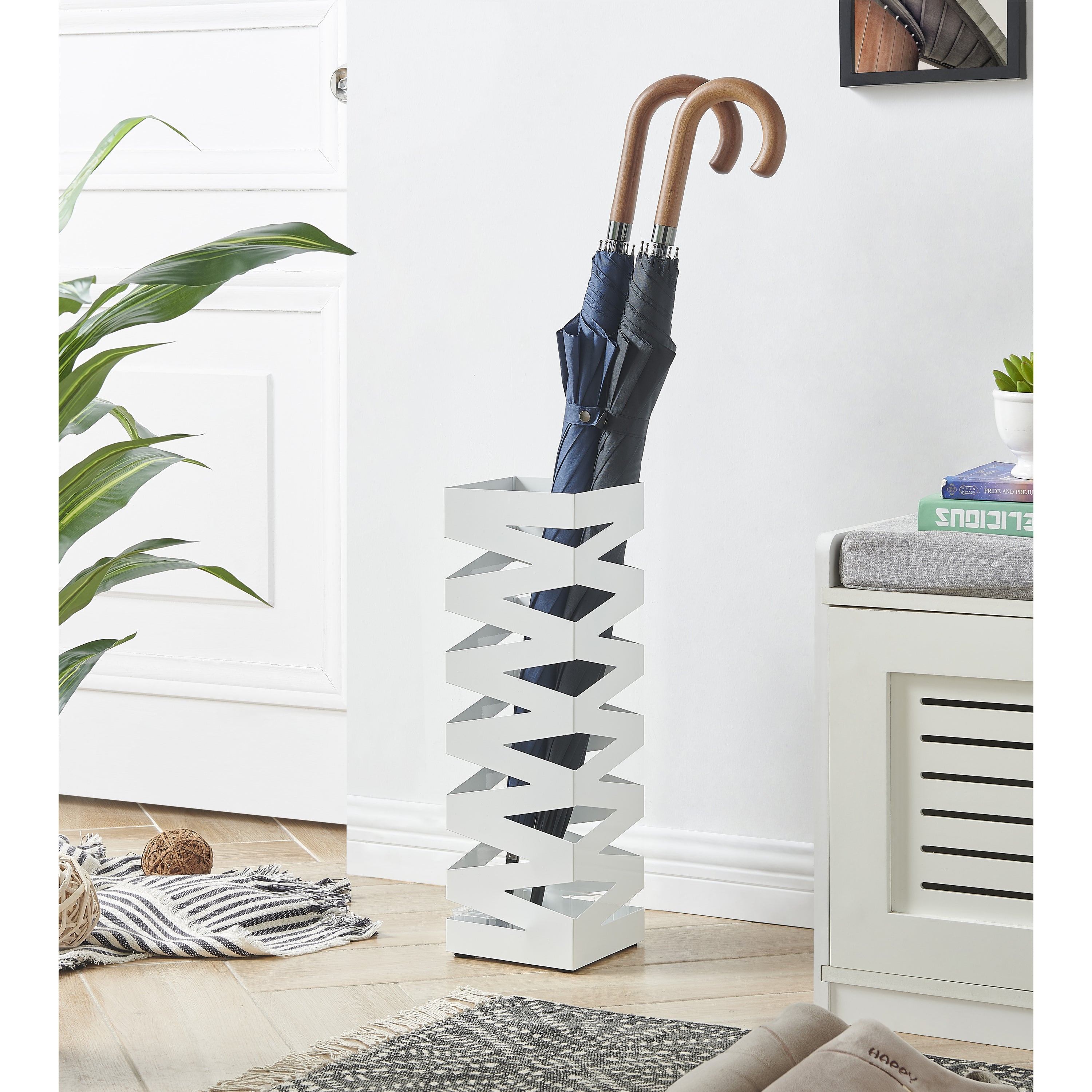 Metalen Paraplubak, Bak voor Paraplu's met Waterbakje, Metaal, Wit