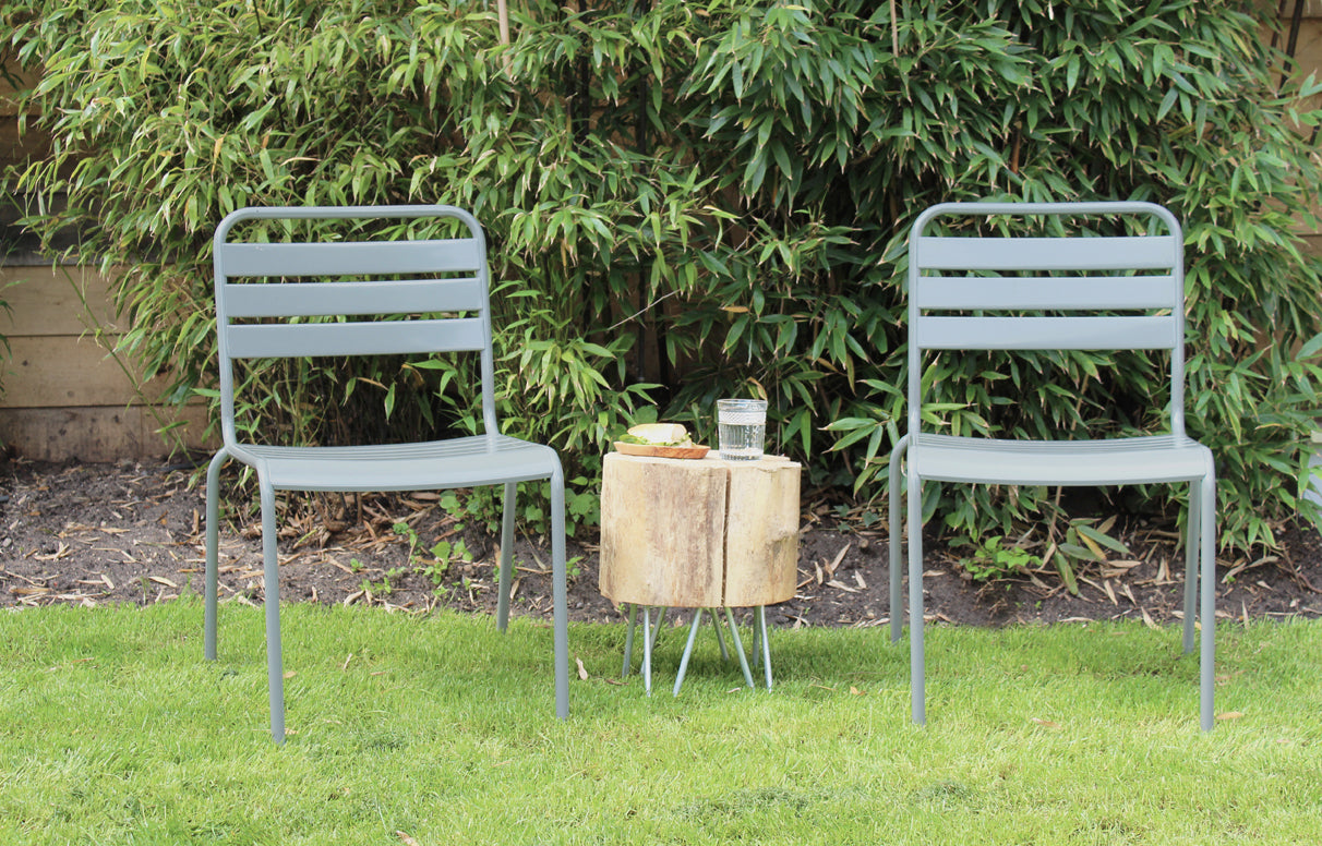 Materiaal Het is verstandig om je metalen meubelen regelmatig schoon te maken met een sopje van afwasmiddel. Op deze manier hebben vuil en overige agressieve stoffen minder kans om de coating aan te tasten. Zorg ervoor dat je je meubelen droog opbergt of na een regenbui afneemt met een droge doek, zeker op de naden. Op deze manier heeft roestvorming nauwelijks kans.sdf Als je tuinmeubelen beschadigd zijn adviseren wij je het aangetaste oppervlak z.s.m. te behandelen met repairspray.