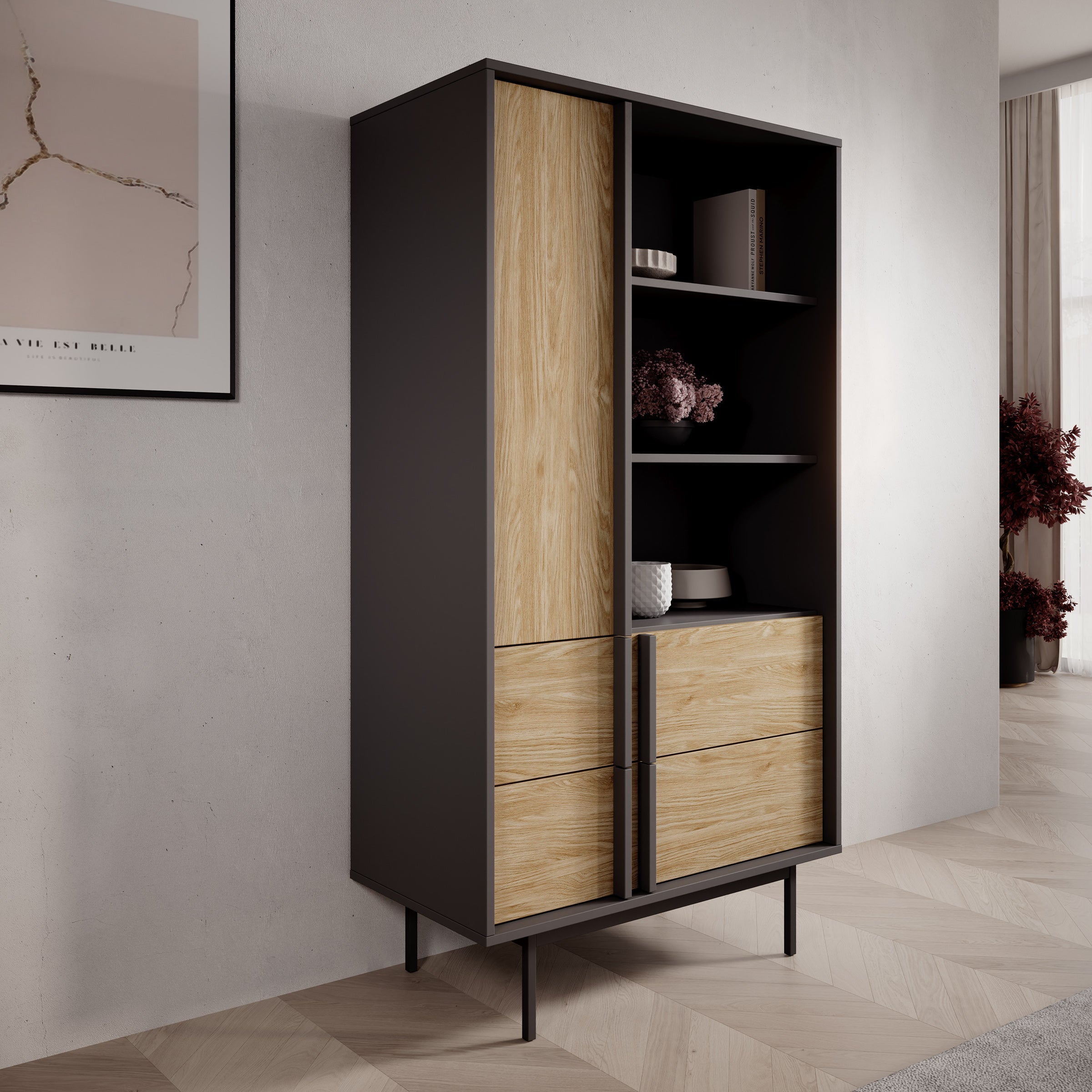Meubella - Antigo - Boekenkast - Eiken|Antraciet - 83x43x155 cm
