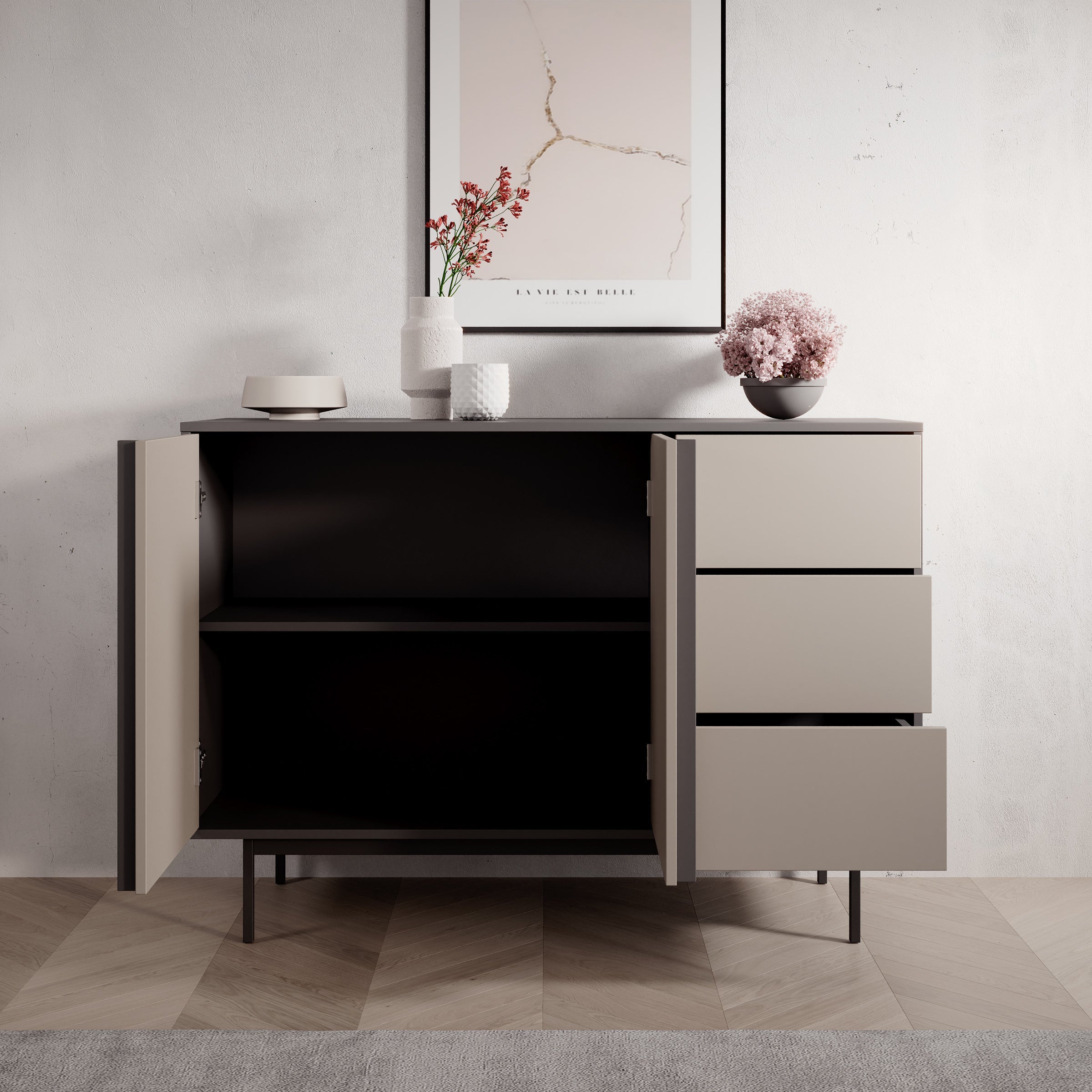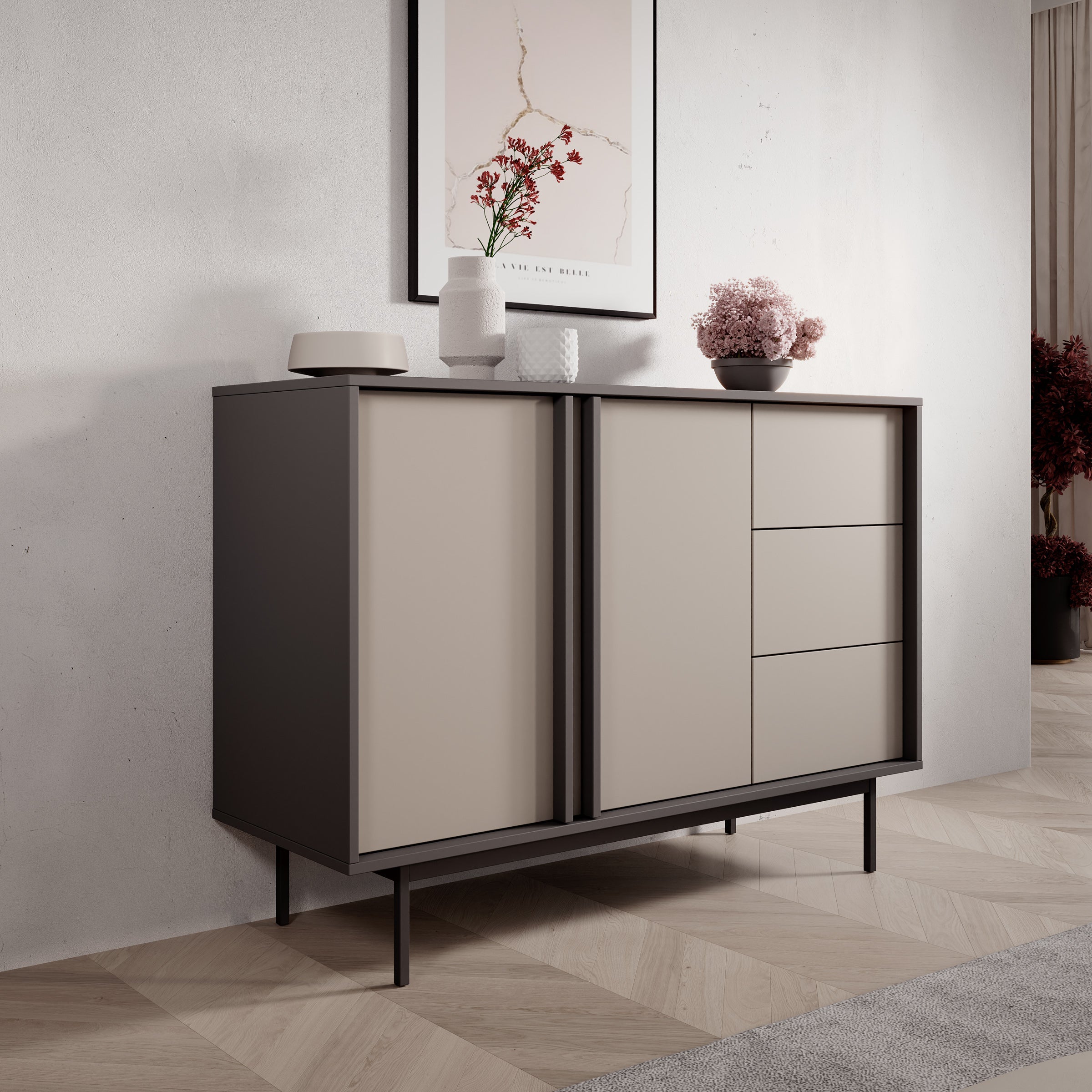 Meubella - Antigo - Dressoir - Beige|Antraciet - 123x43x87 cm
