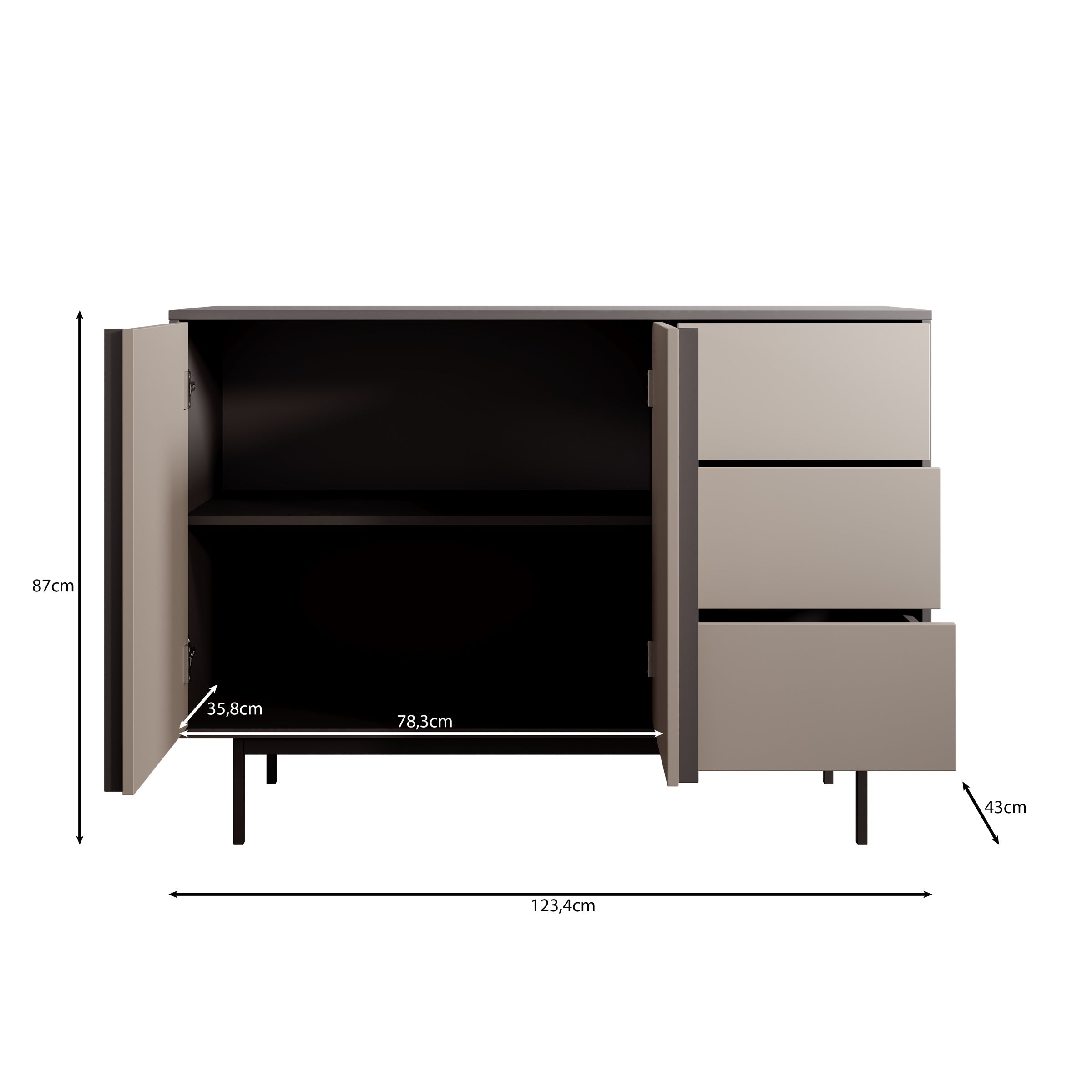 Meubella - Antigo - Dressoir - Eiken|Antraciet - 123x43x87 cm