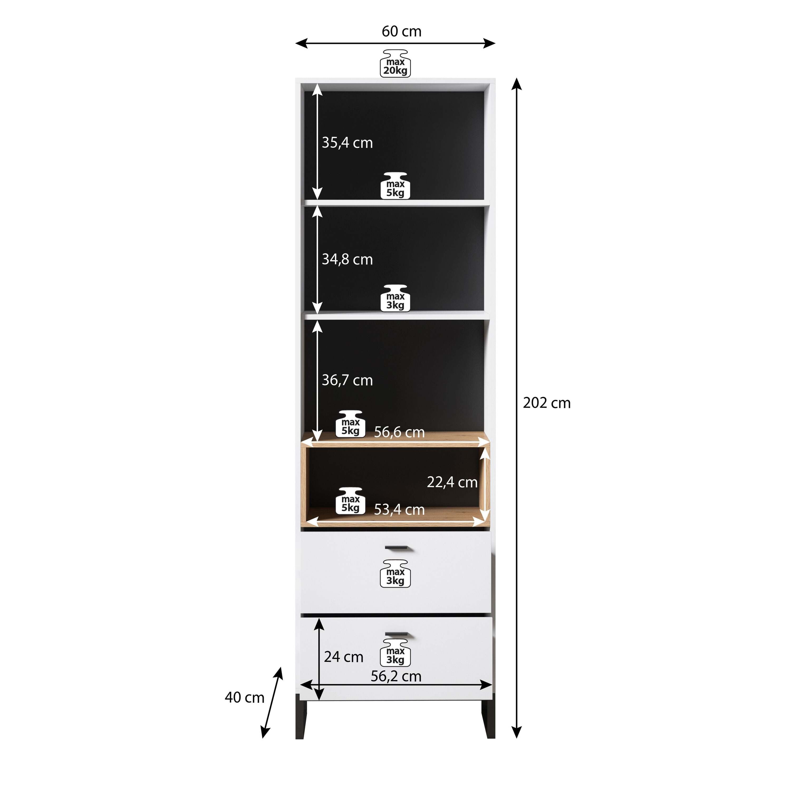 Meubella - Boekenkast Ozzy - Eiken - Zwart - 60 cm