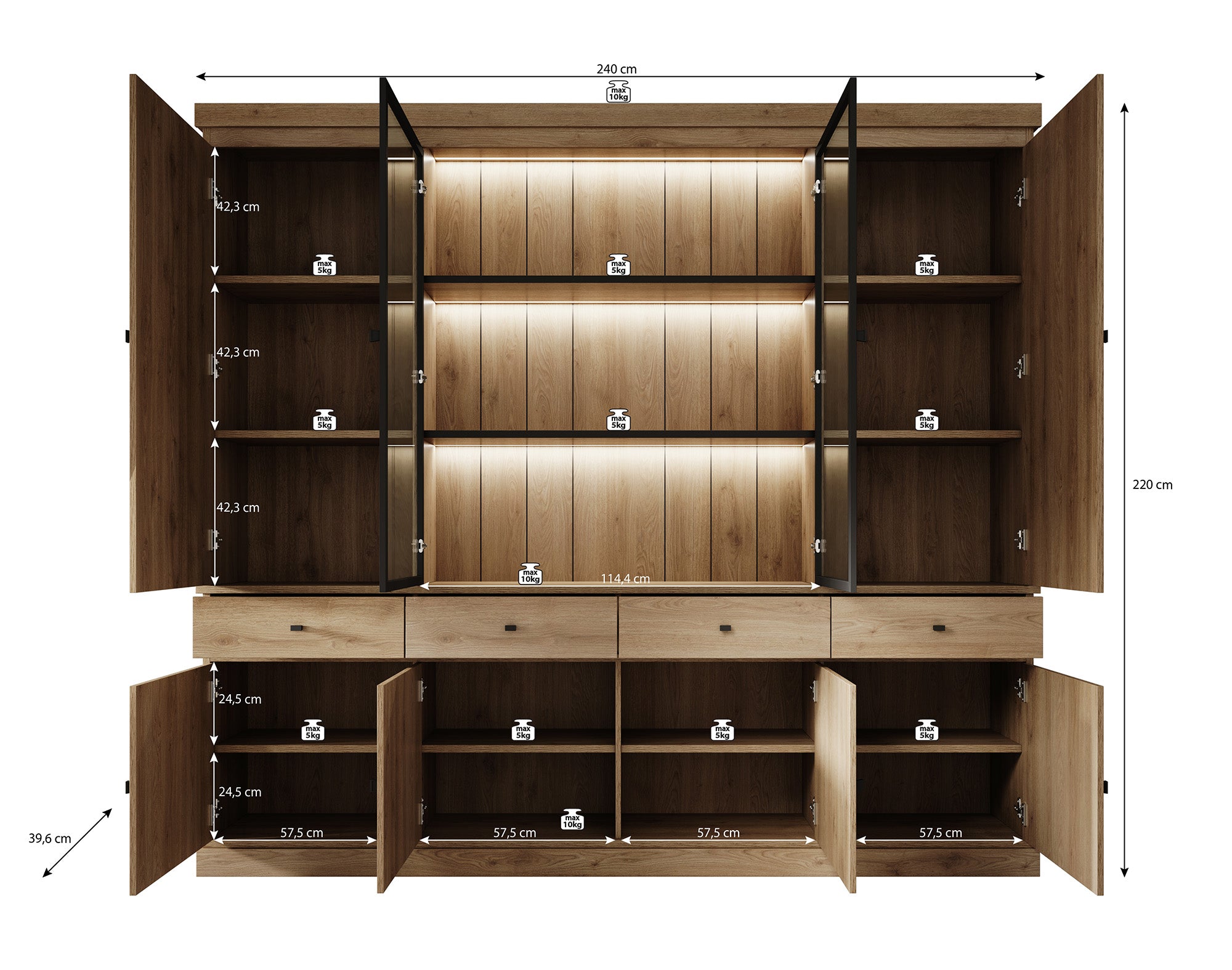 Meubella Buffetkast Vince 4 - Eiken - 240 cm