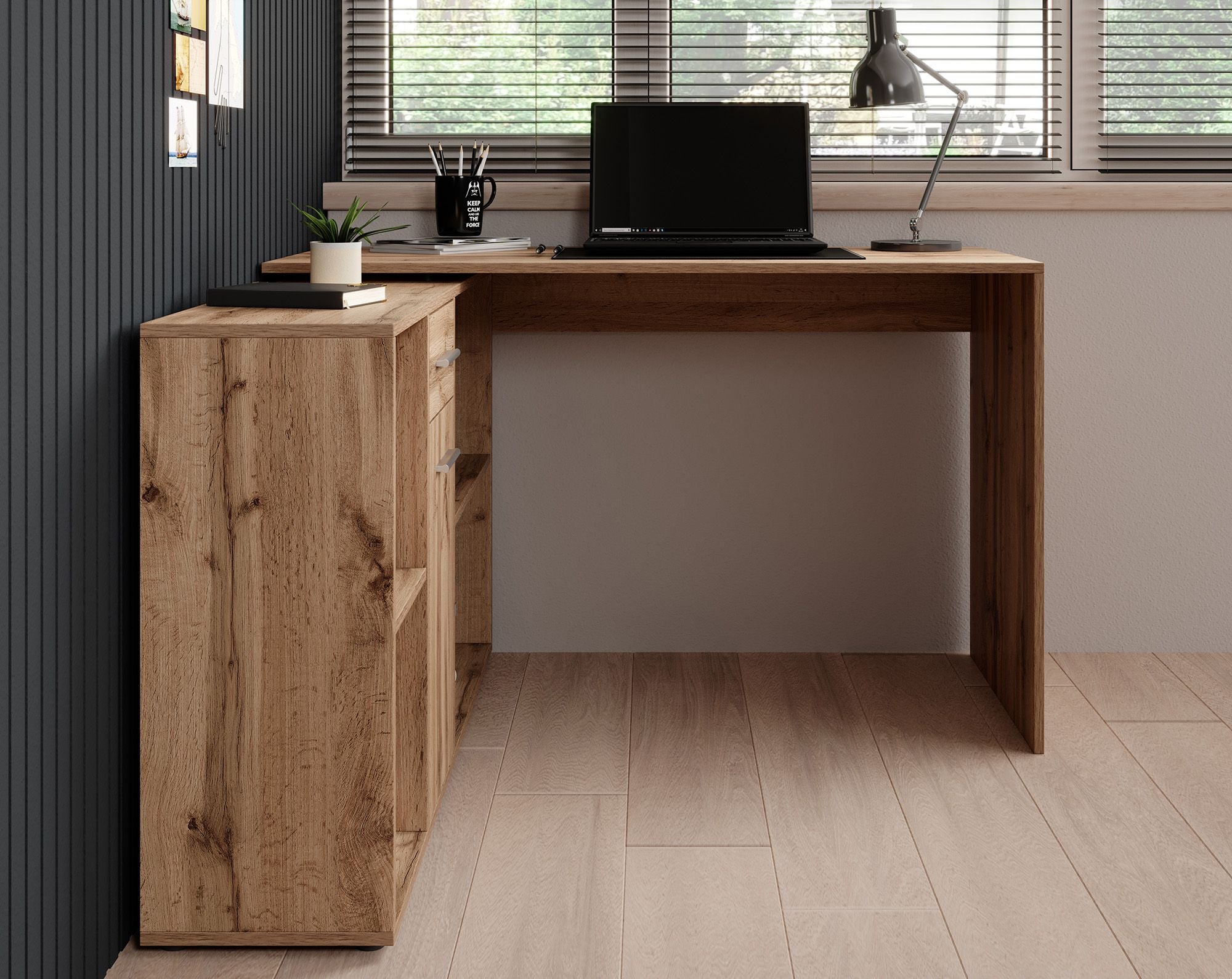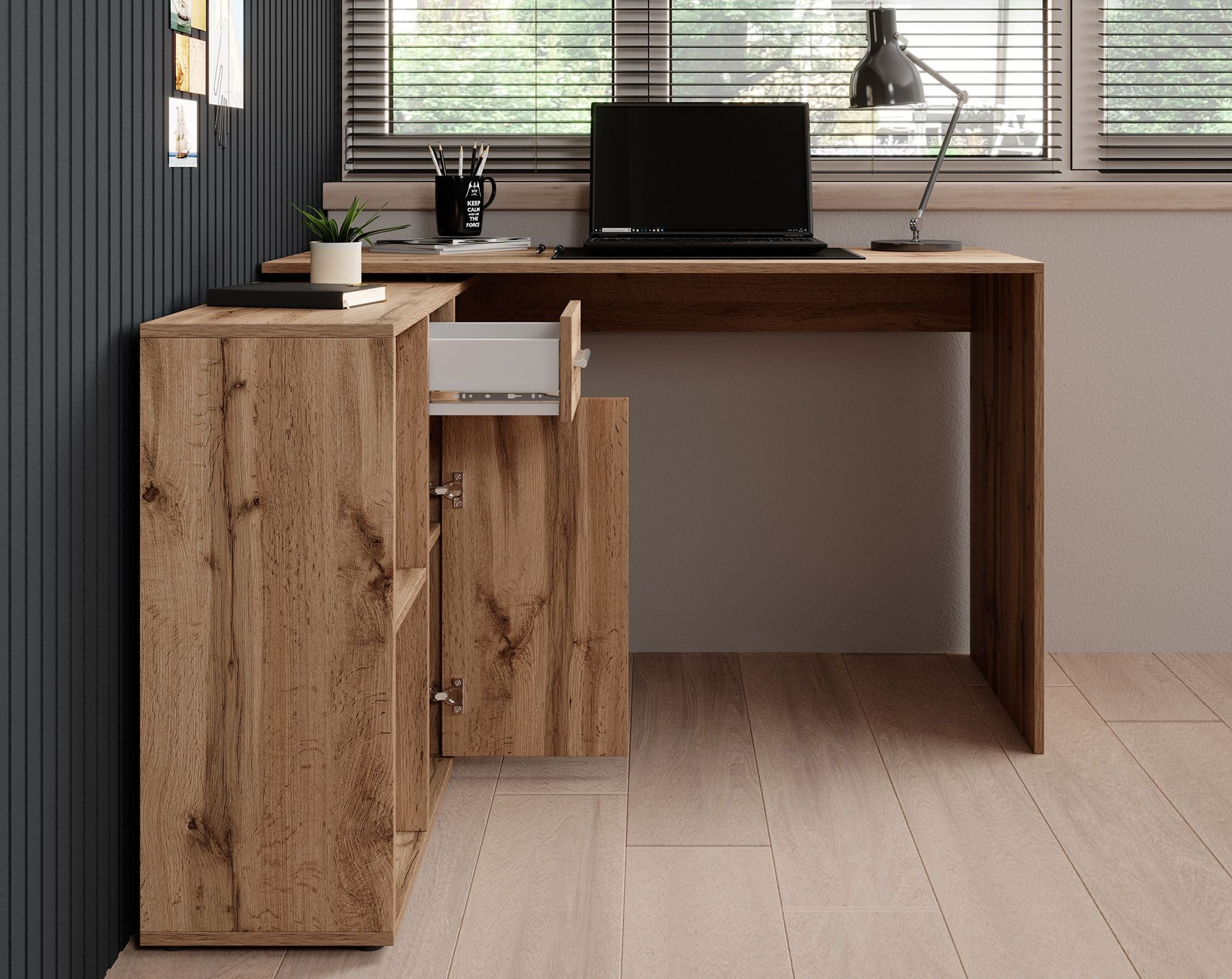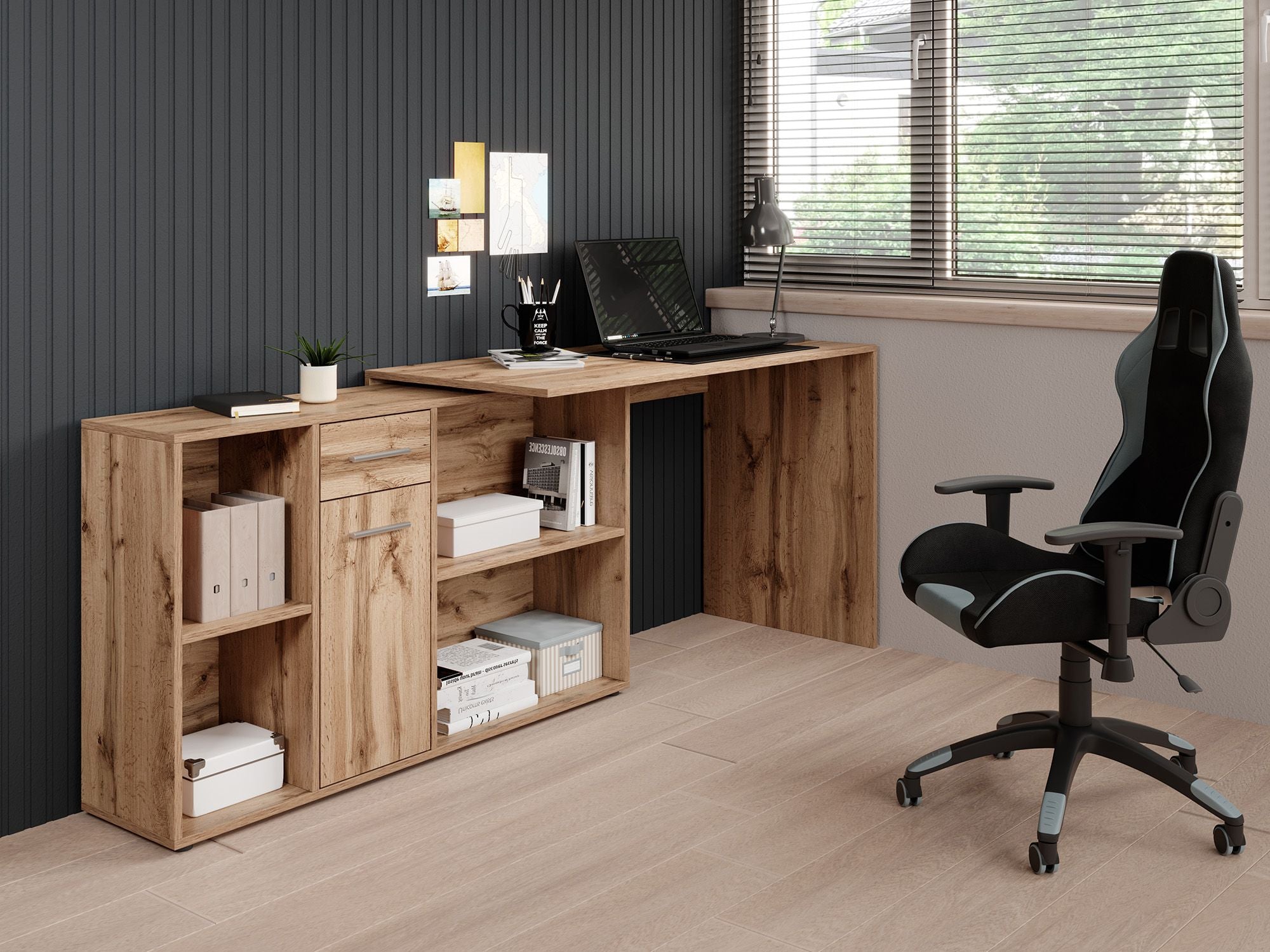 - Verstelbaar naar hoekbureau