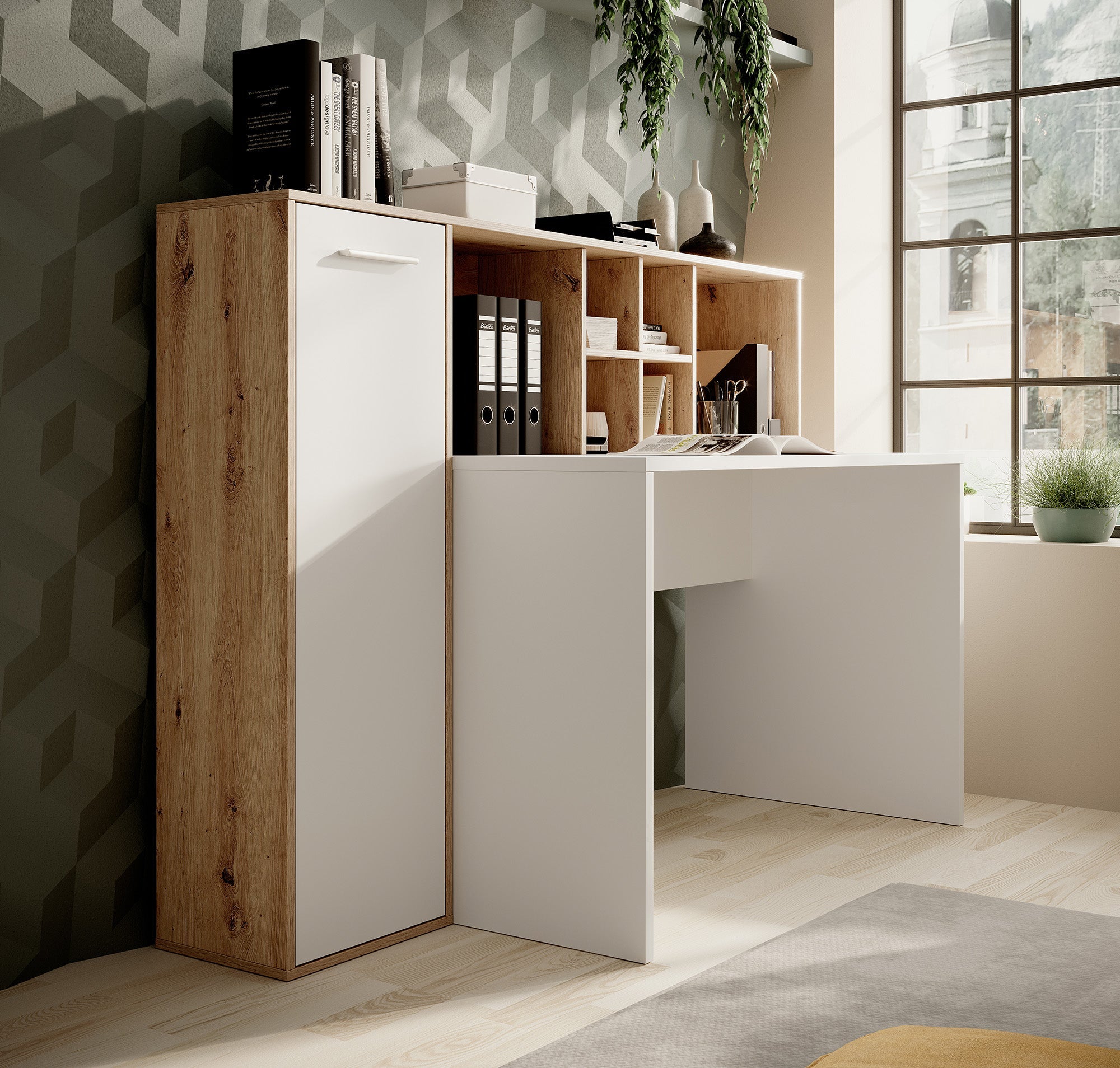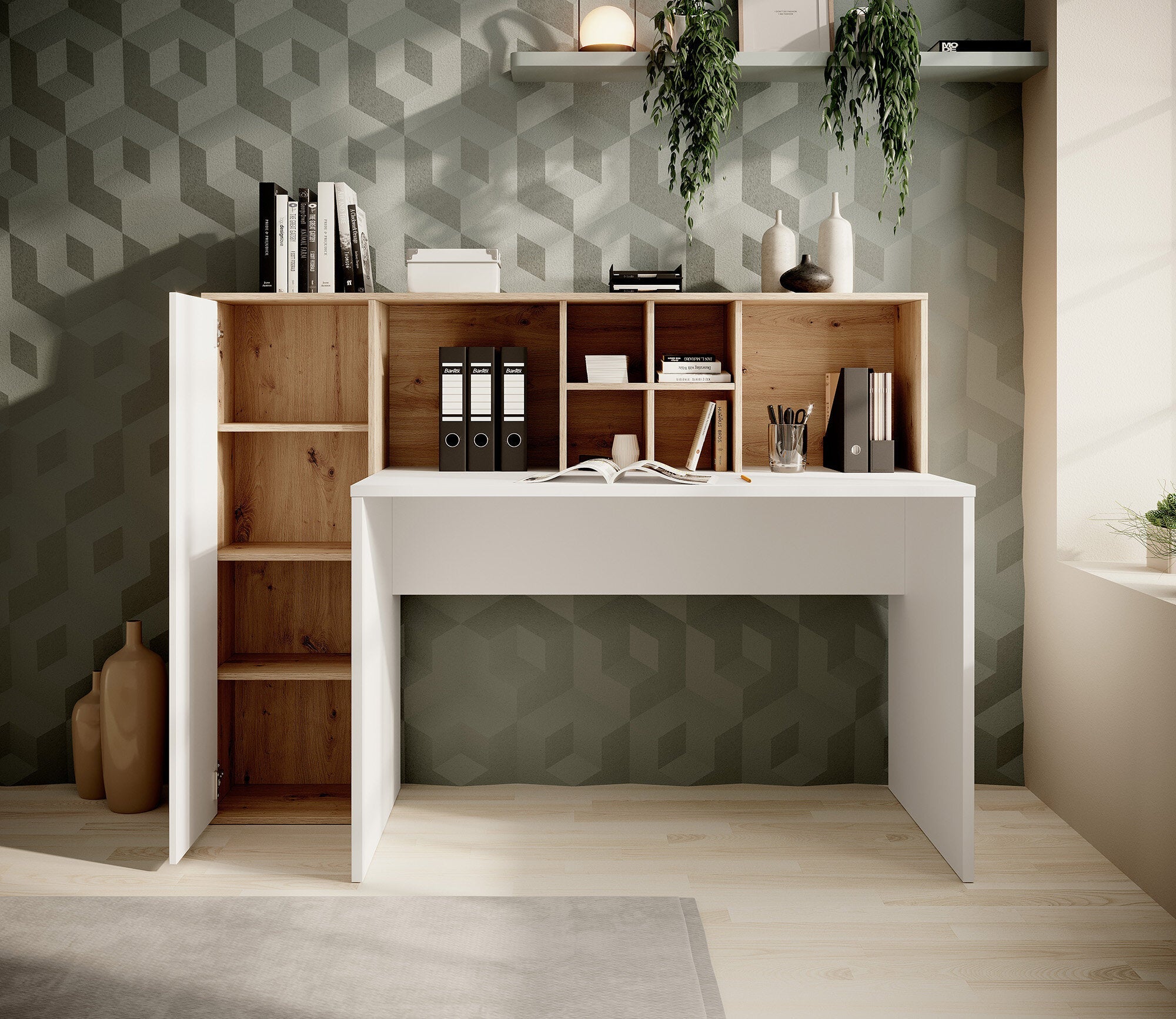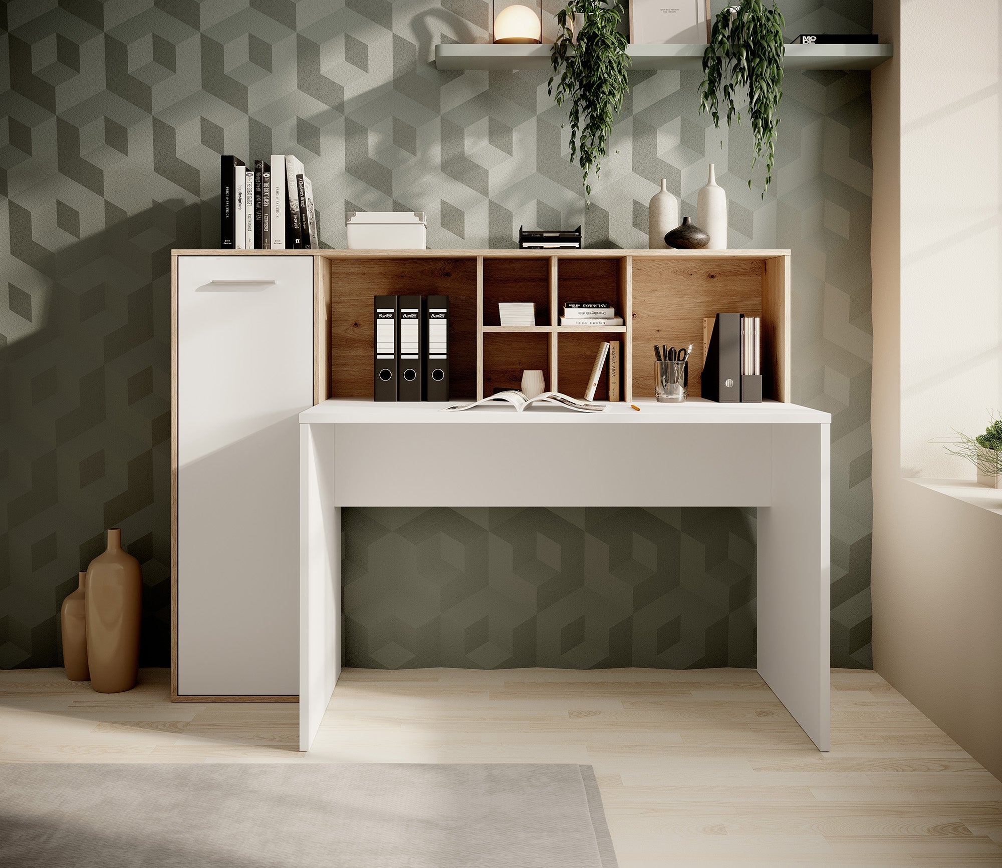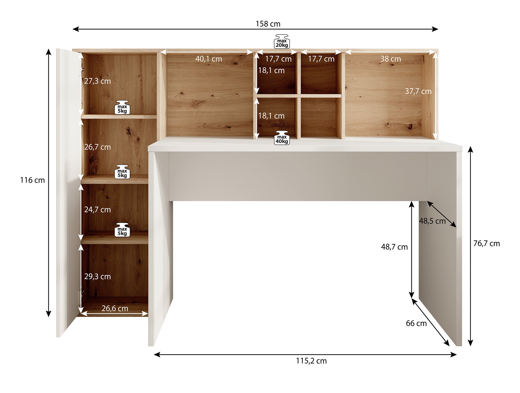 Meubella - Bureau Elze - Eiken - Wit - 158 cm