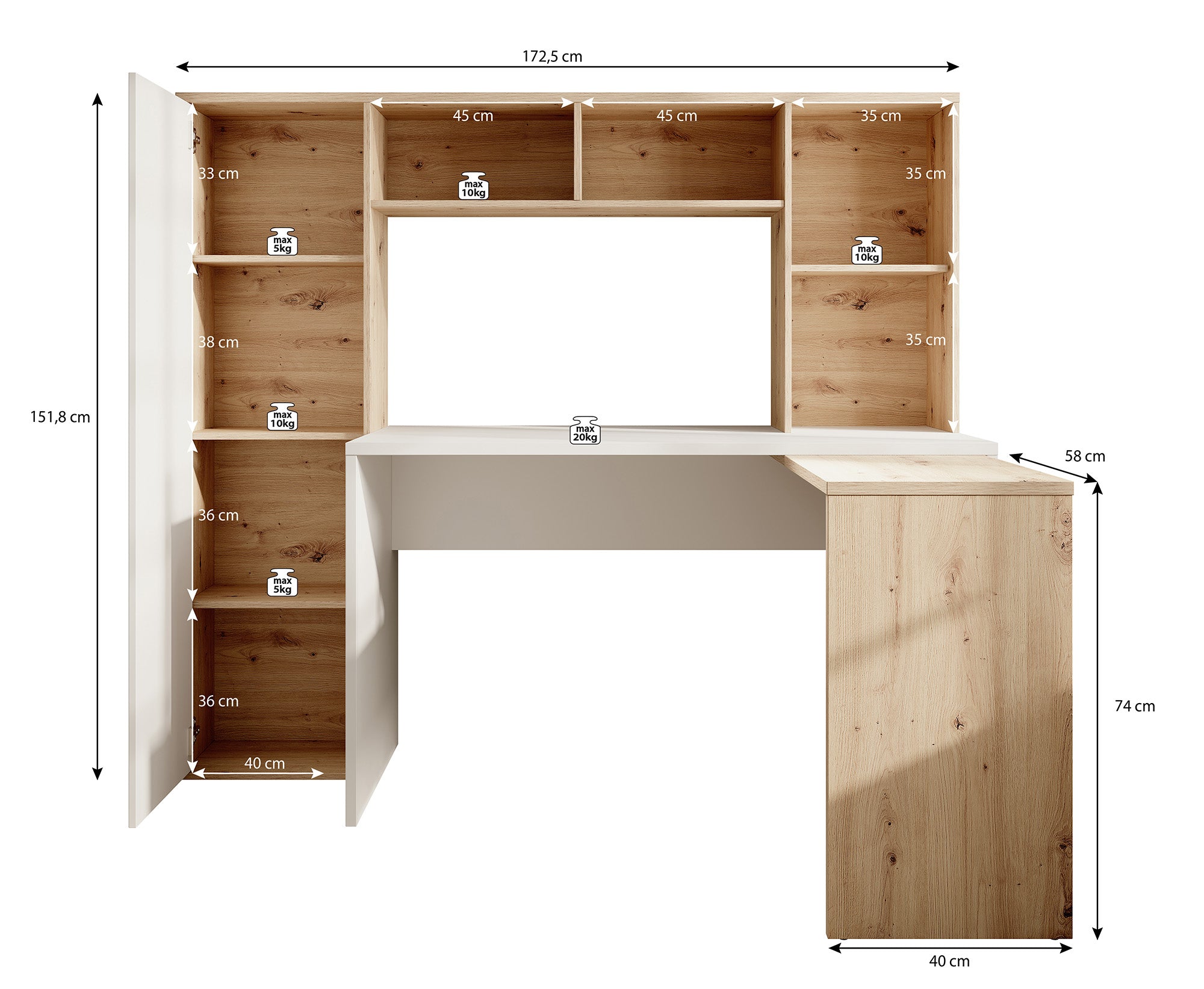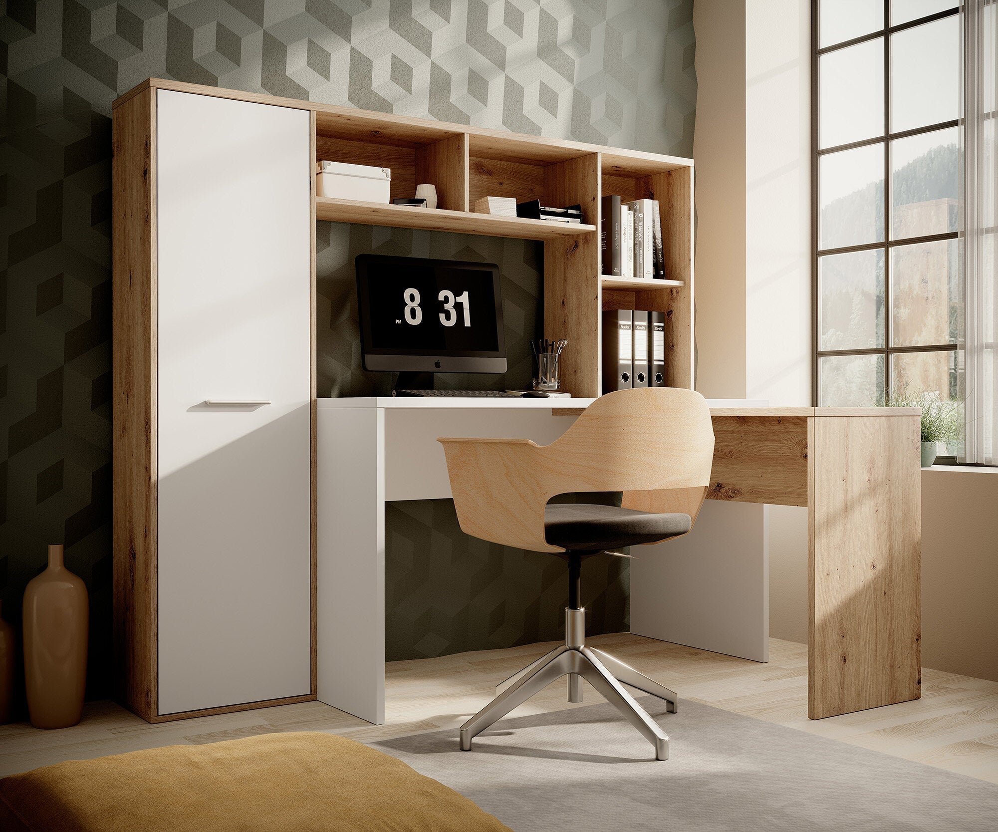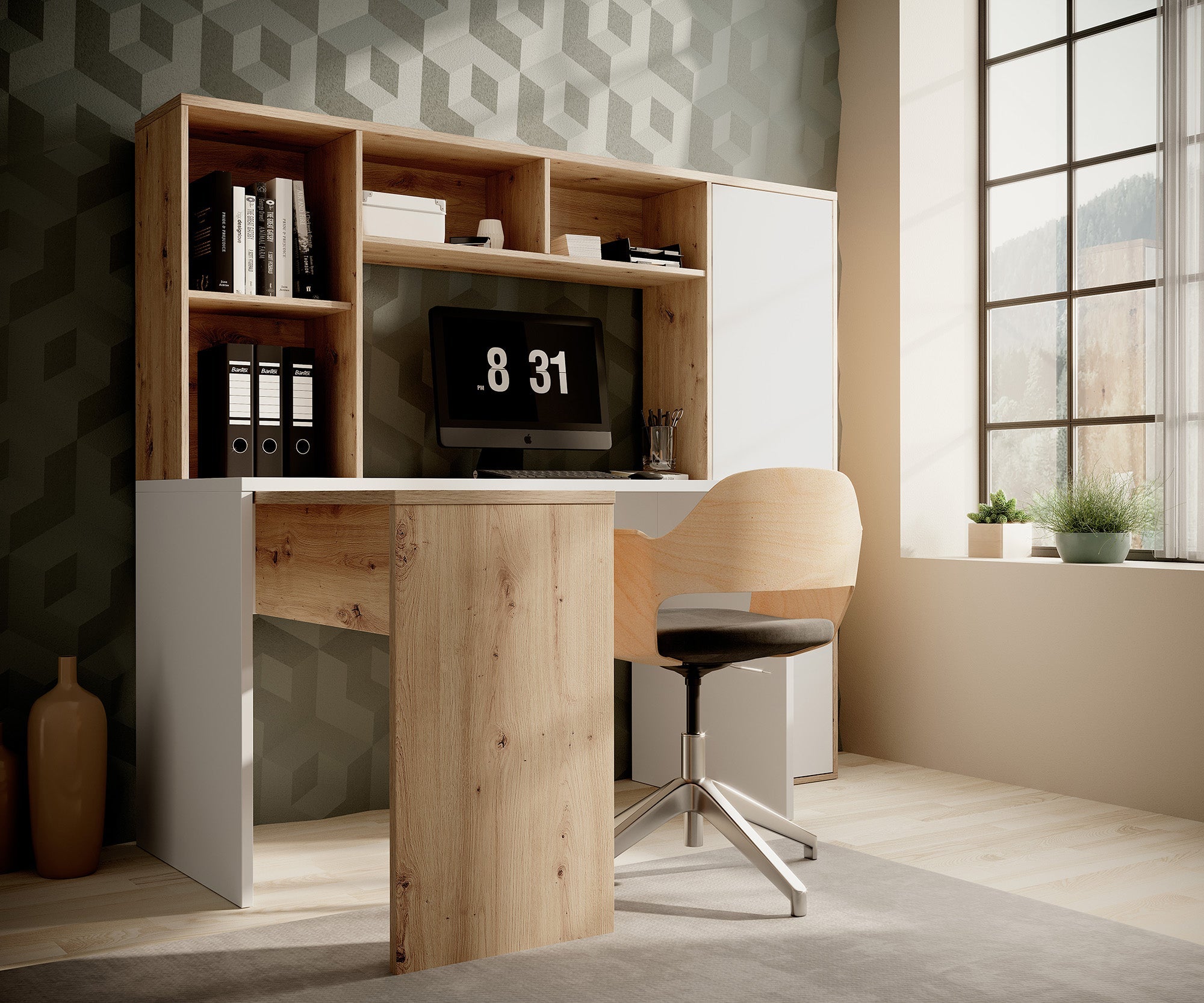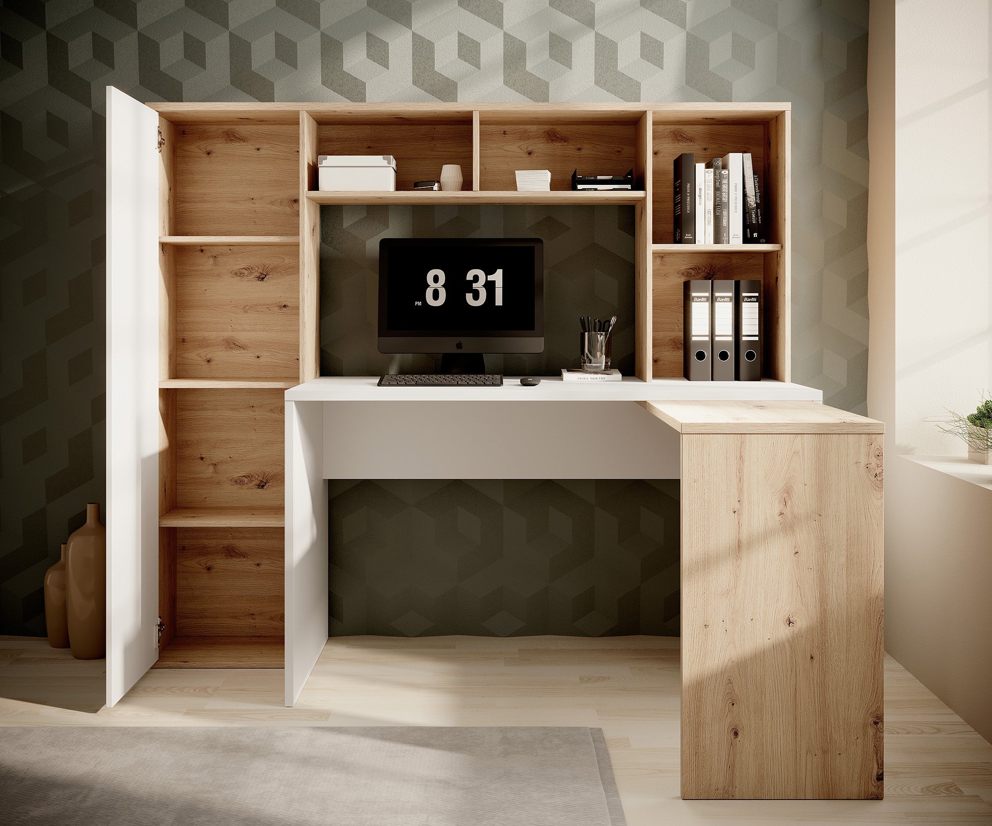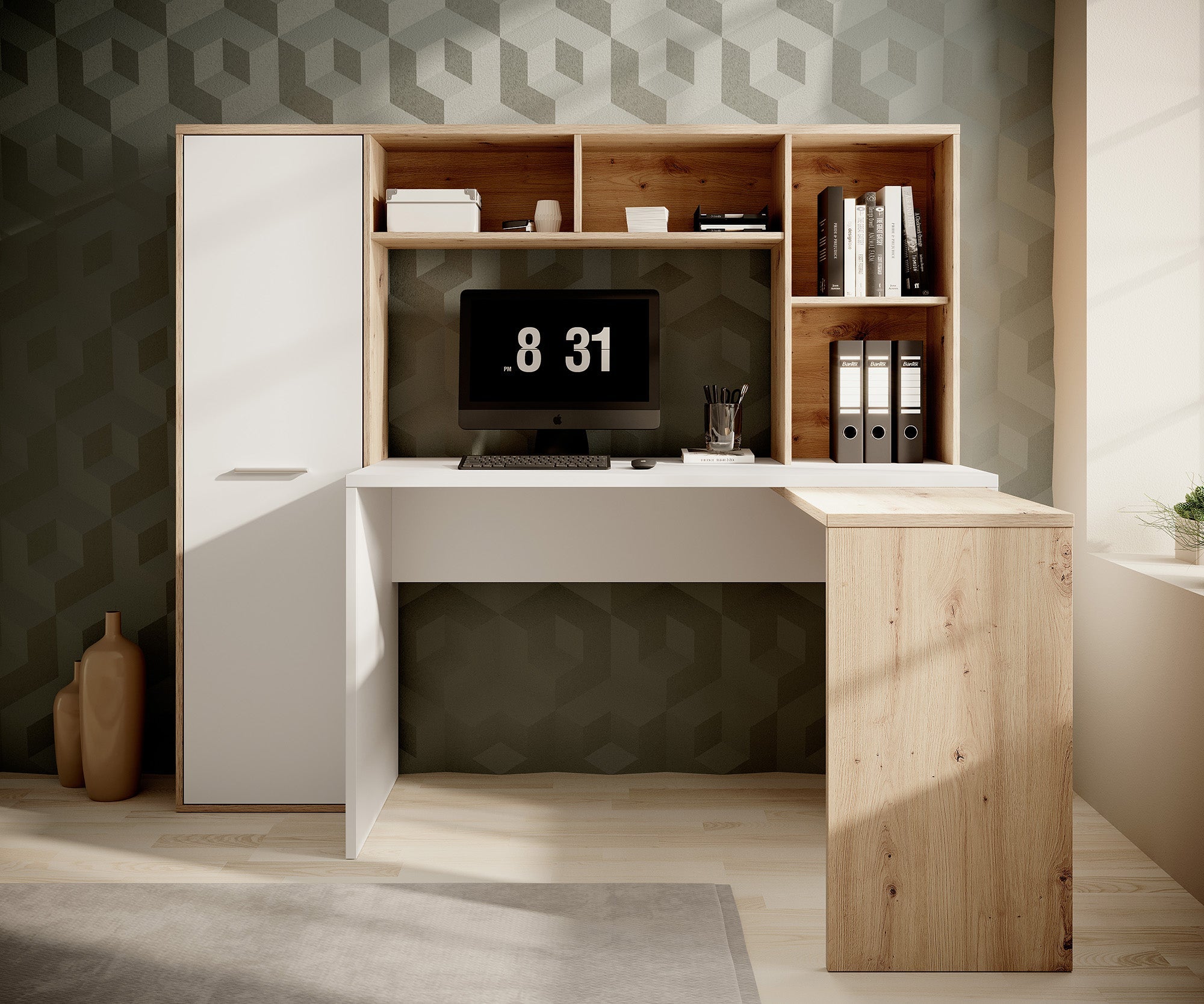 Meubella - Bureau Elze - Eiken - Wit - 173 cm