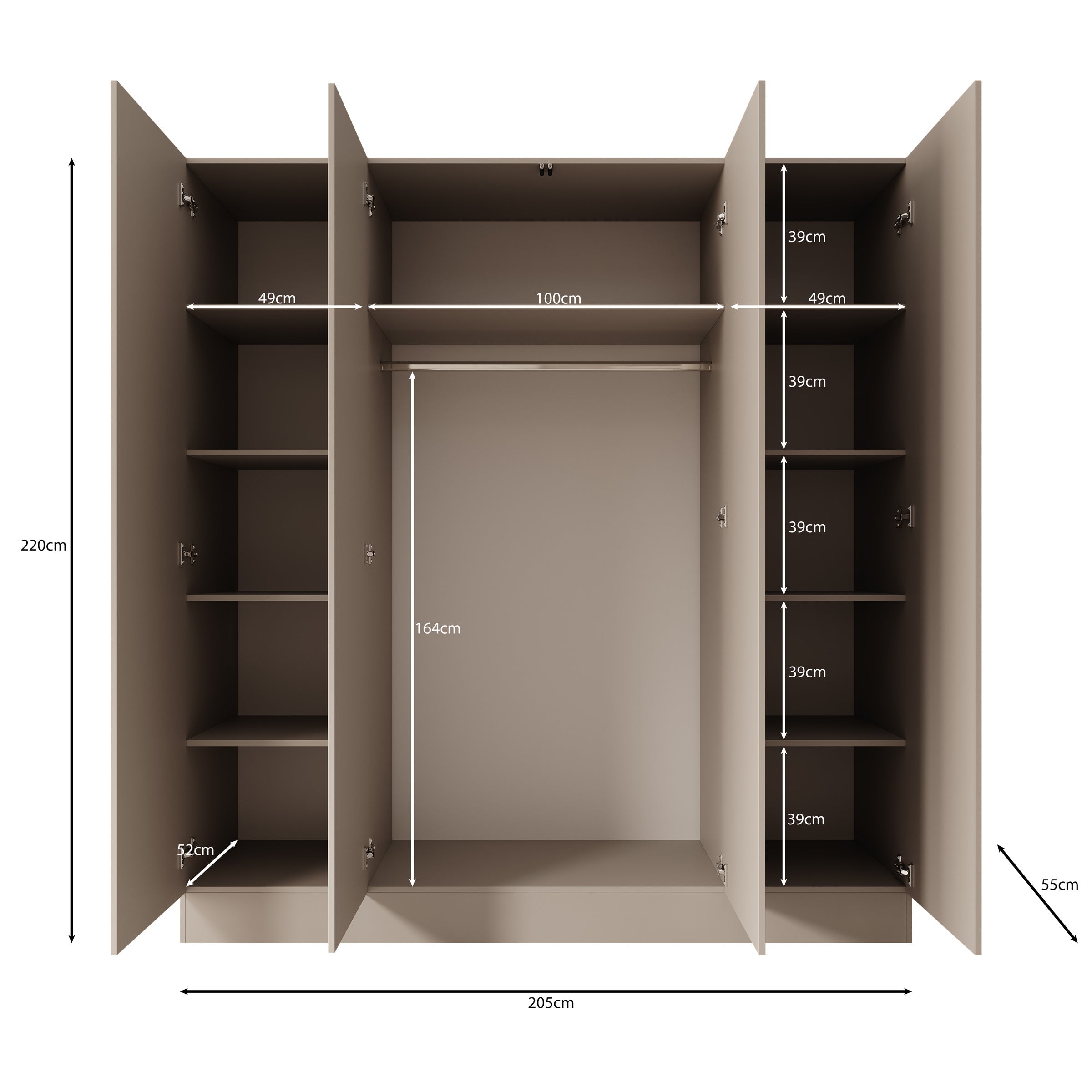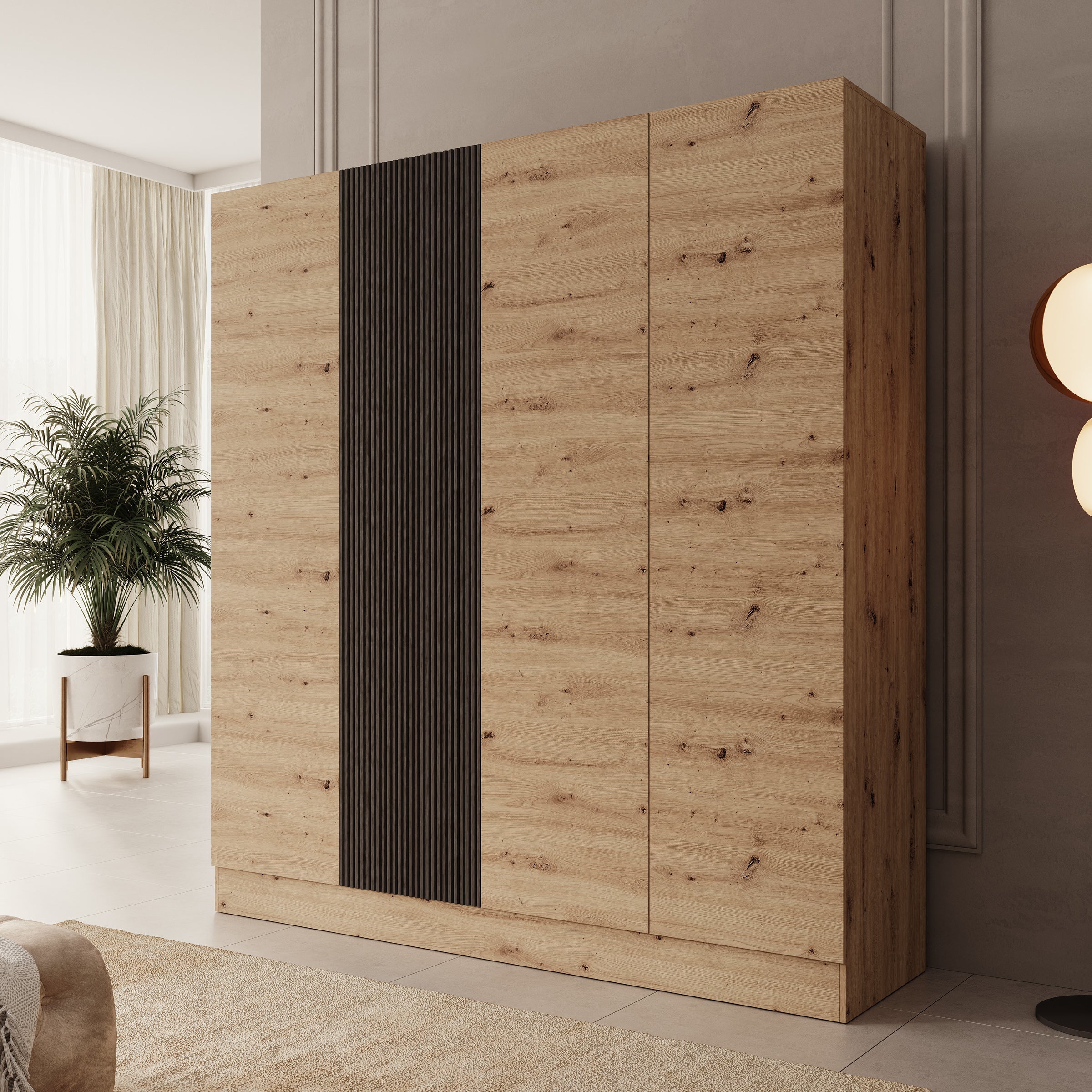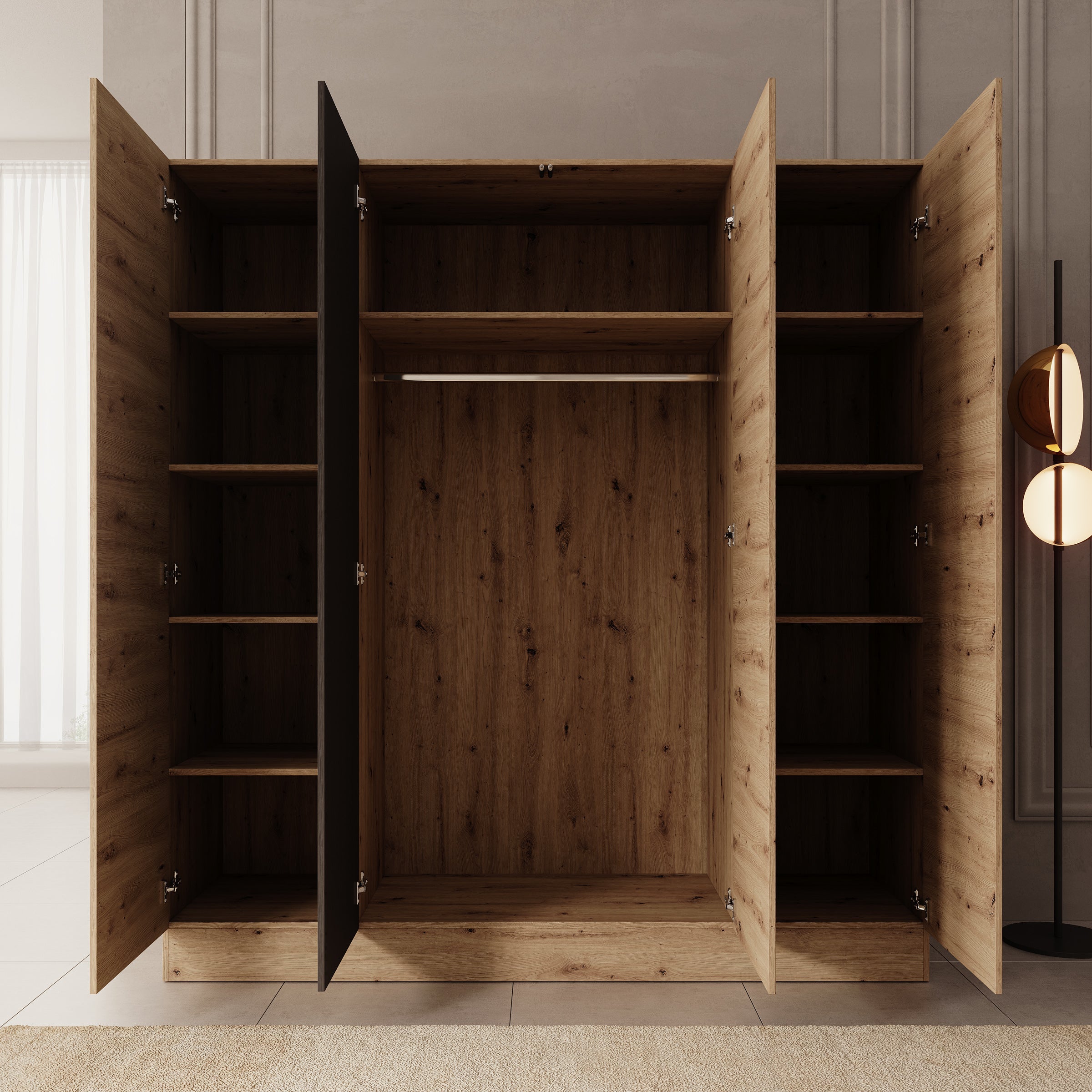 Meubella - Capri - Kledingkast 4-deurs - Eiken - 205x55x220 cm