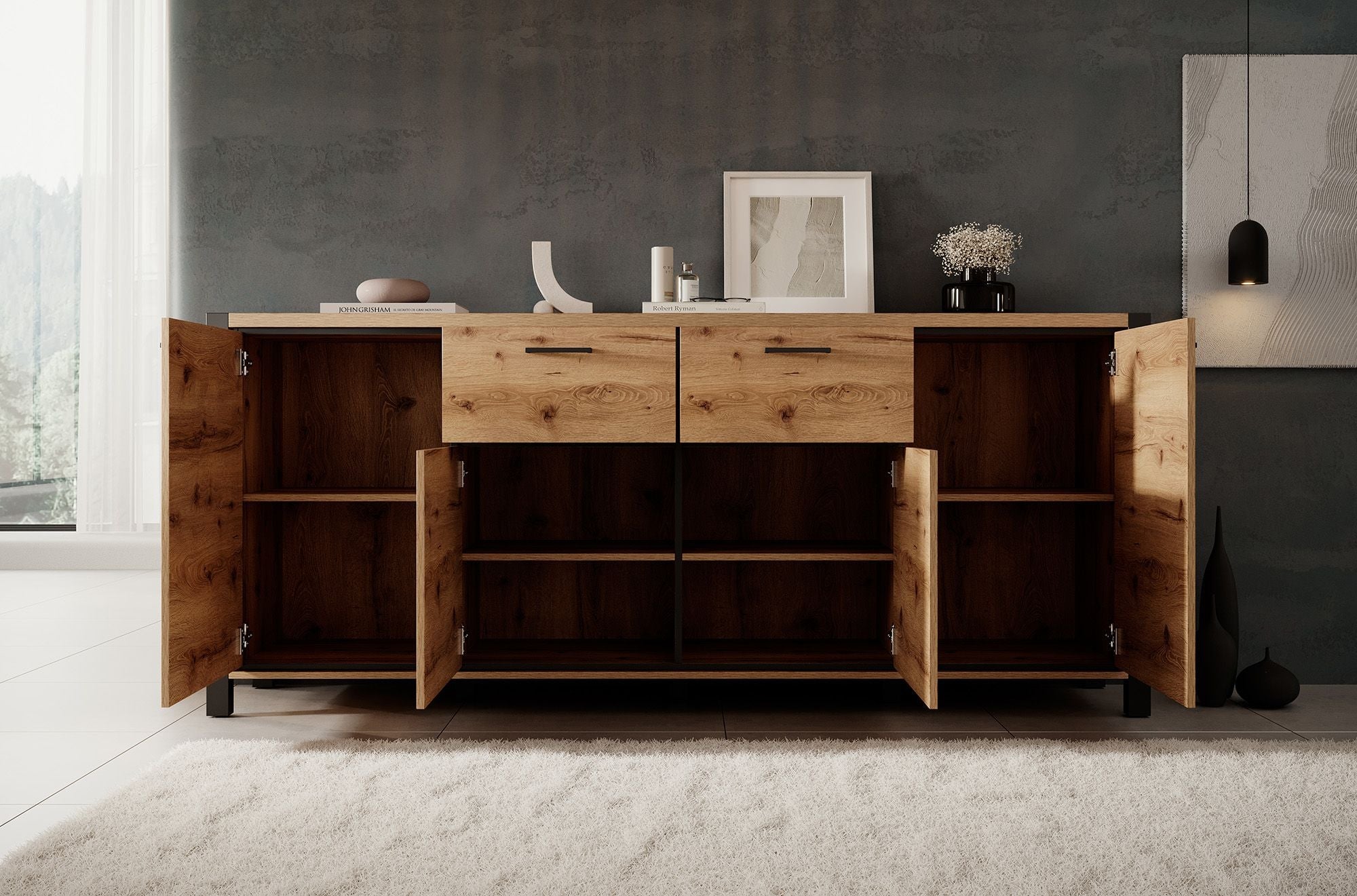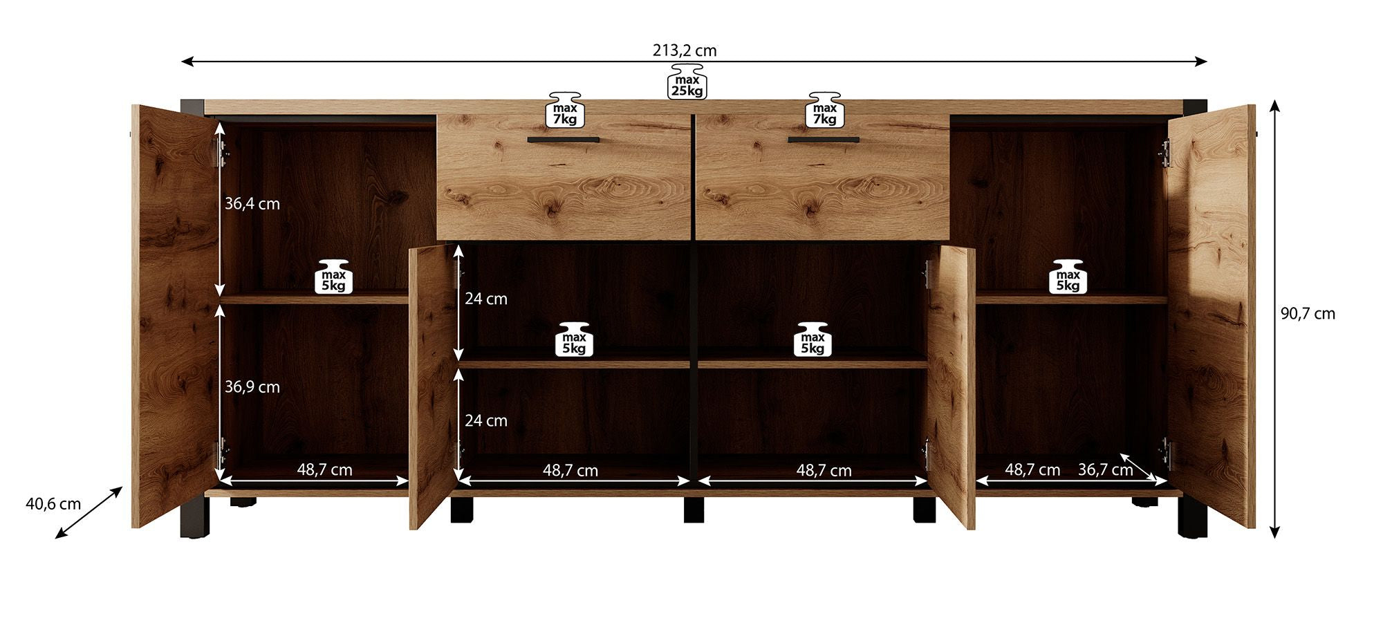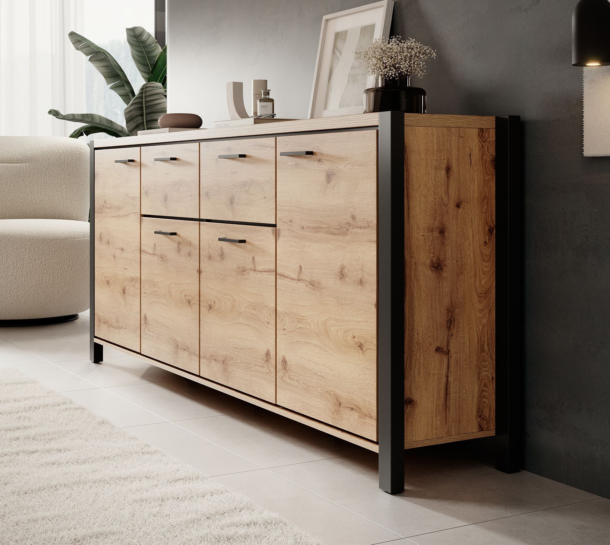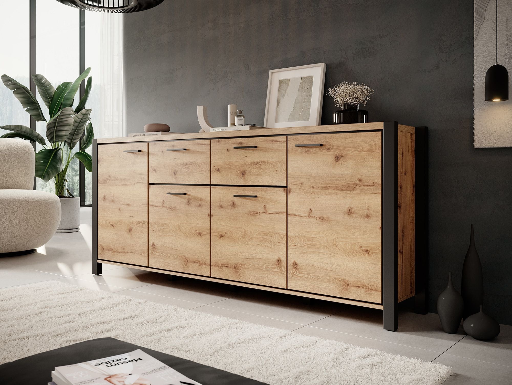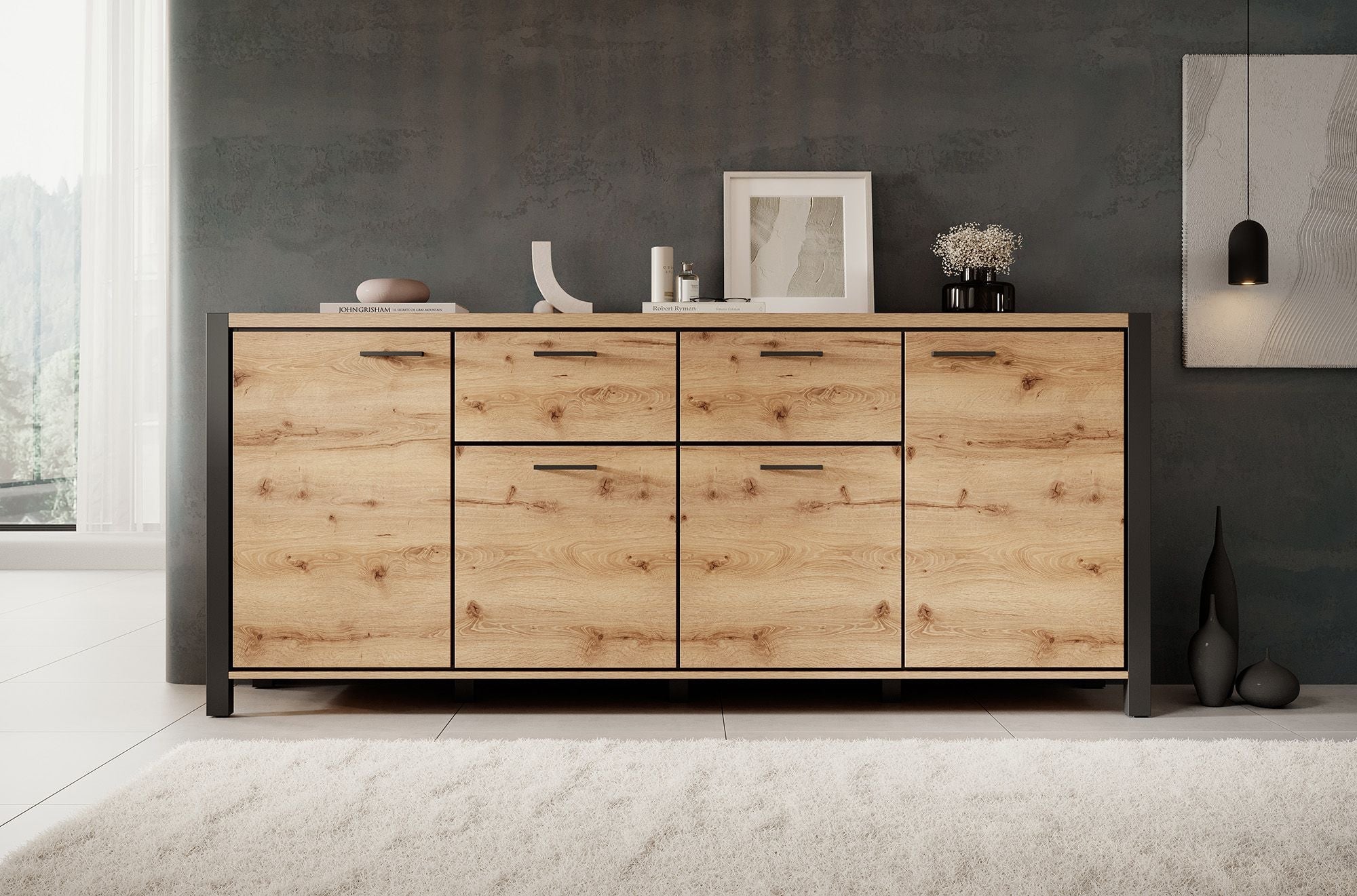 Meubella - Dressoir Acapulco - Eiken - Zwart - 213 cm