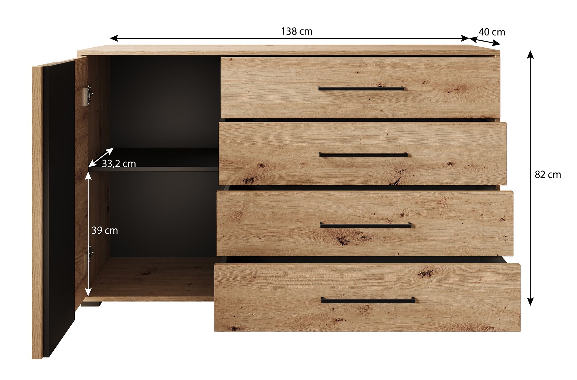 Meubella - Dressoir Adyson - Eiken - 138 cm