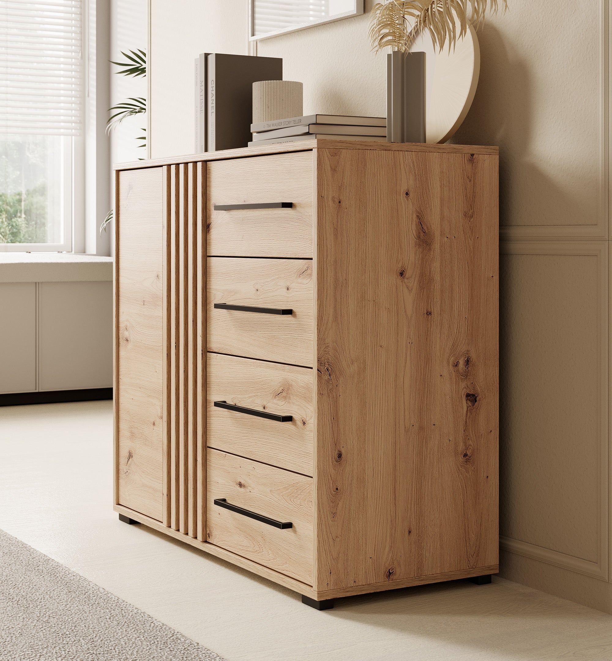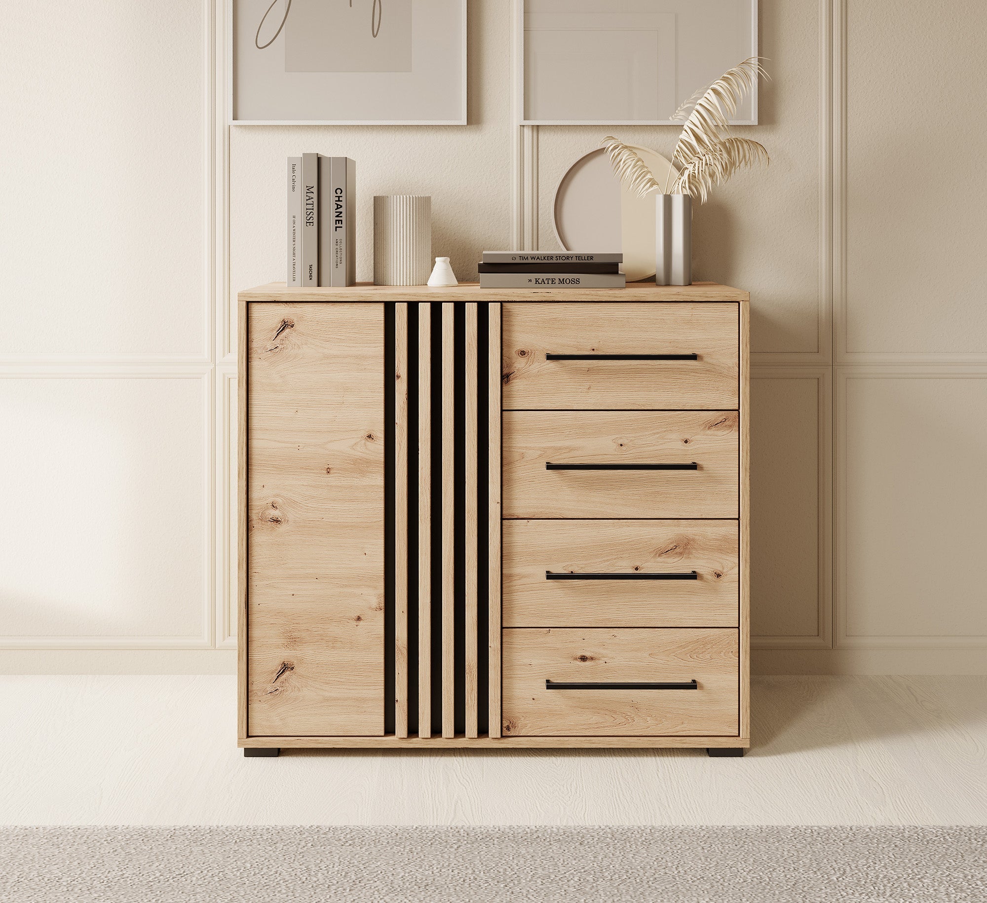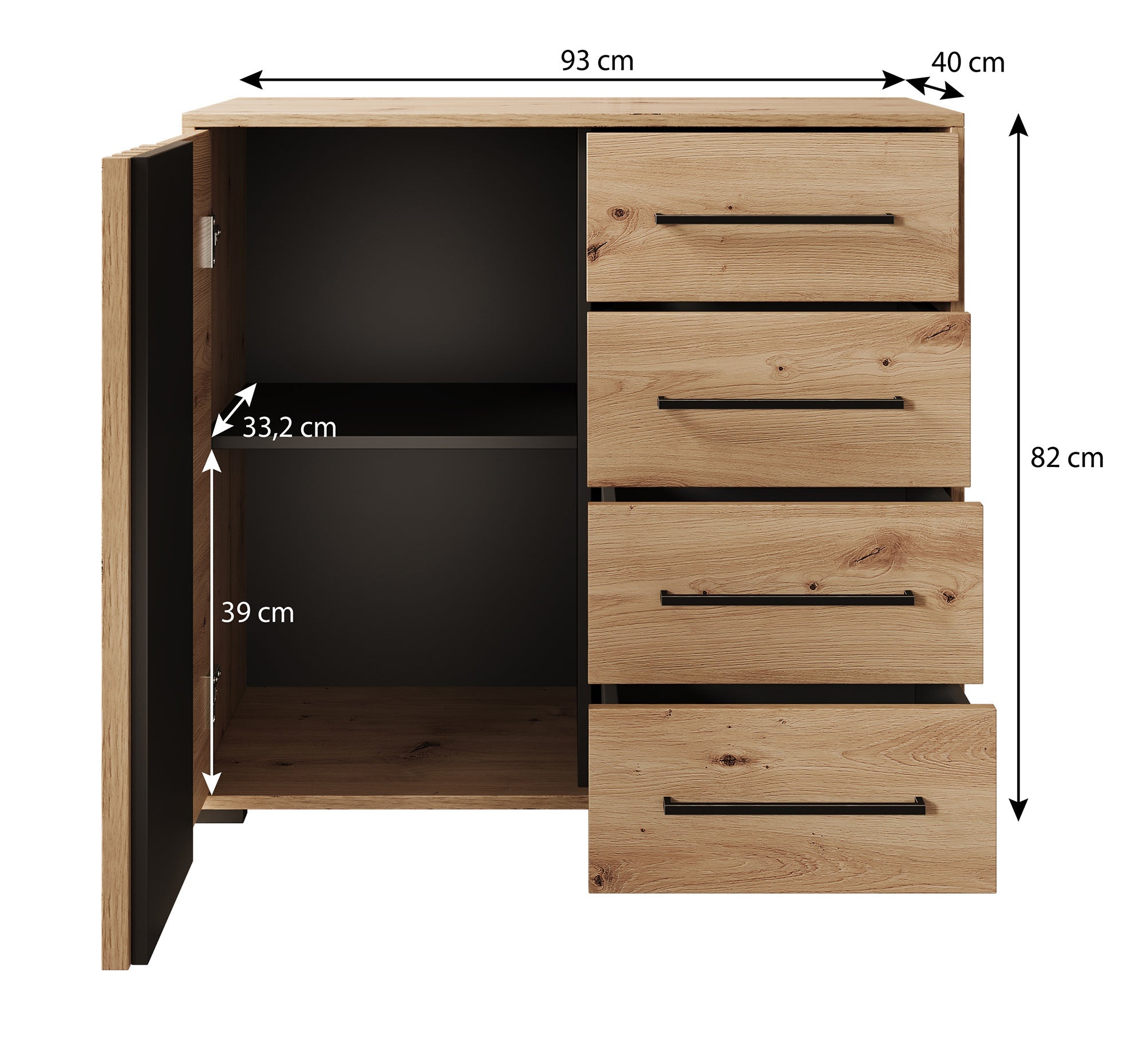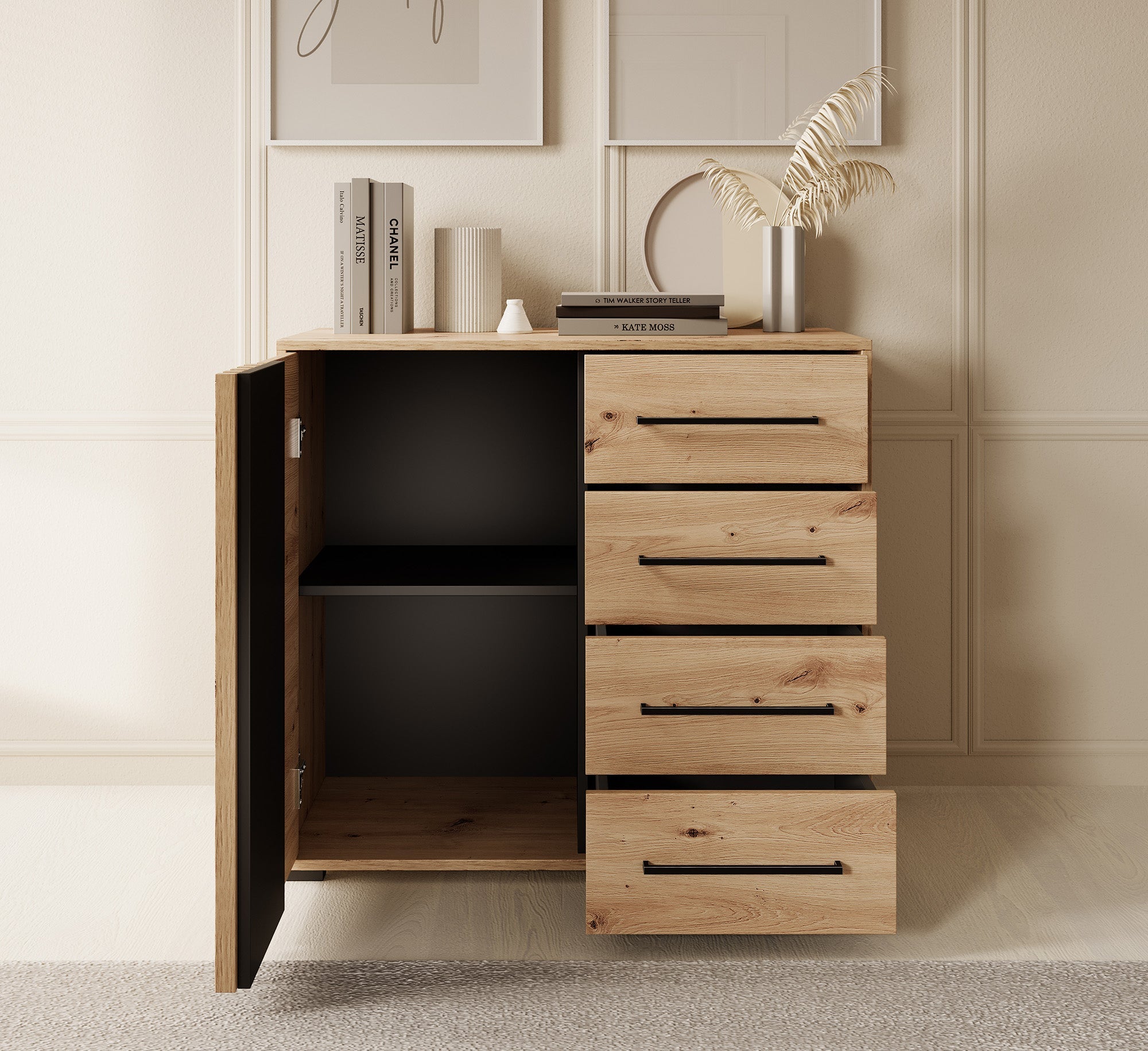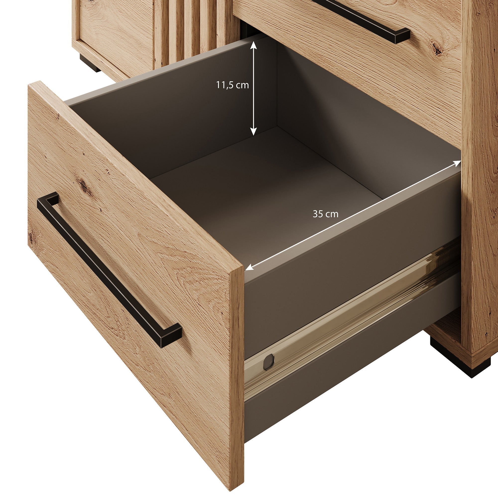 - Lades met zwarte handgrepen
