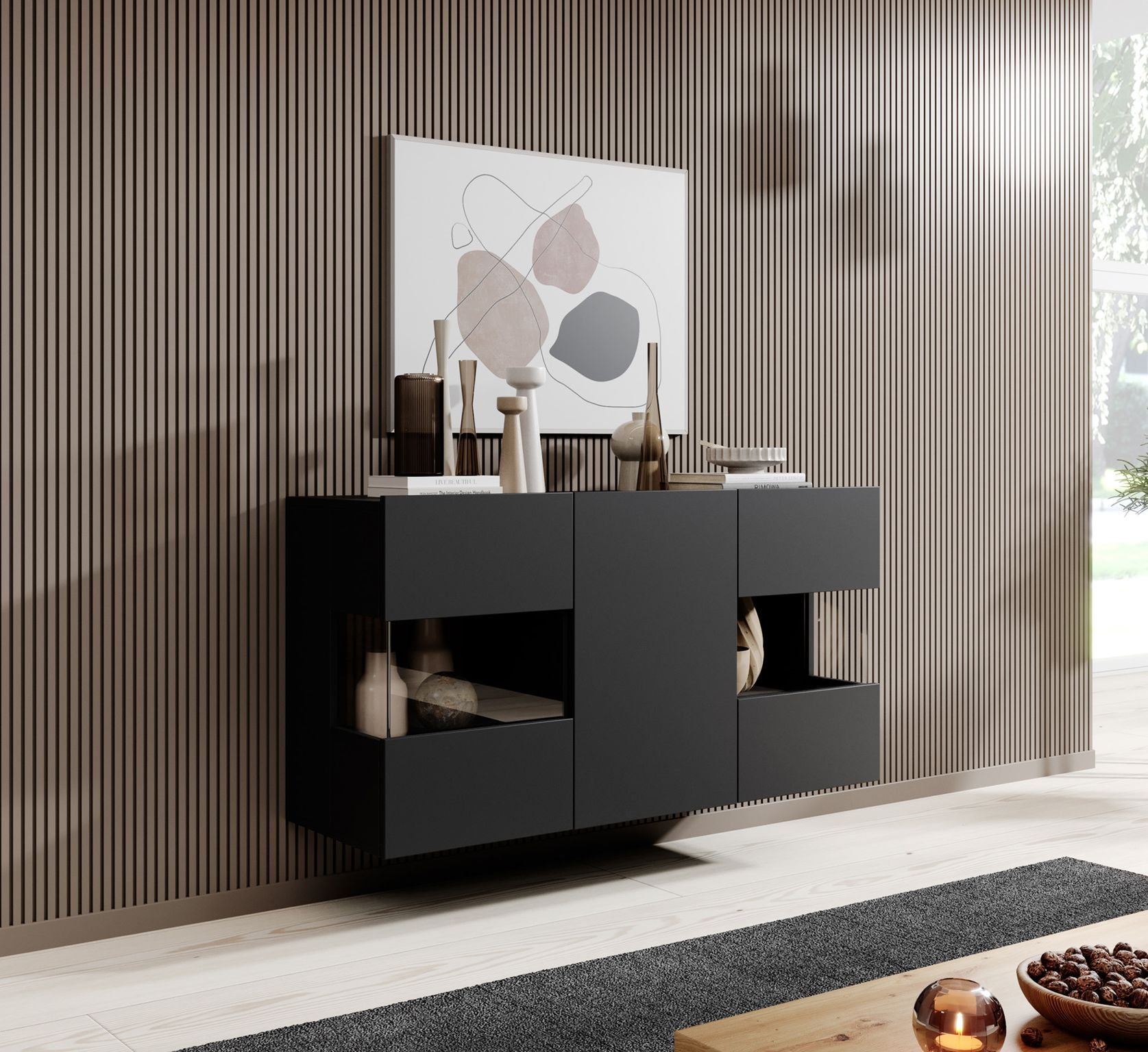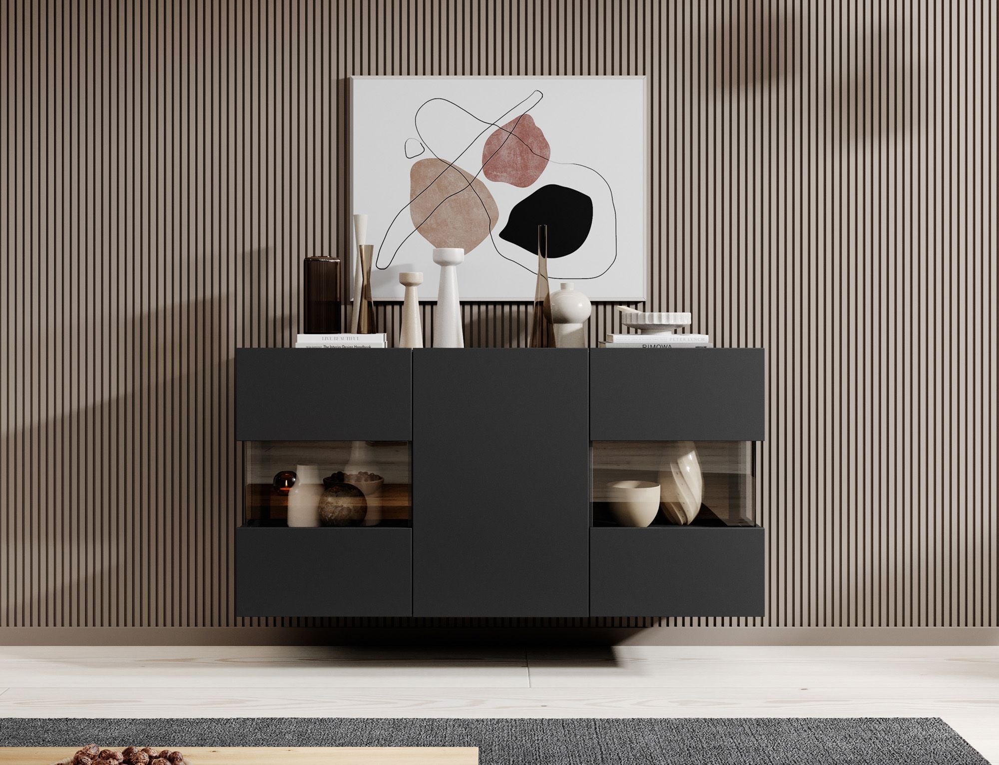 Meubella - Dressoir Asilento - Mat zwart - 120 cm
