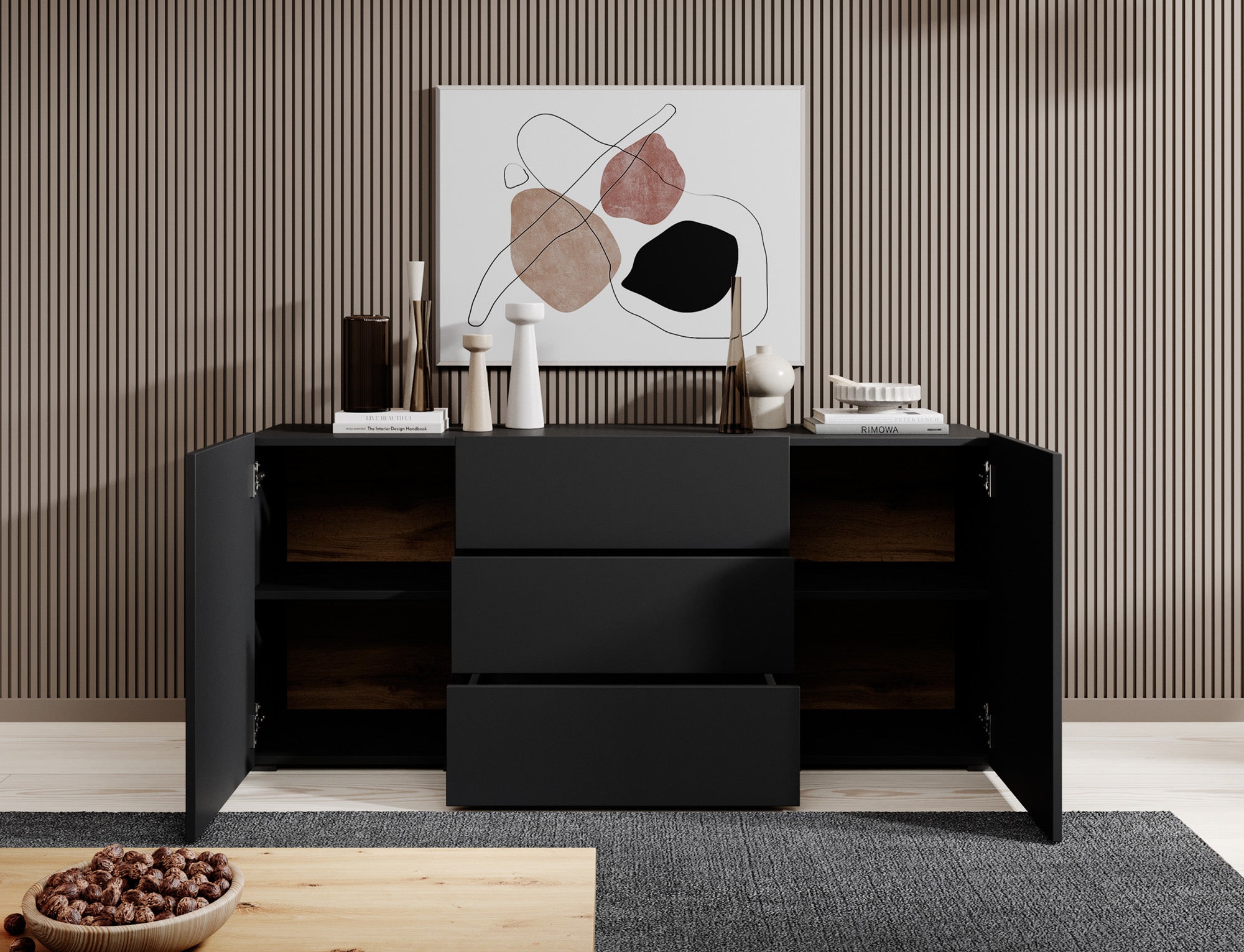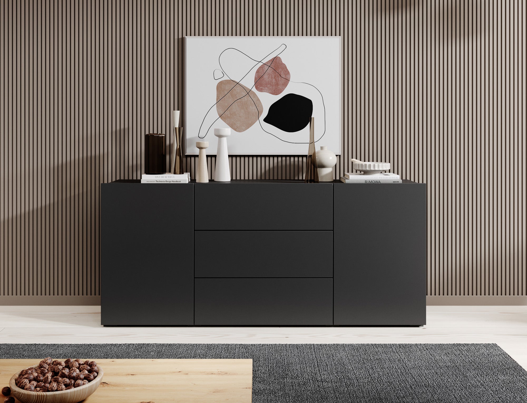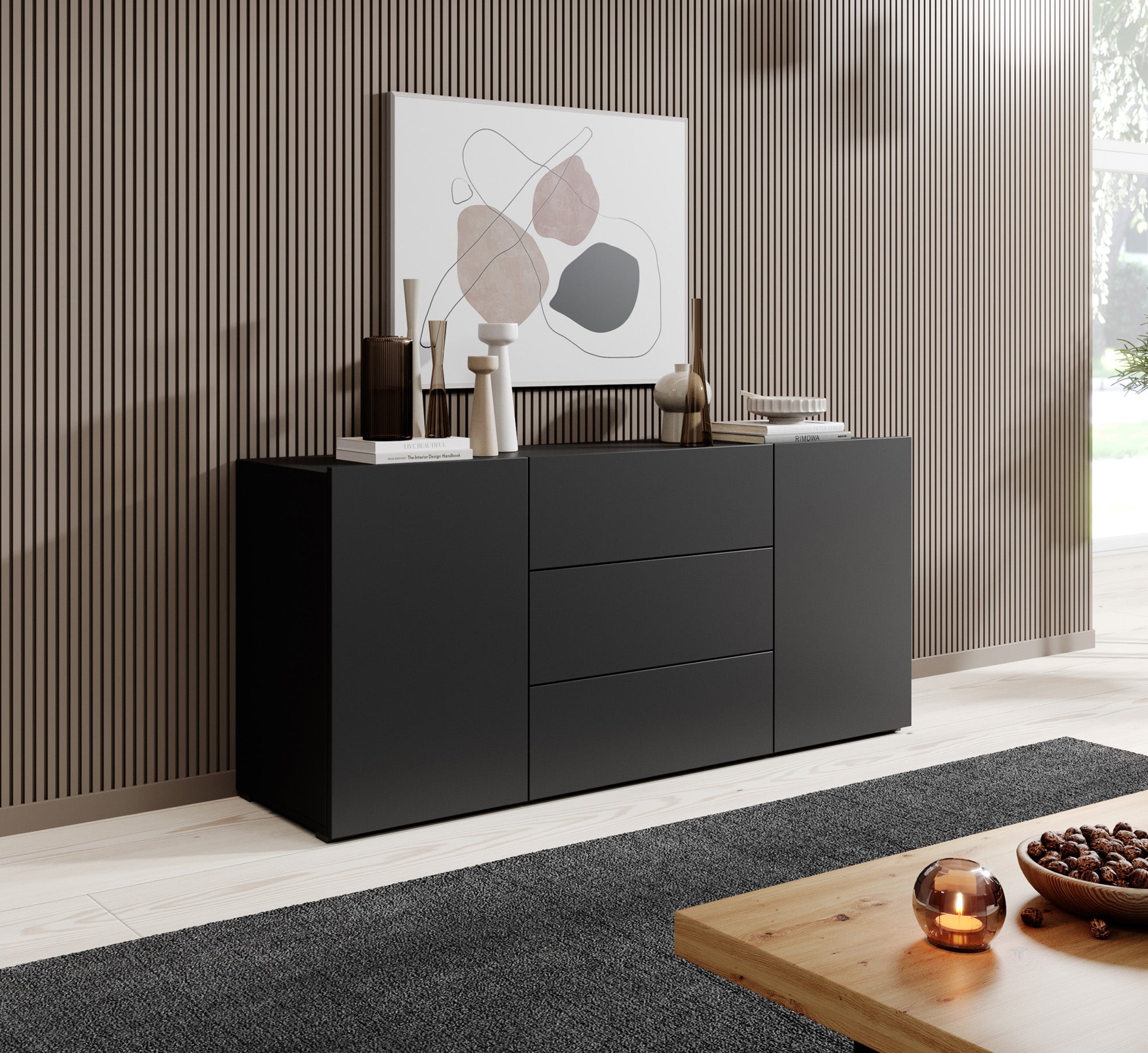 Meubella Dressoir Asilento - Mat zwart - 140 cm