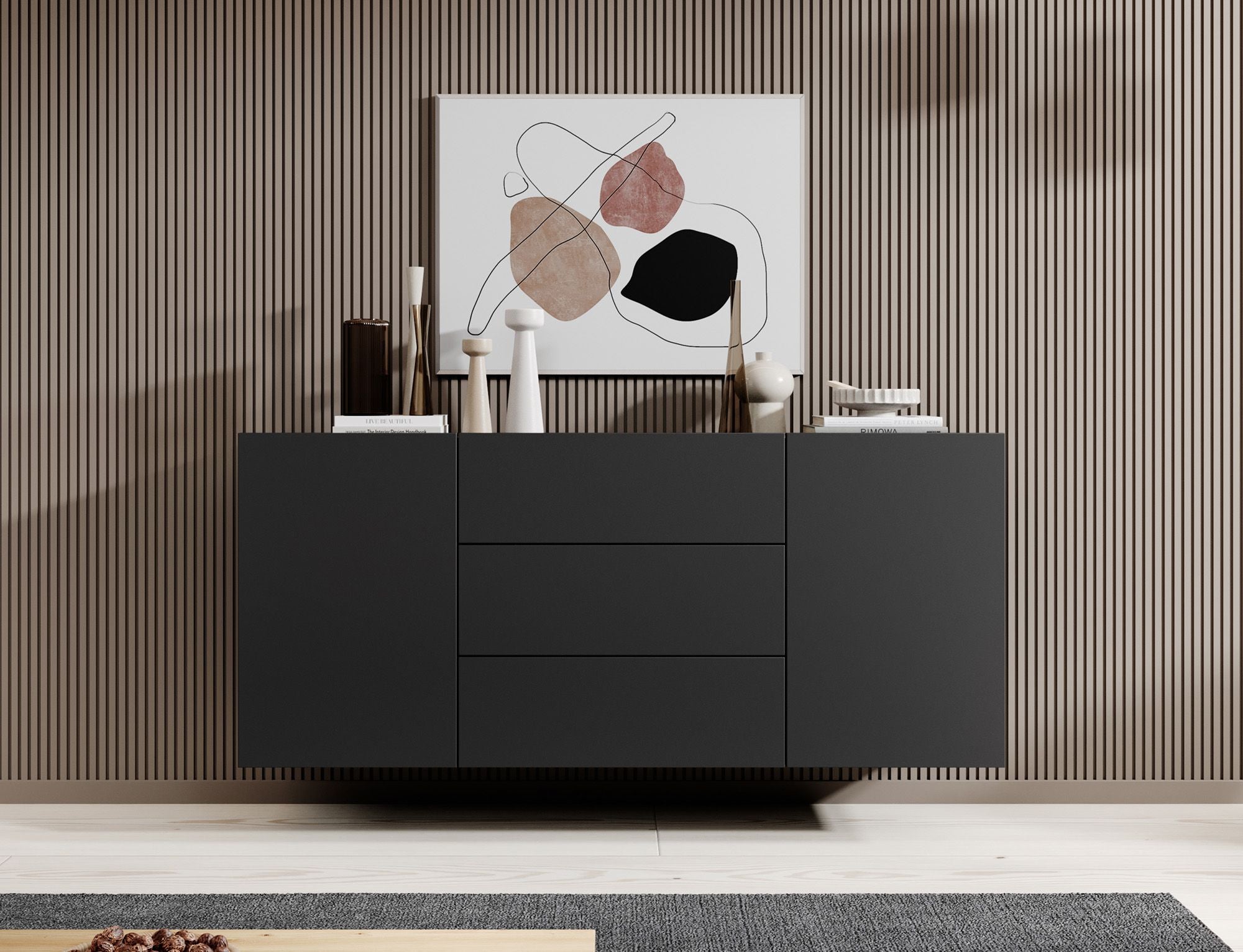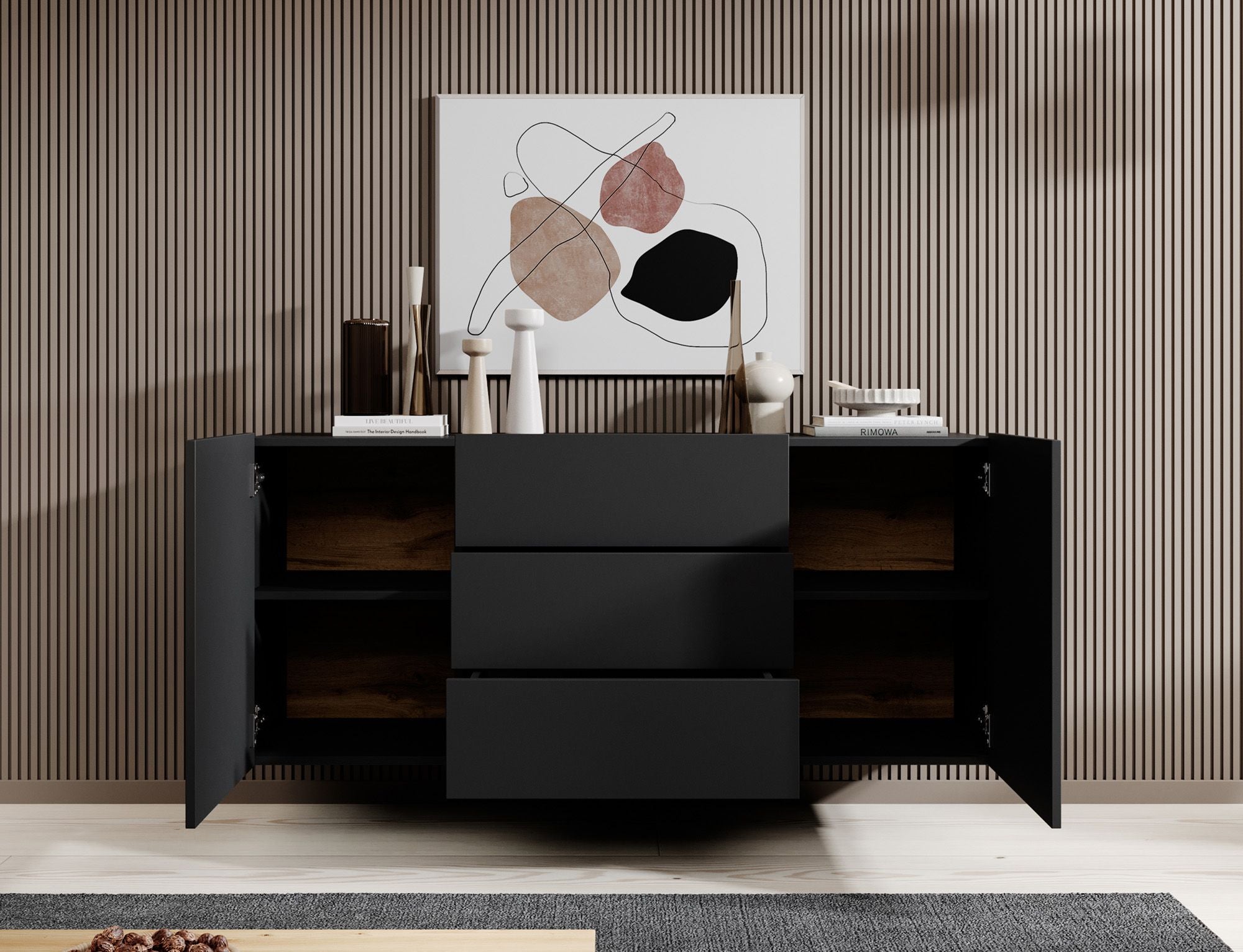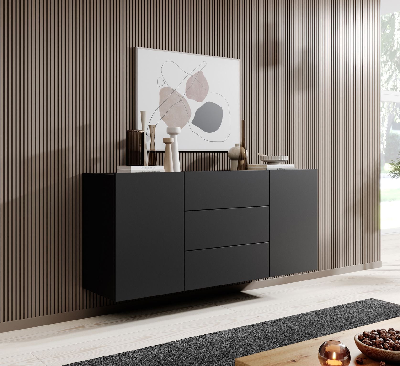 Meubella Dressoir Asilento - Mat zwart - 140 cm
