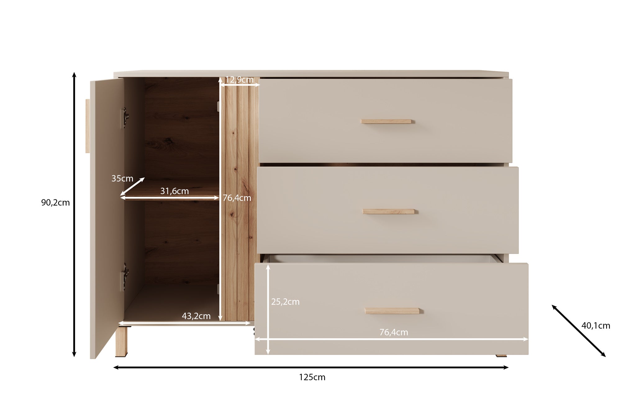 Meubella - Dressoir Bahia - Beige - 125 cm