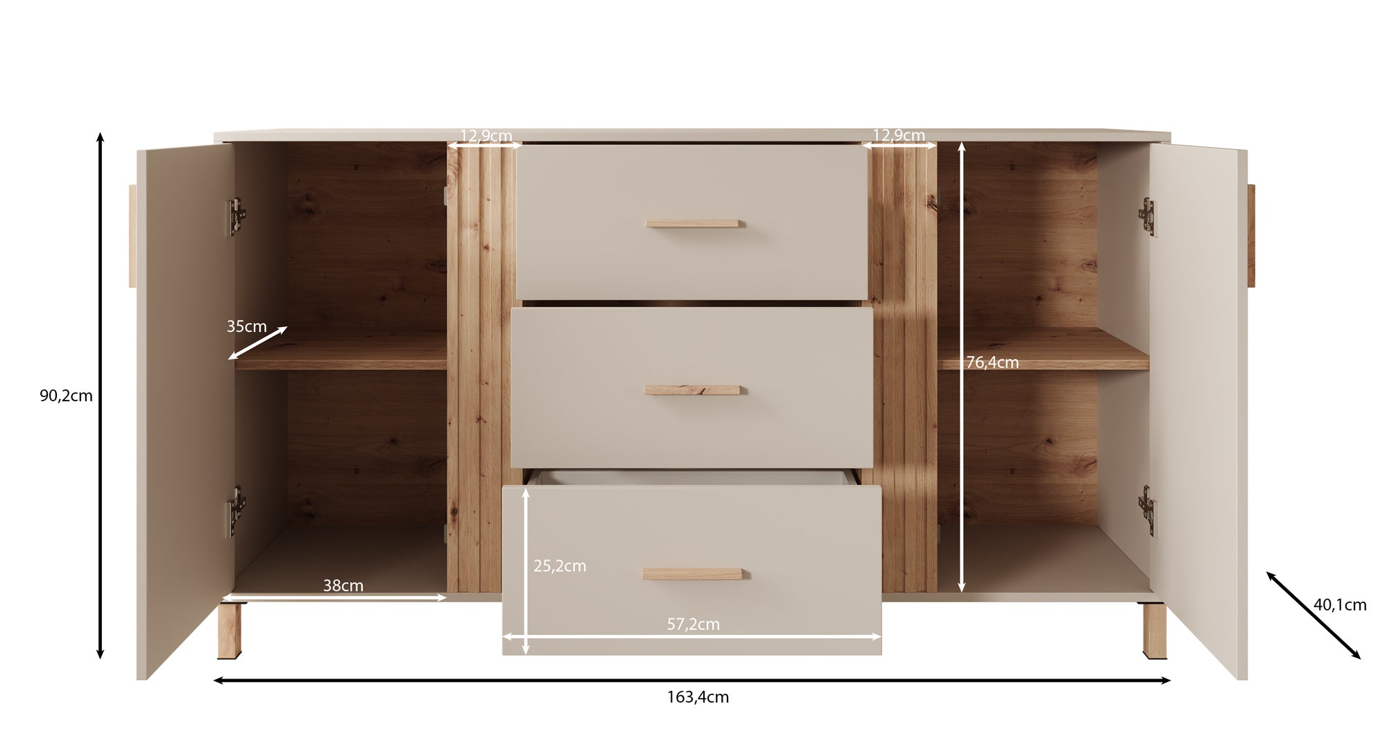 Meubella - Dressoir Bahia - Beige - 163 cm