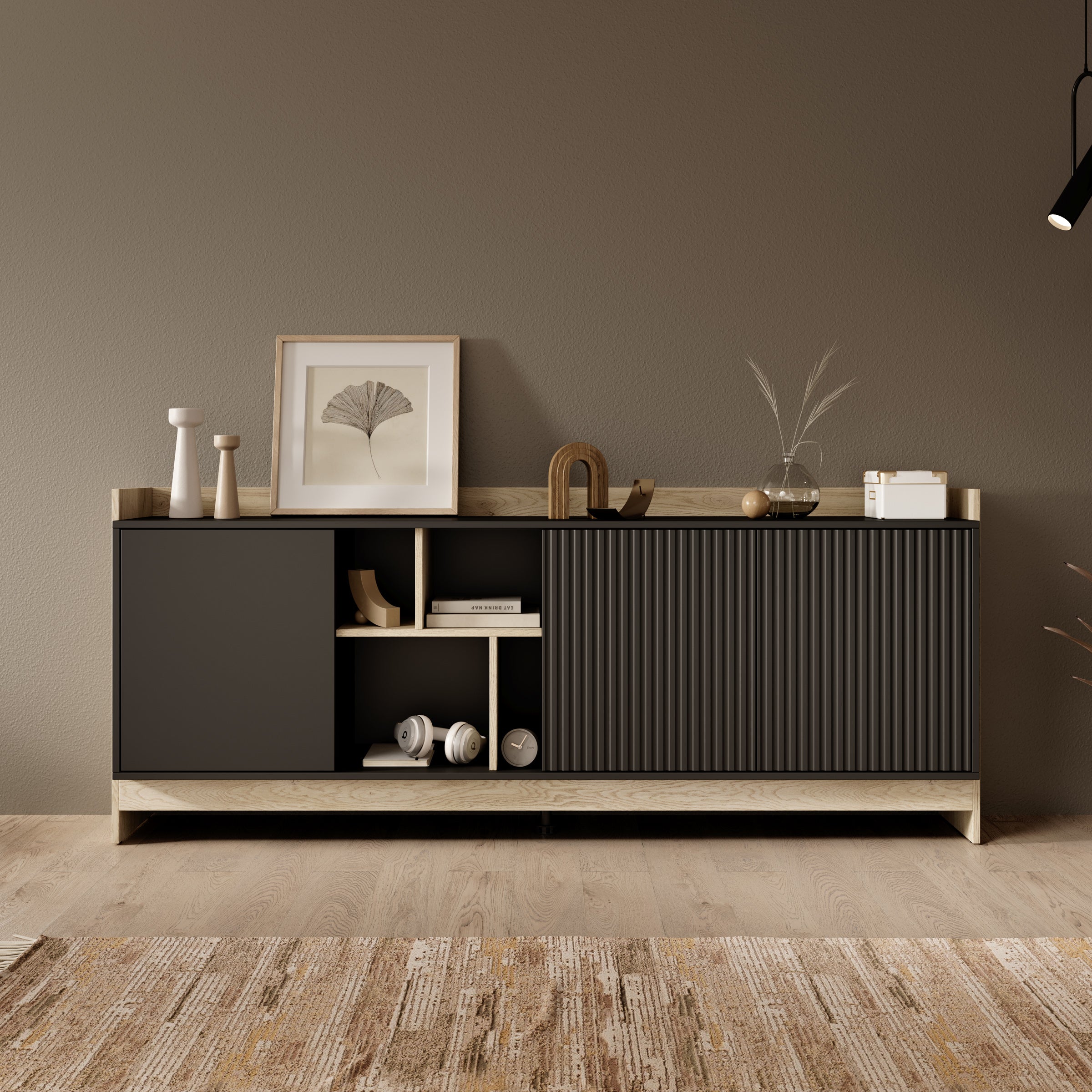 Meubella - Dressoir Benz - Zwart - 190 cm