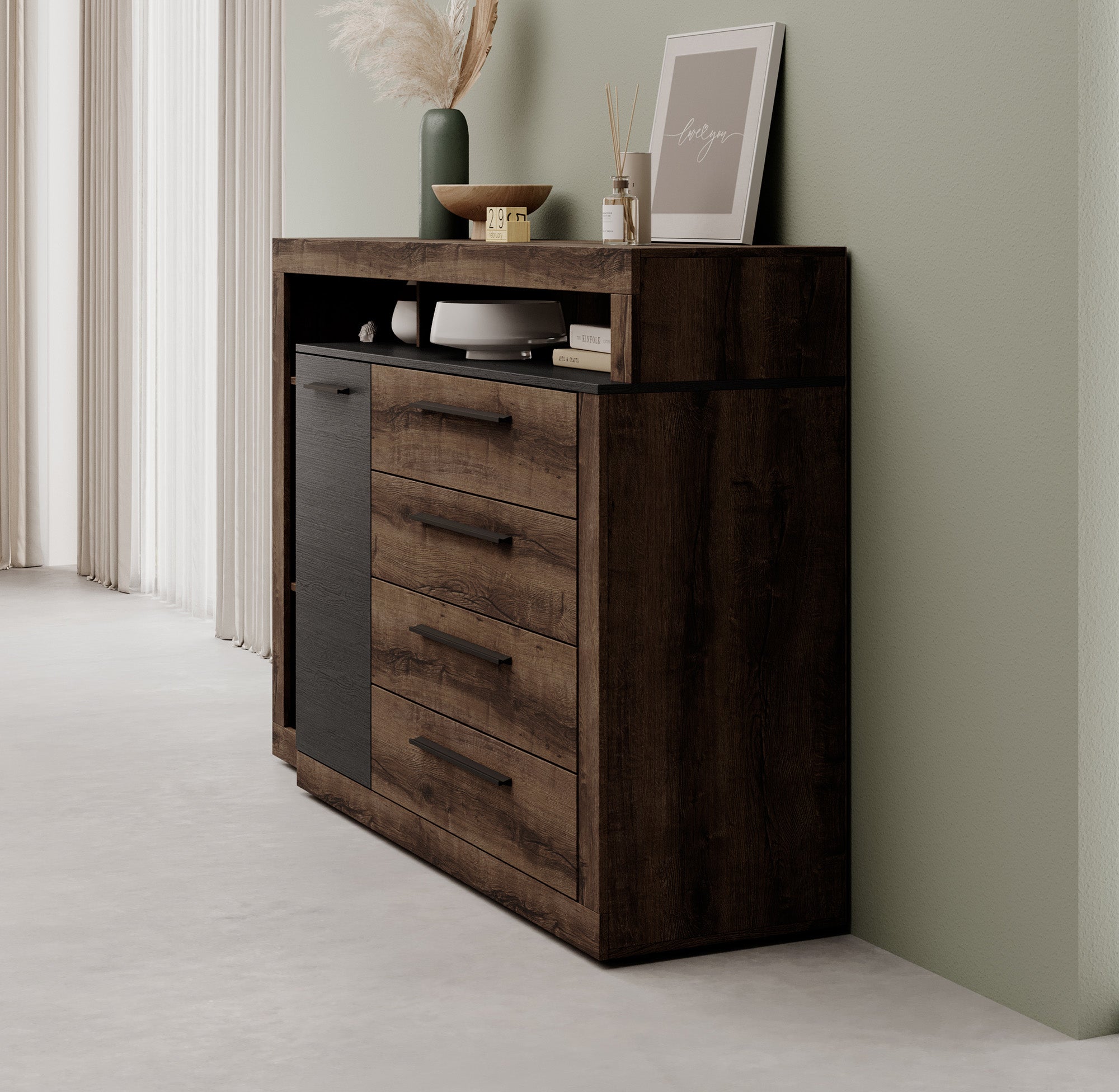 Meubella Dressoir Borna - Donker eiken - Grijs eiken - 161 cm