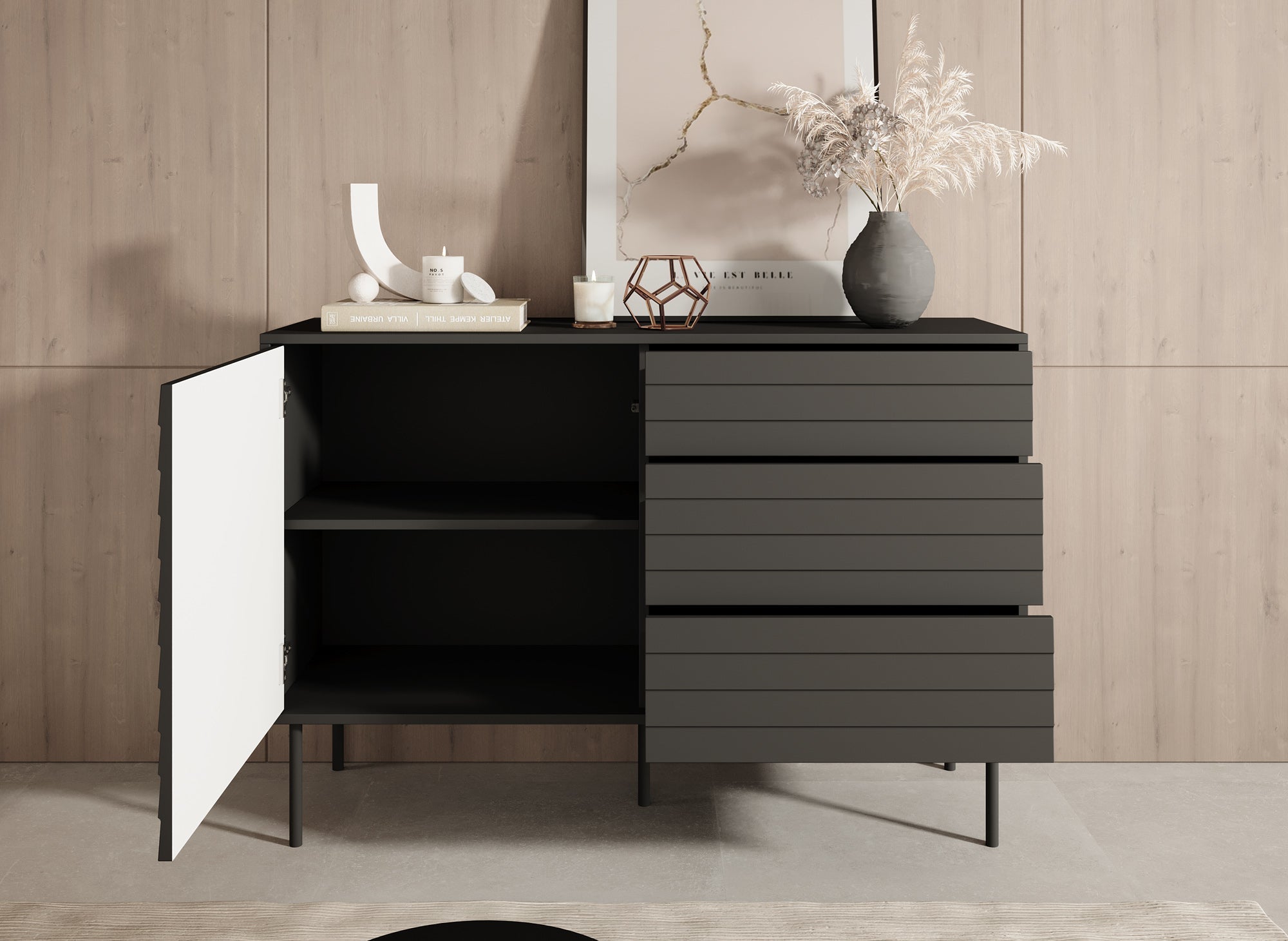 Meubella - Dressoir Cordoba - Zwart - 120 cm