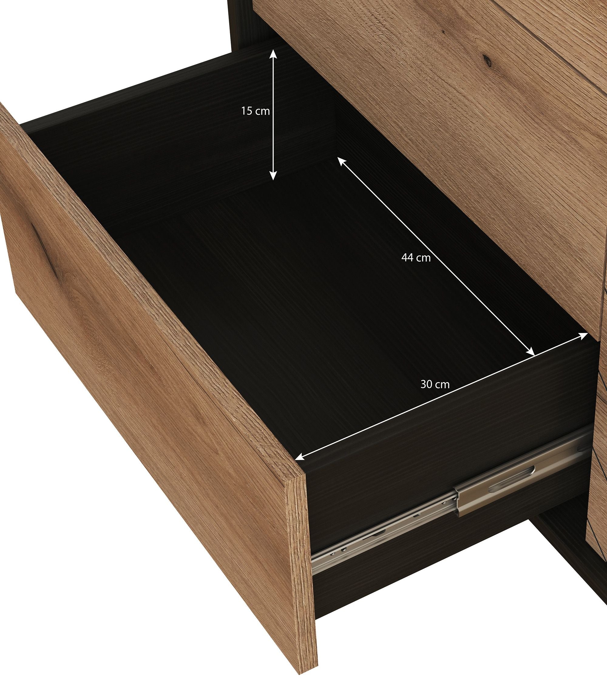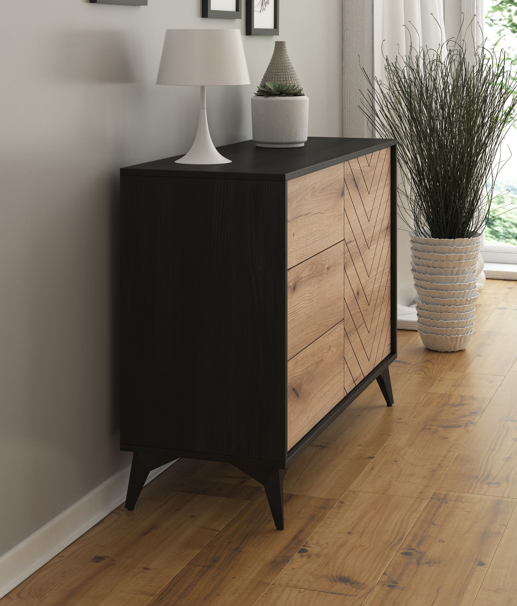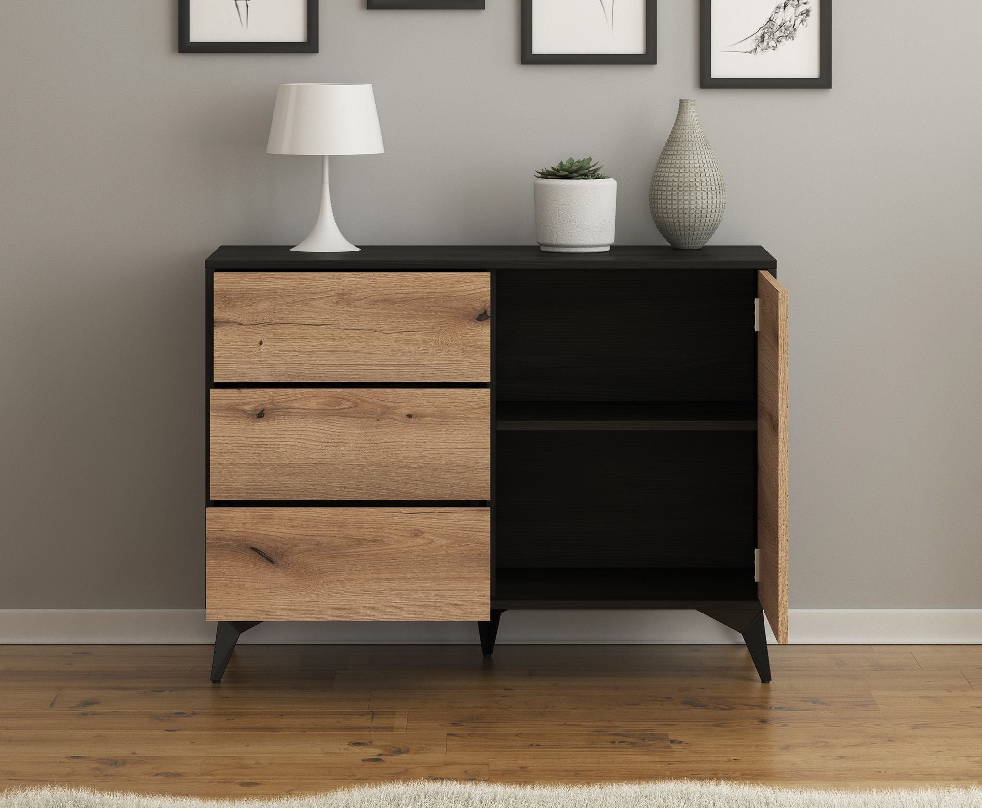 Meubella - Dressoir Dolores - Eiken - Zwart - 104 cm - met lades