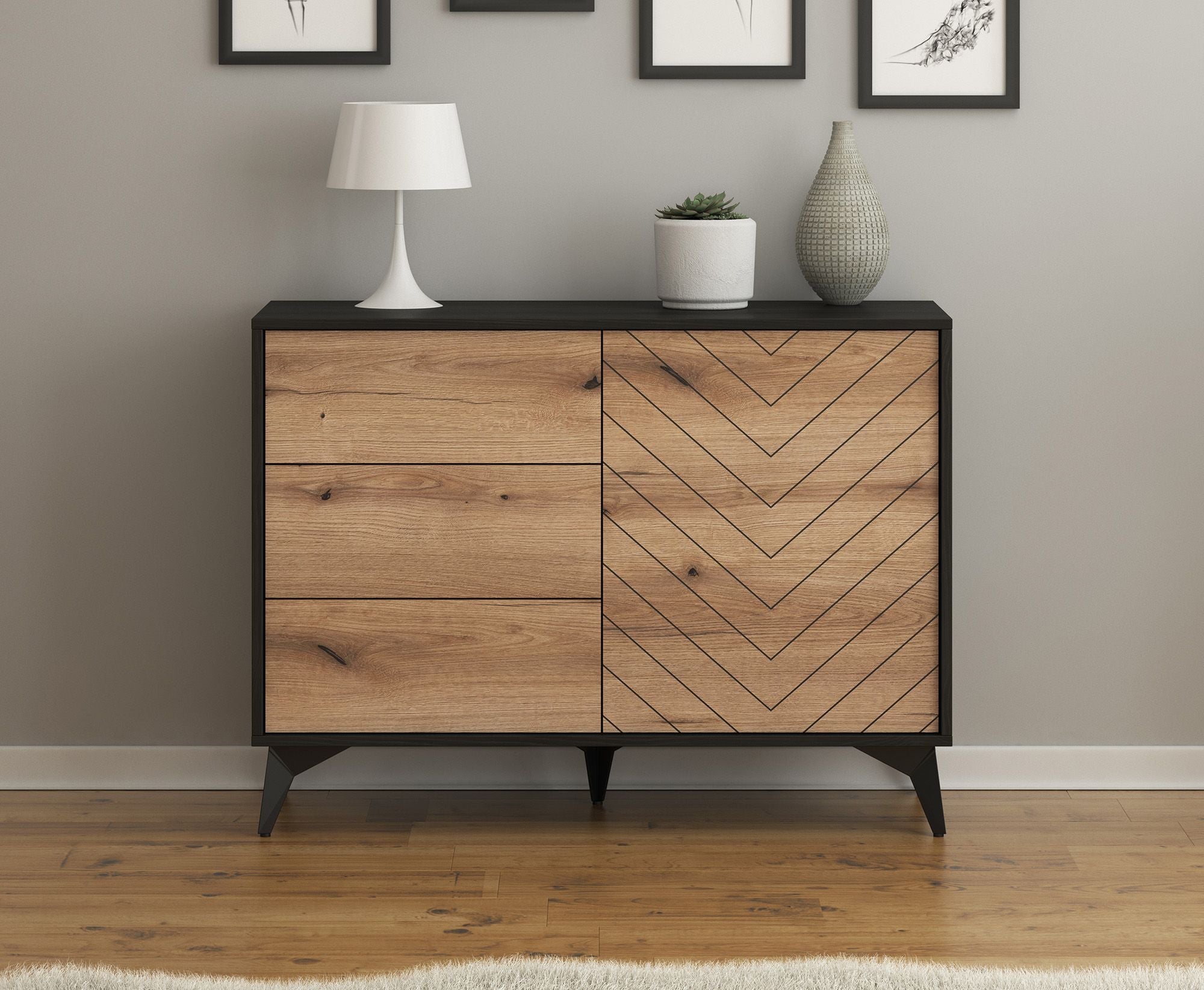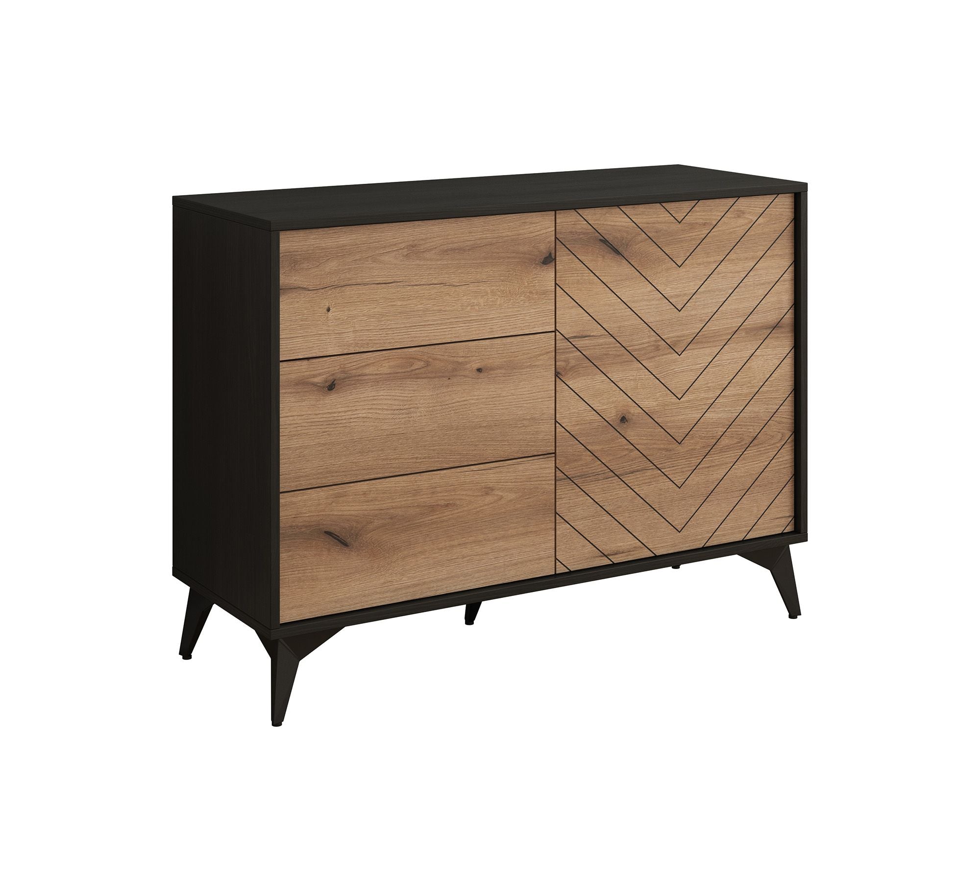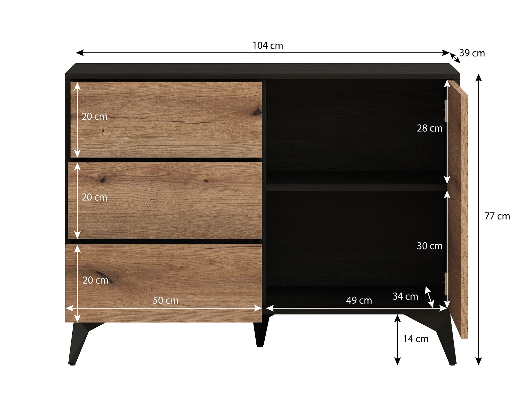 Meubella - Dressoir Dolores - Eiken - Zwart - 104 cm - met lades