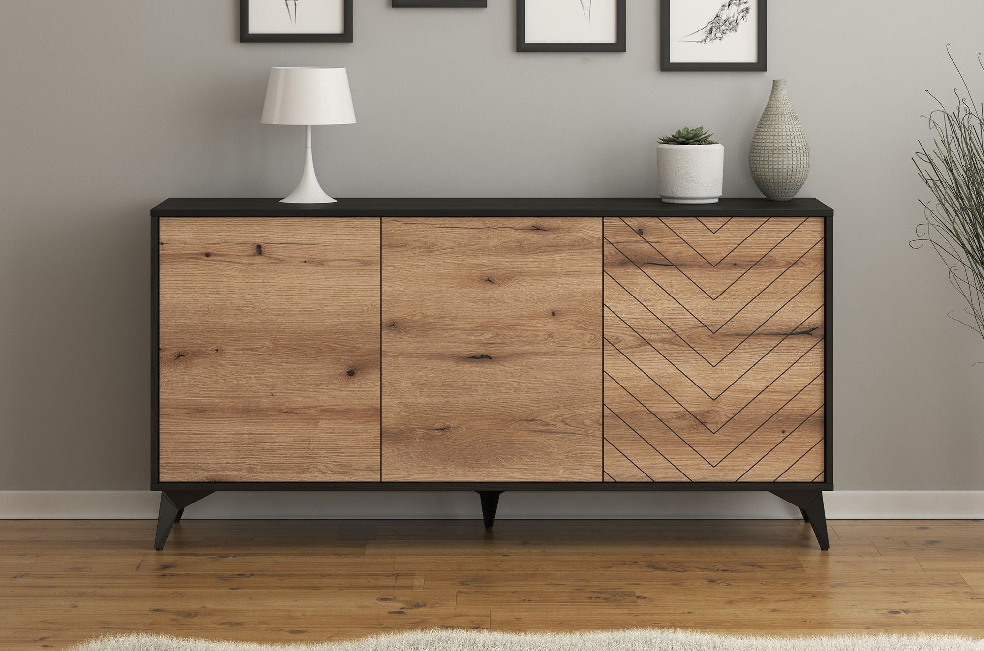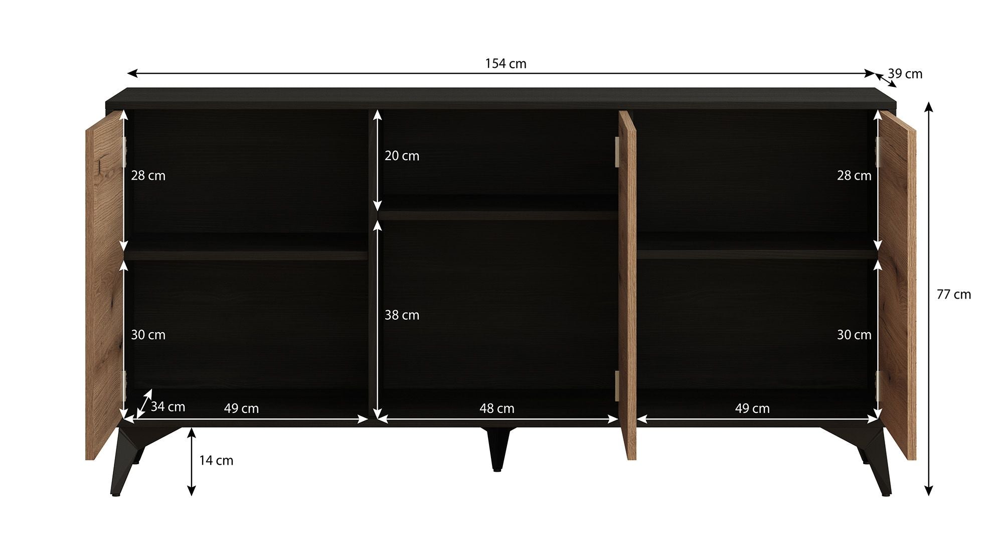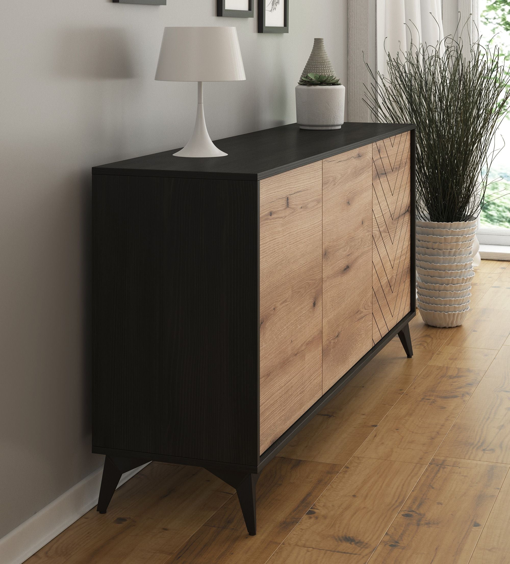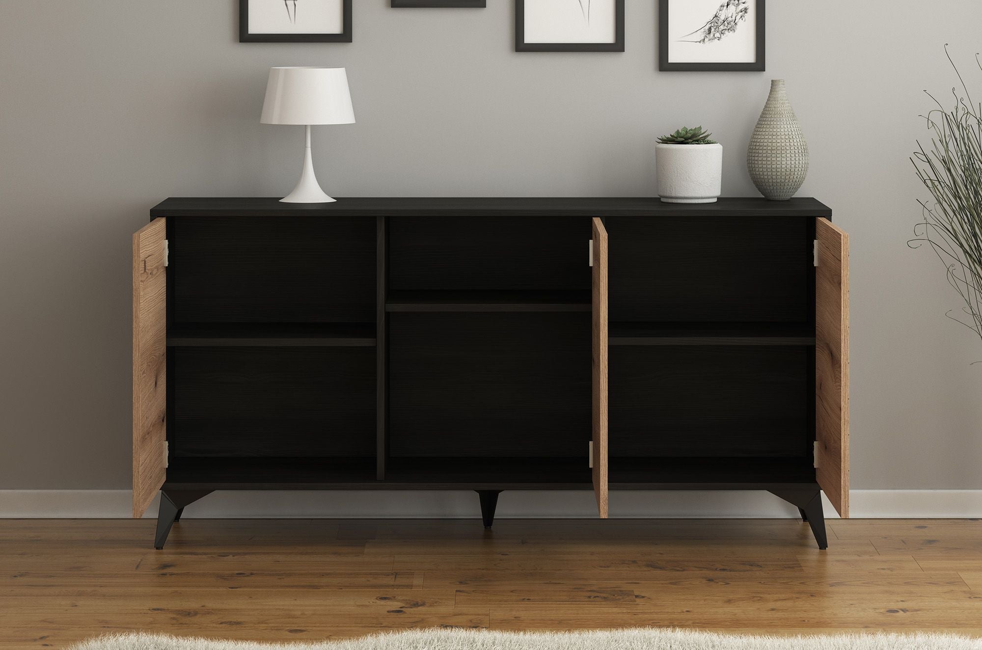 Meubella - Dressoir Dolores - Eiken - Zwart - 154 cm