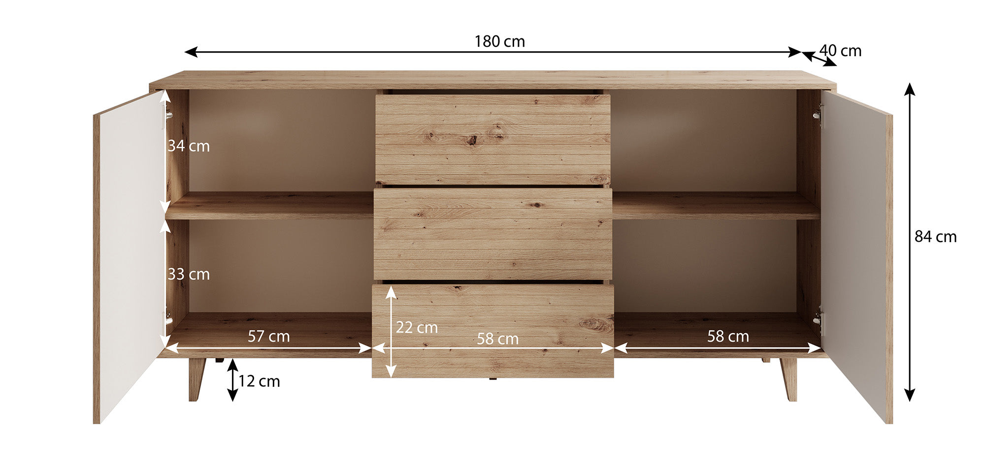 Meubella - Dressoir Fuzeta - Eiken - 180 cm