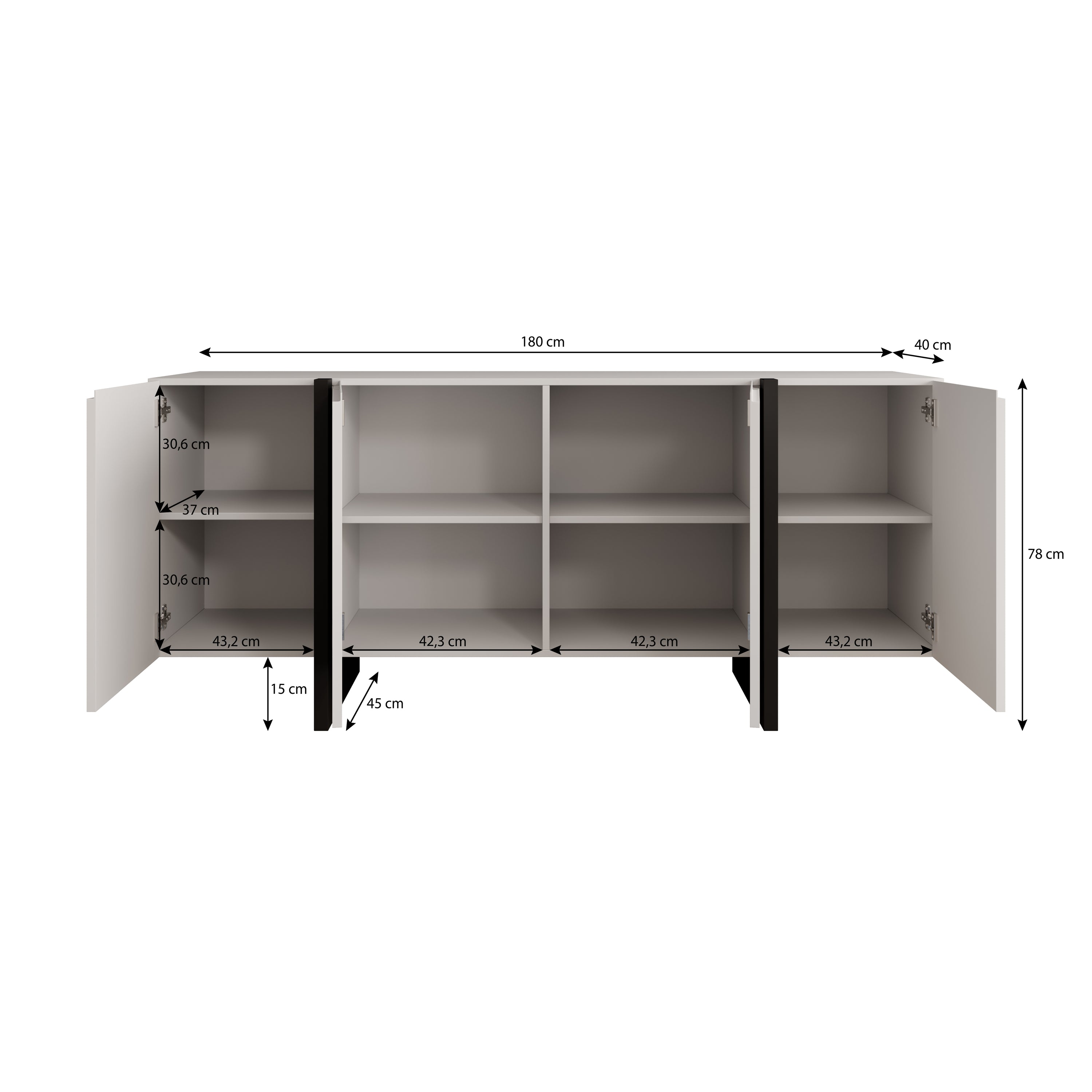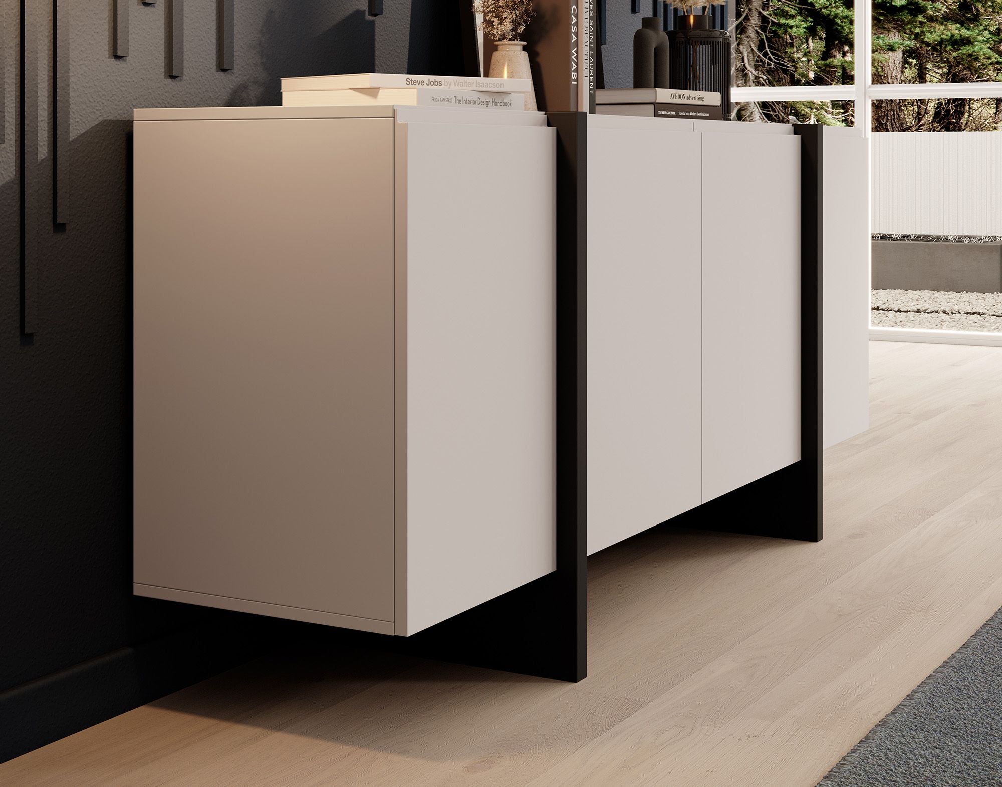 Meubella Dressoir Kelton - Beige - Zwart - 180 cm