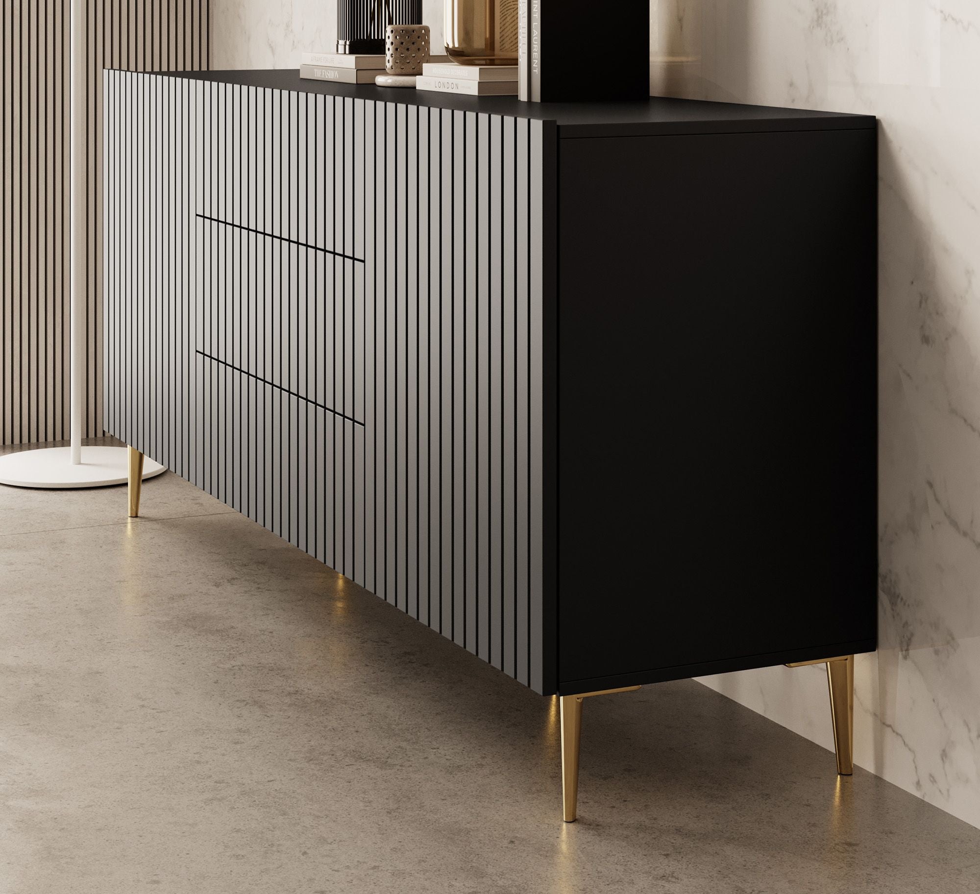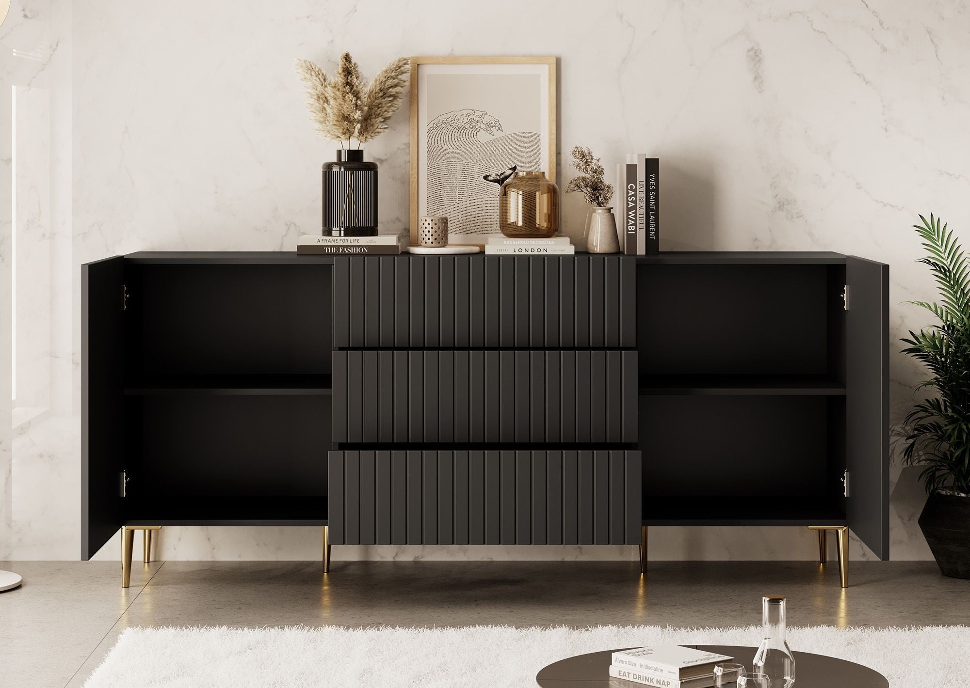 Meubella - Dressoir King - Mat zwart - 180 cm - Met lades