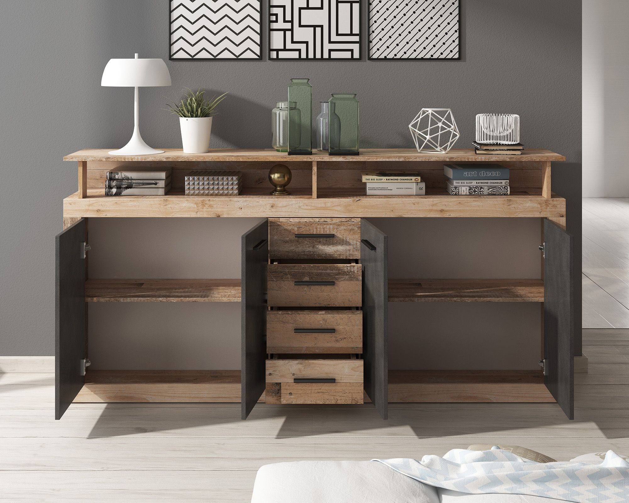 Meubella - Dressoir Lavina - Grijs - Old wood - 190 cm