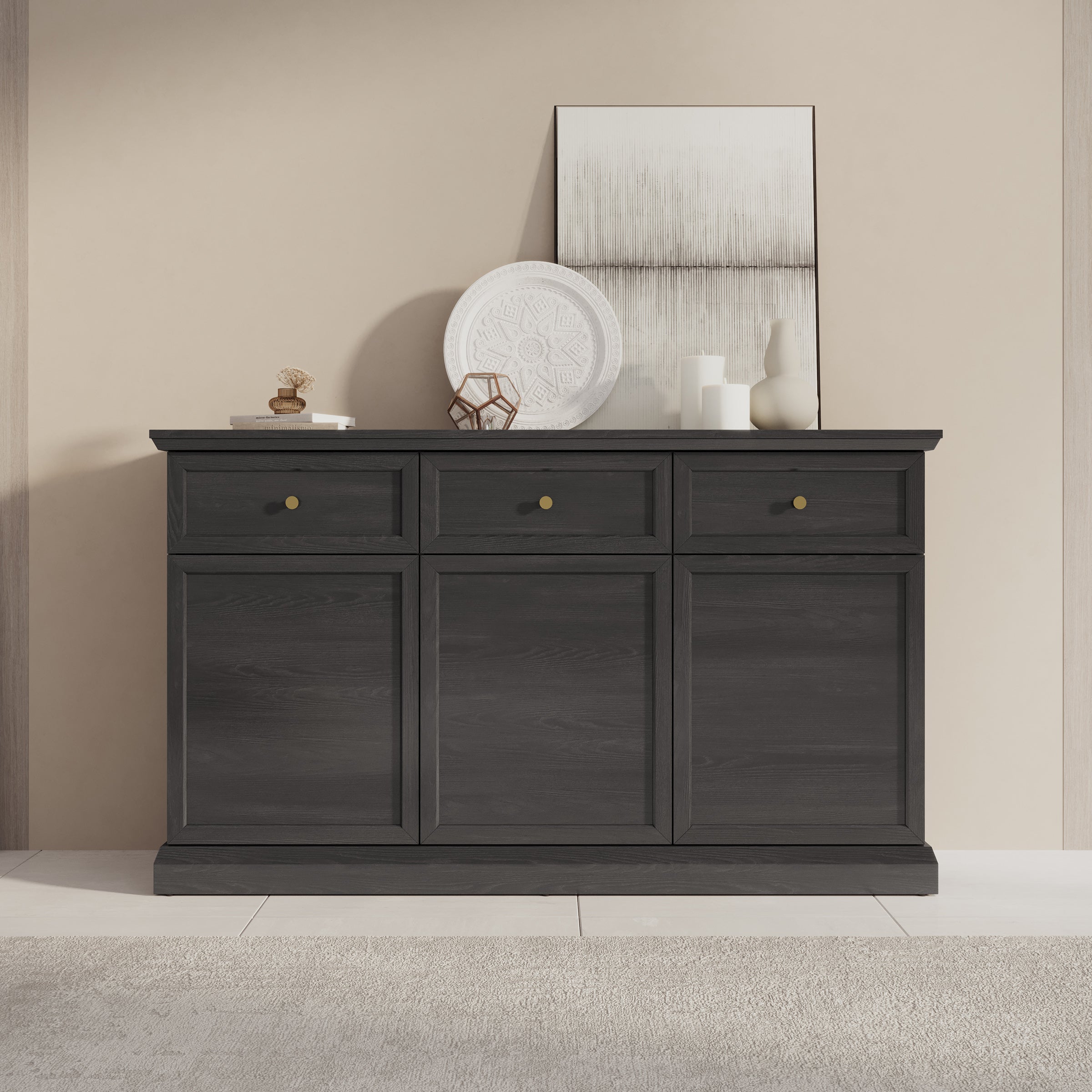 Meubella - Dressoir Leroy - Zwart eiken - 146 cm