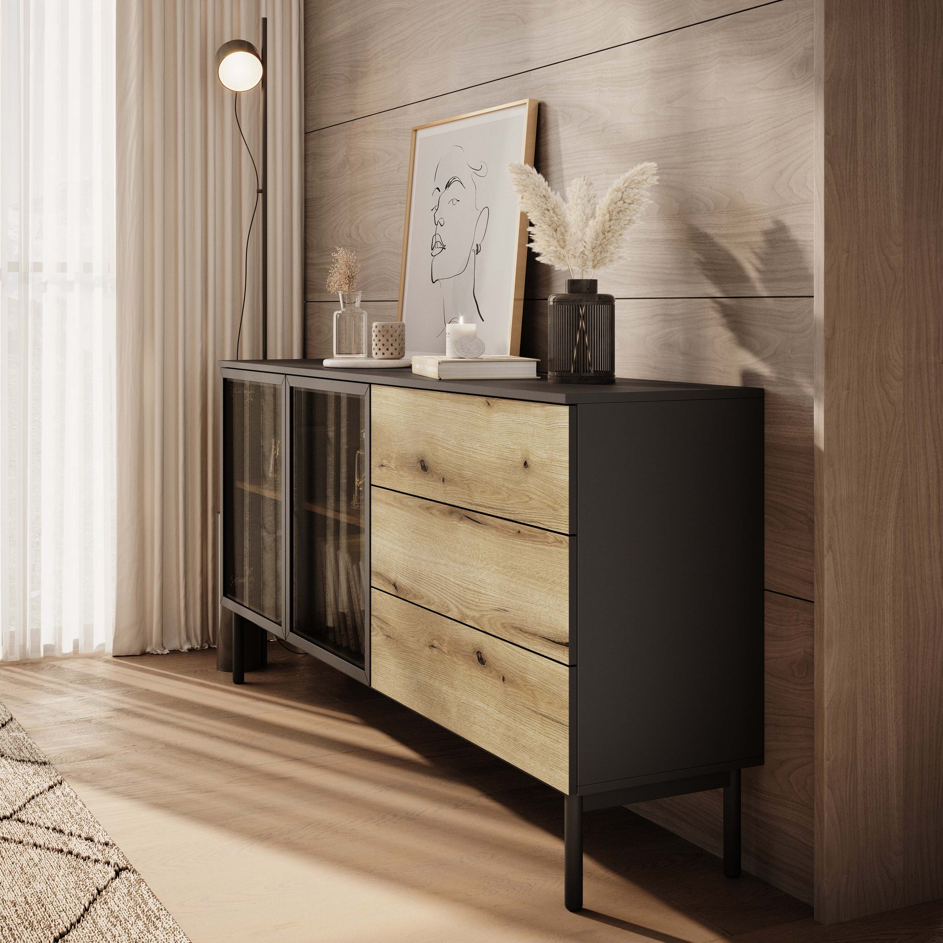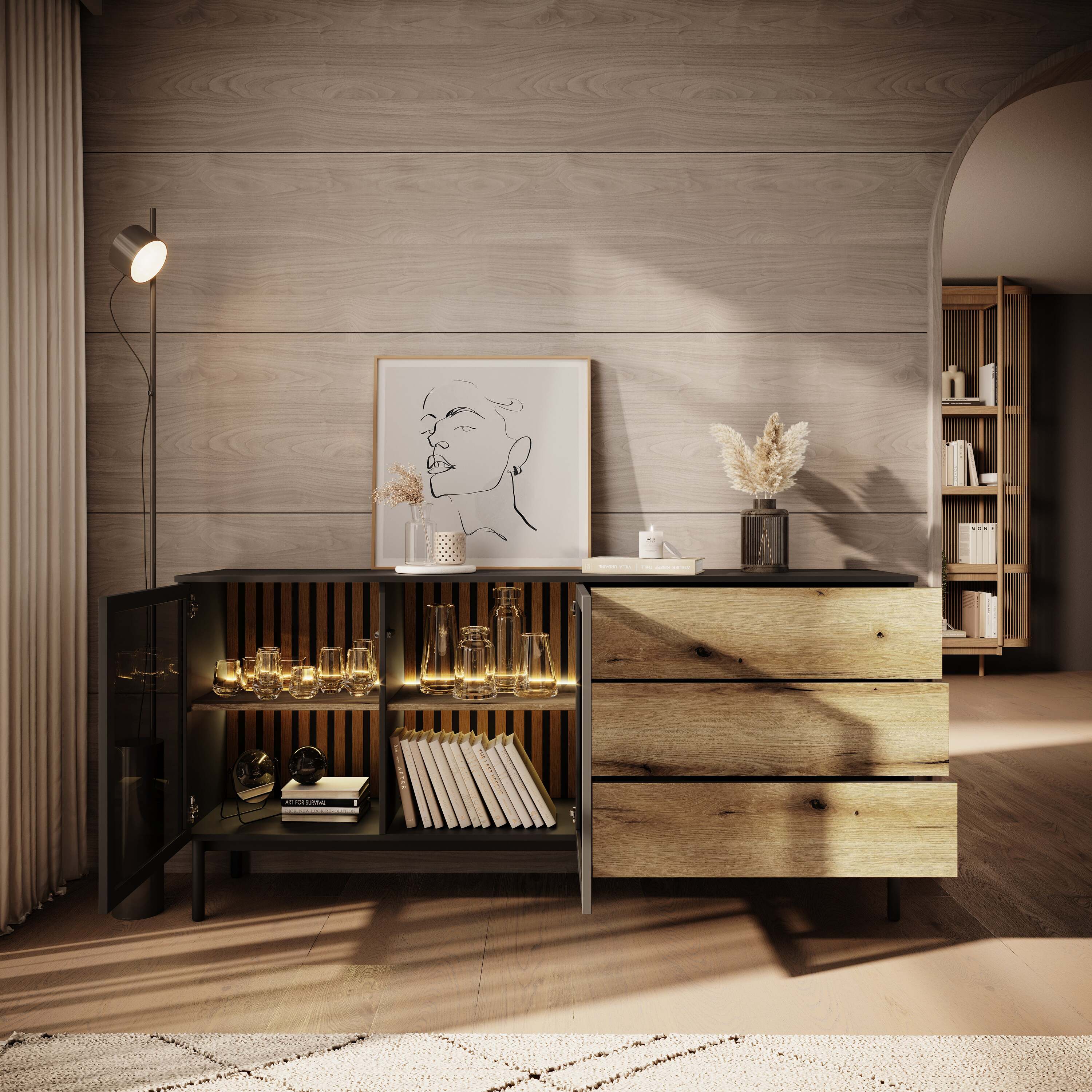 Meubella - Dressoir Ludwig - Zwart - Eiken - 180 cm