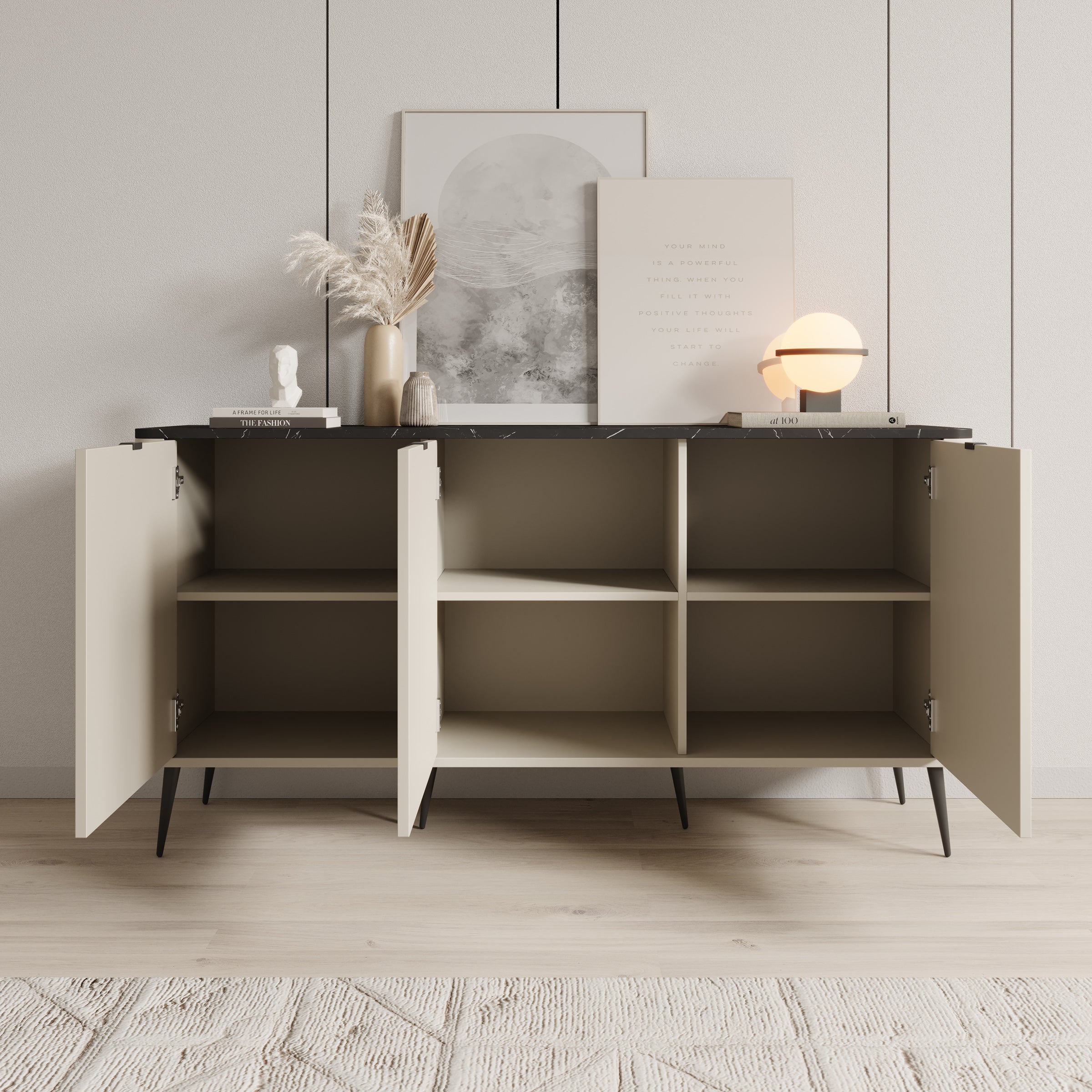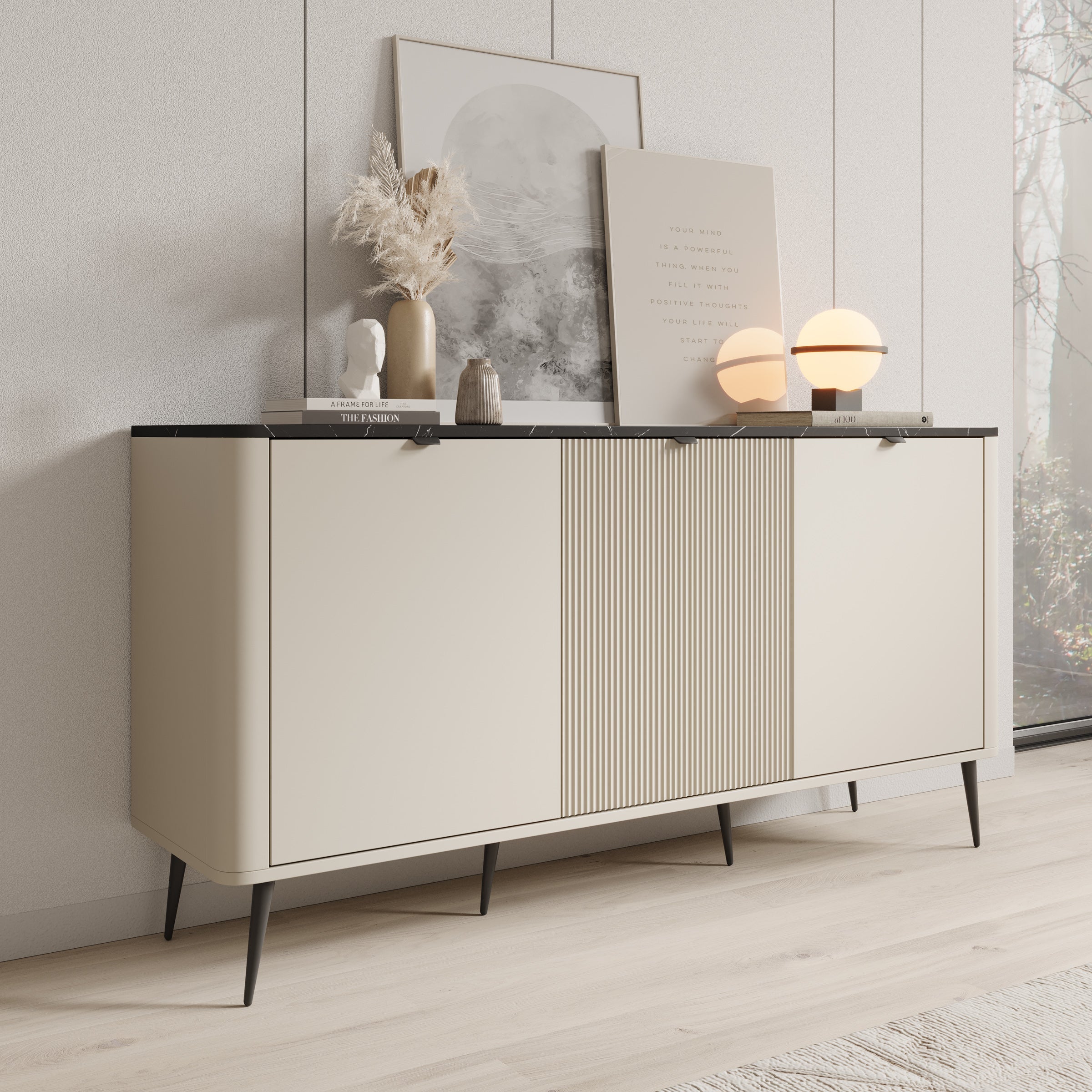 Meubella - Dressoir Mace - Beige - 160 cm