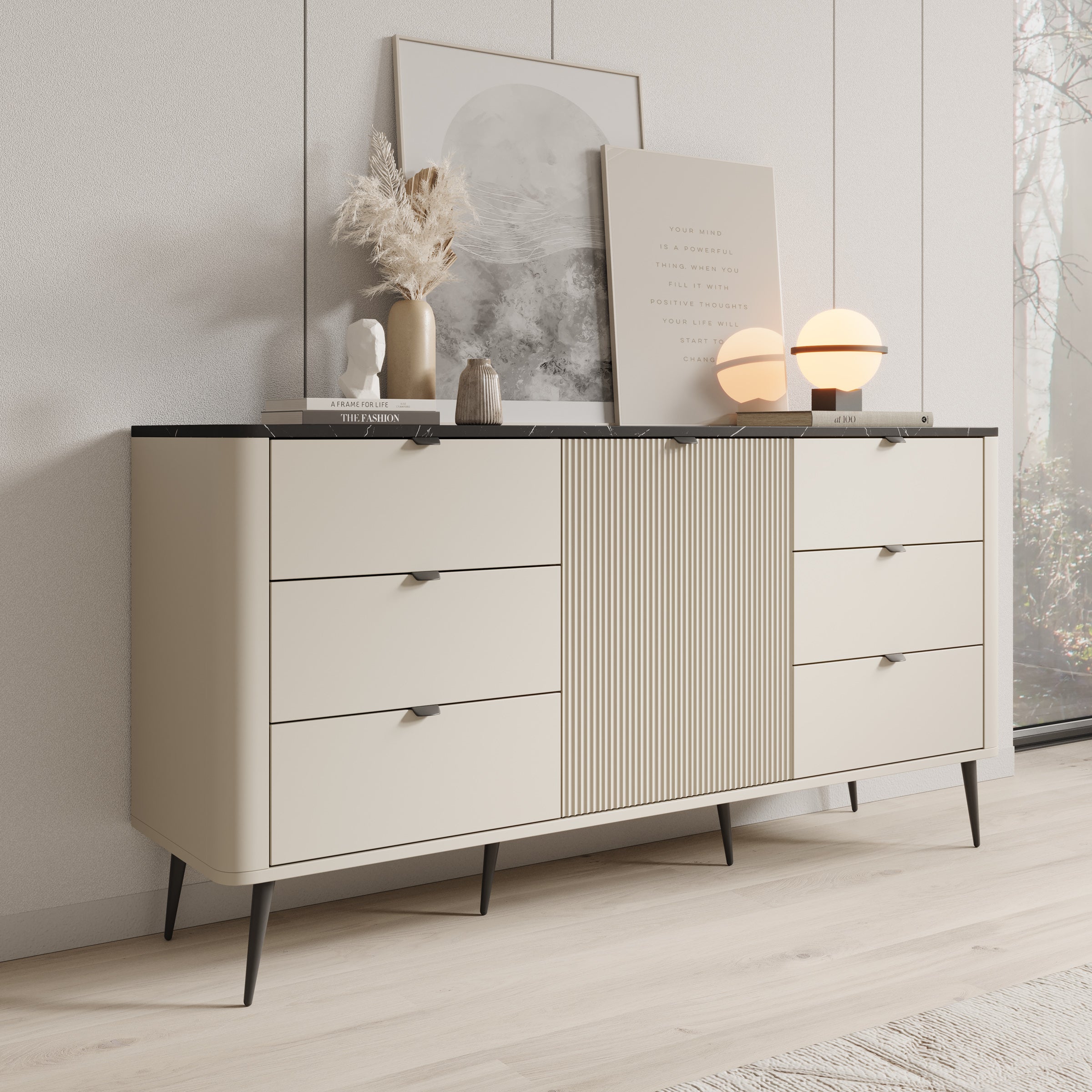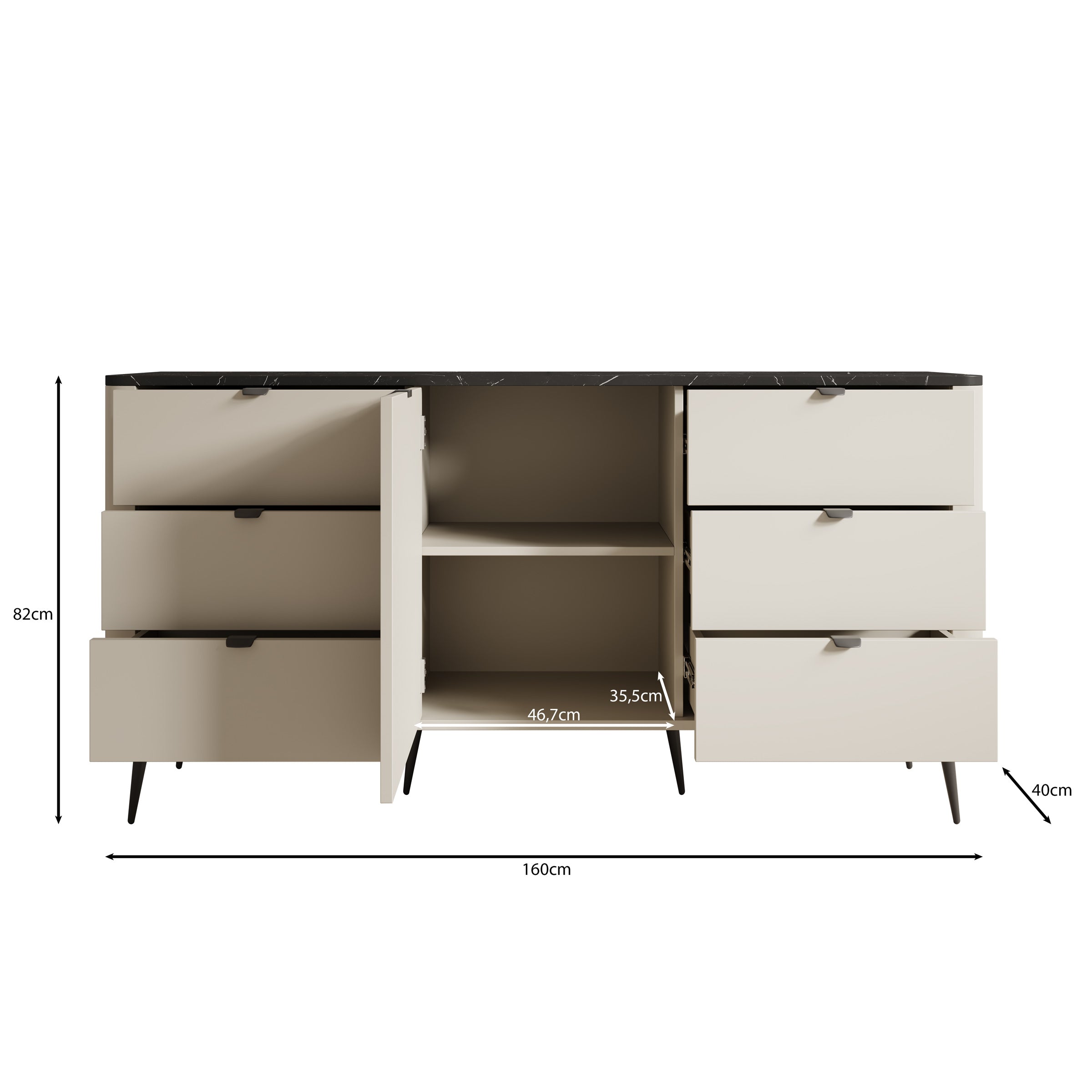 Meubella - Dressoir Mace - Beige - 160 cm - Met lades
