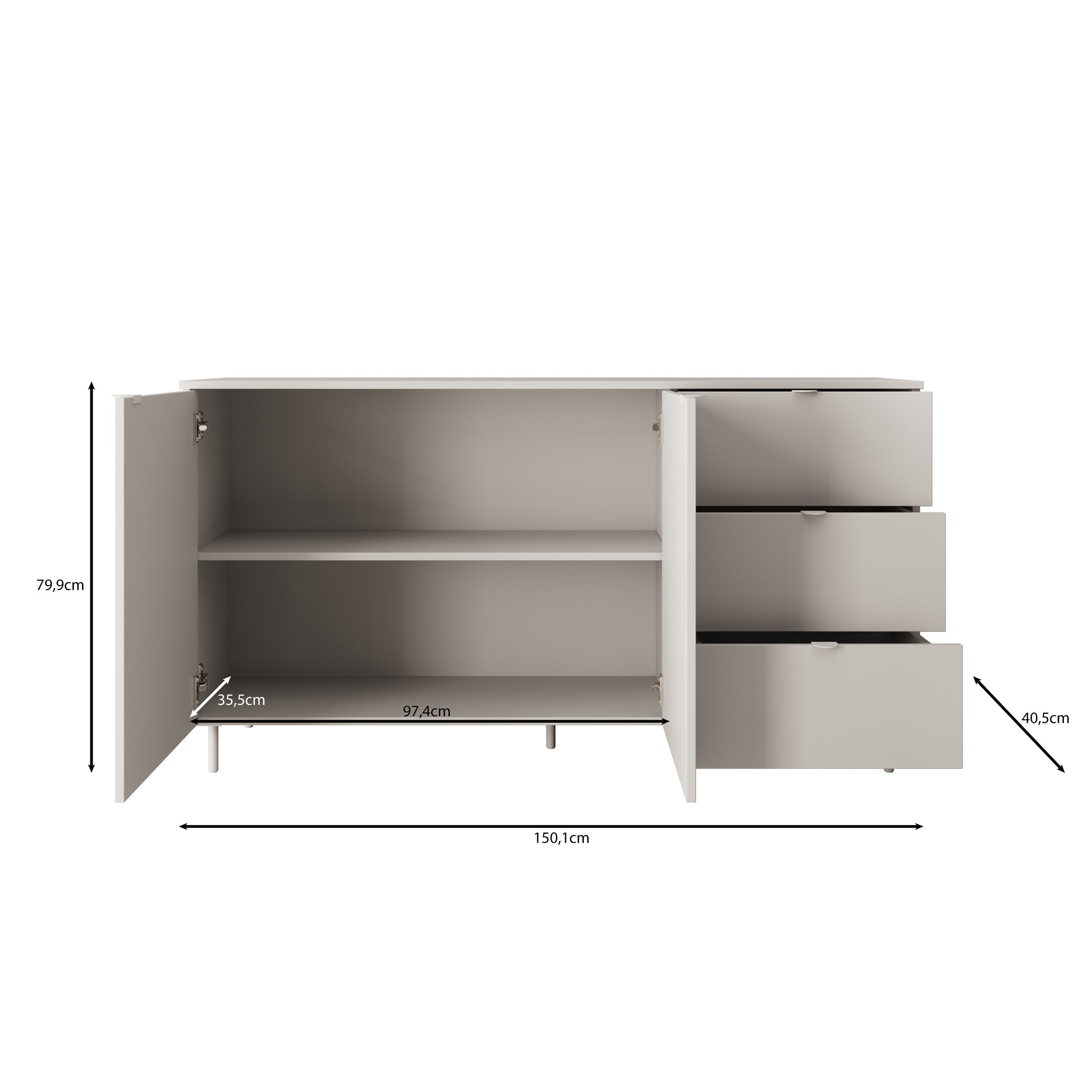 Meubella - Dressoir Malvare - Wit - 150 cm - Met lades