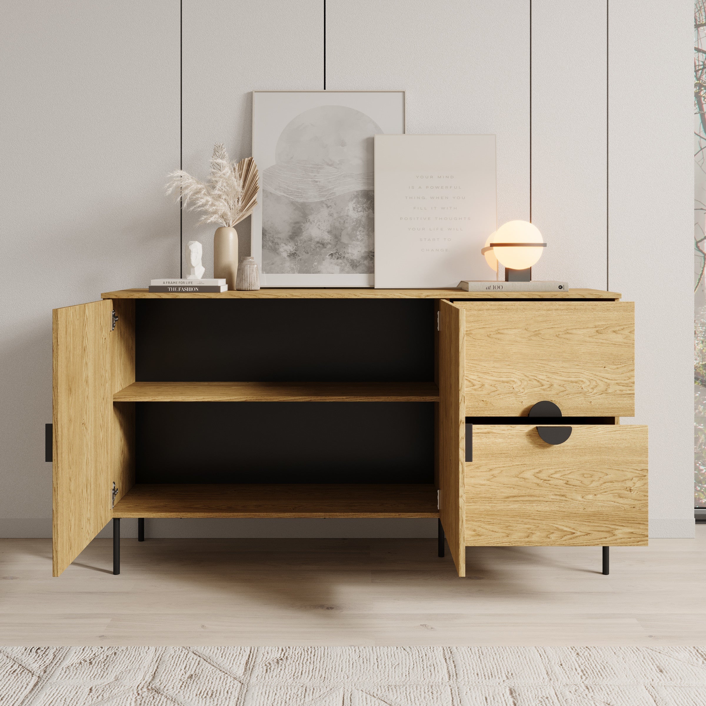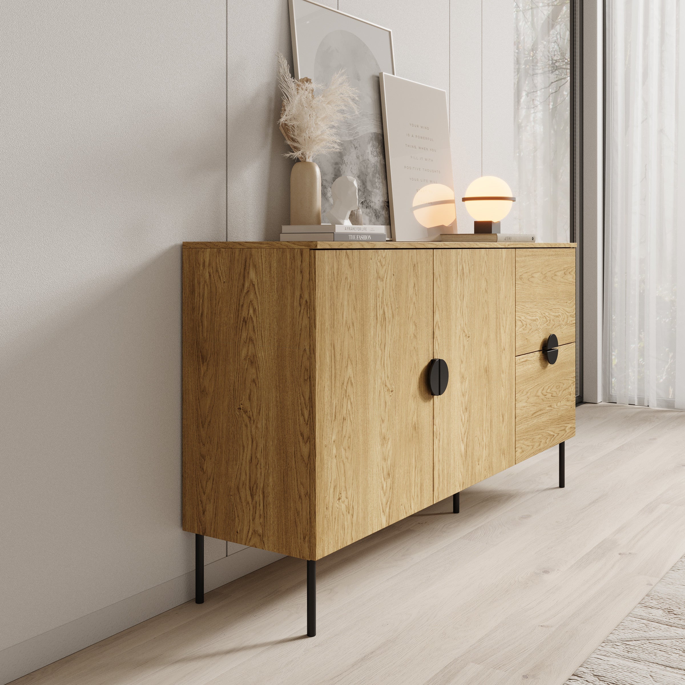 Meubella - Dressoir Monor - Eiken - 160 cm