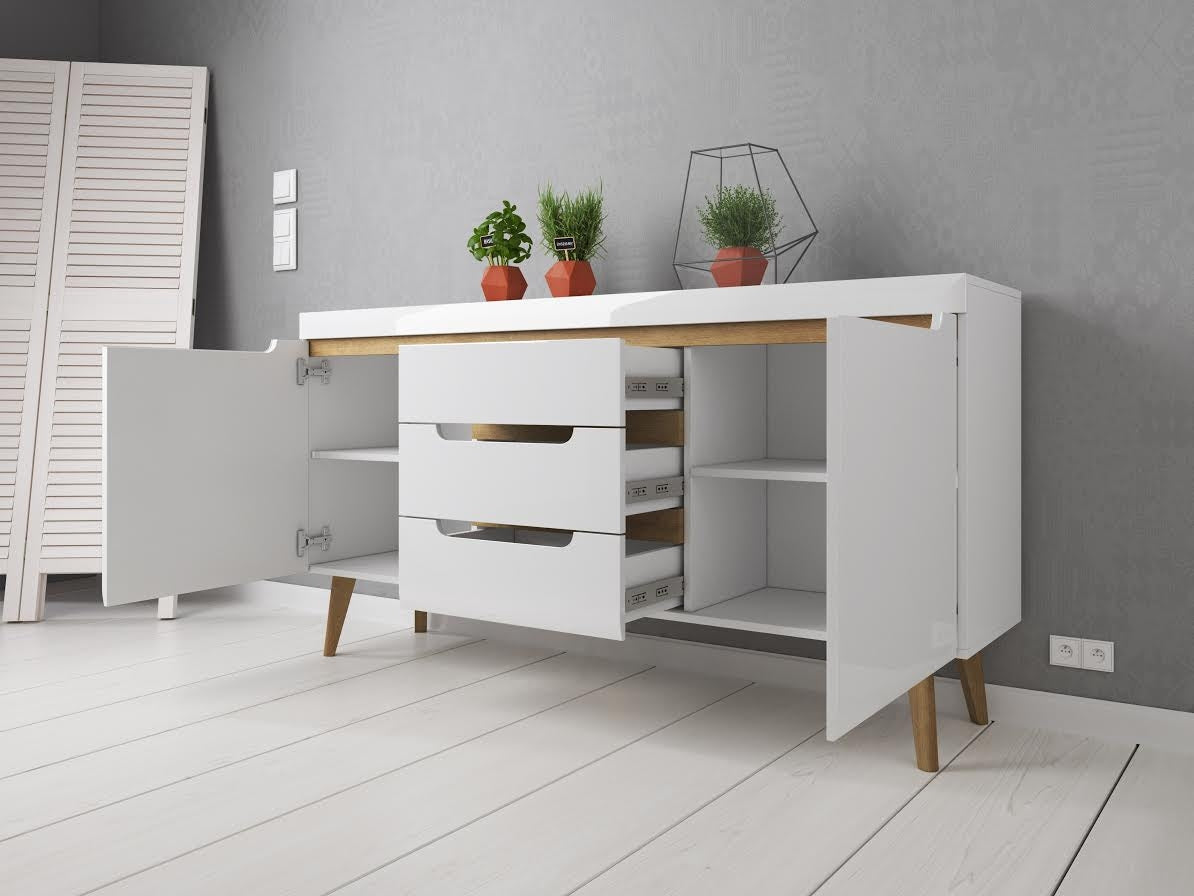 Meubella - Dressoir Nebraska - Wit - Eiken - 160 cm