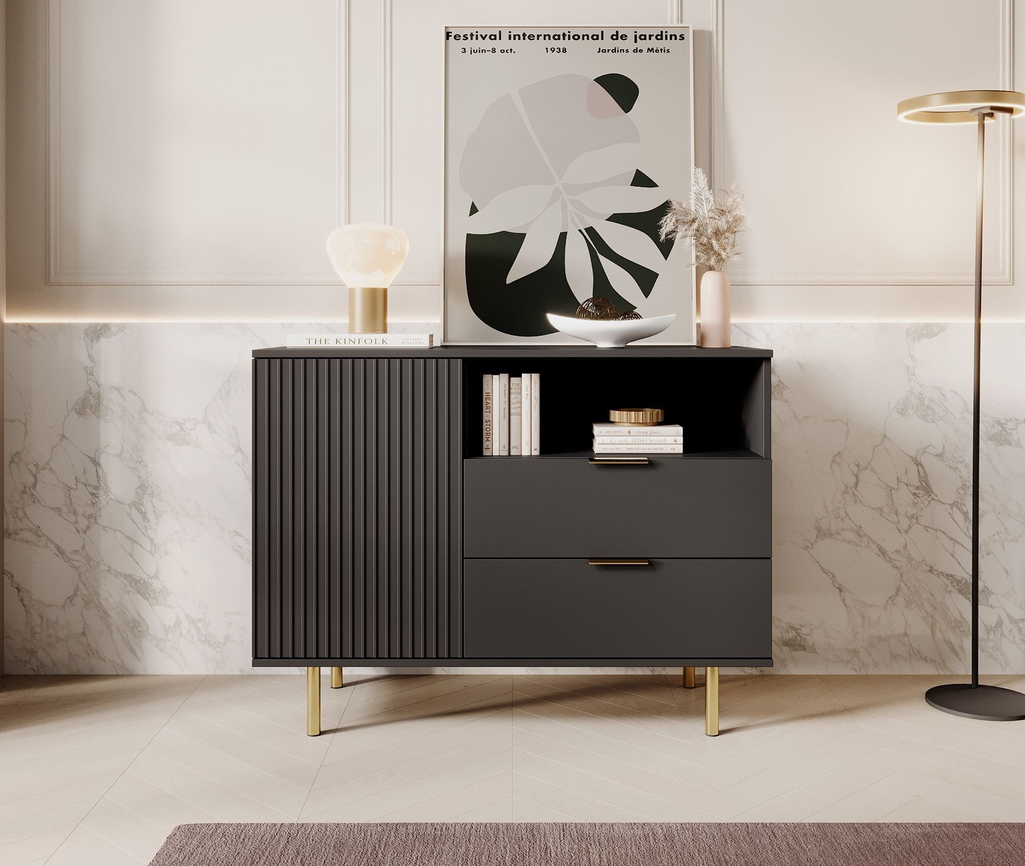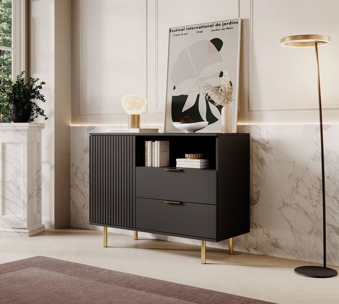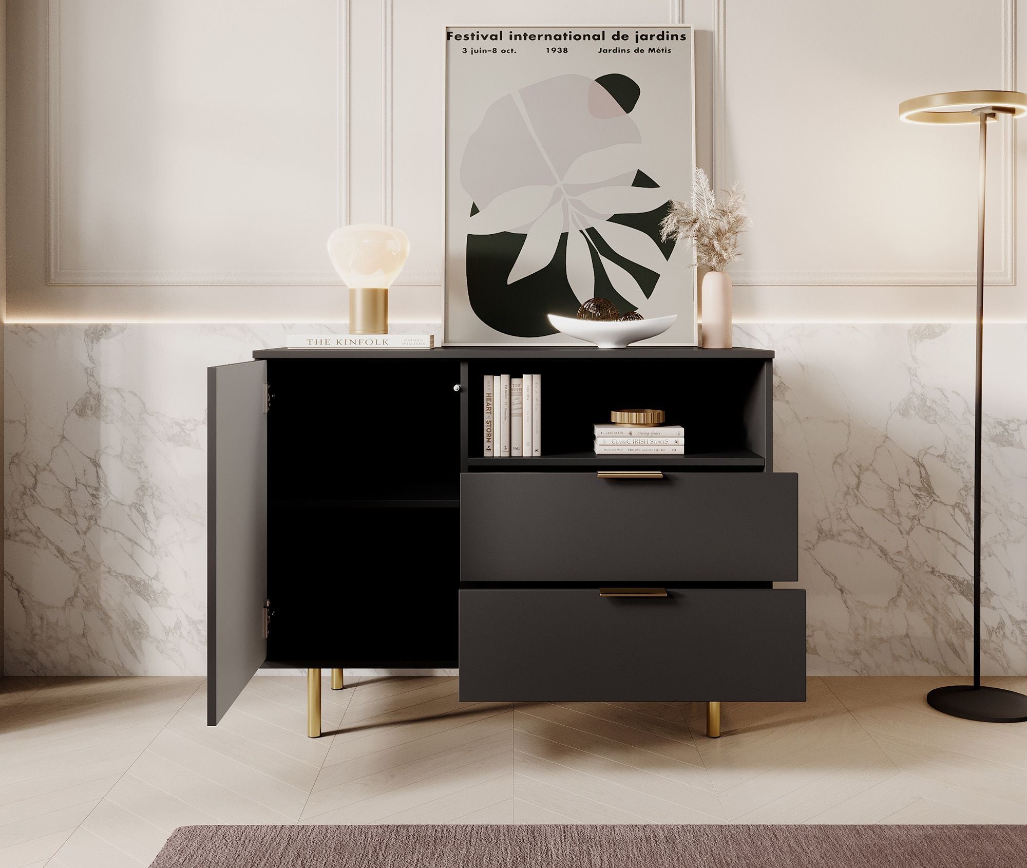 Meubella - Dressoir Nicola - Mat zwart - 107 cm