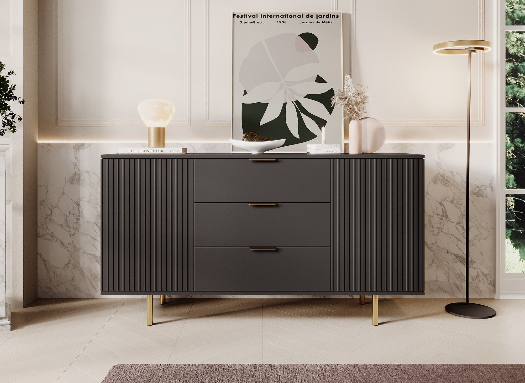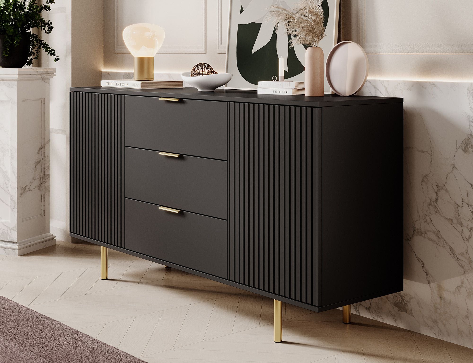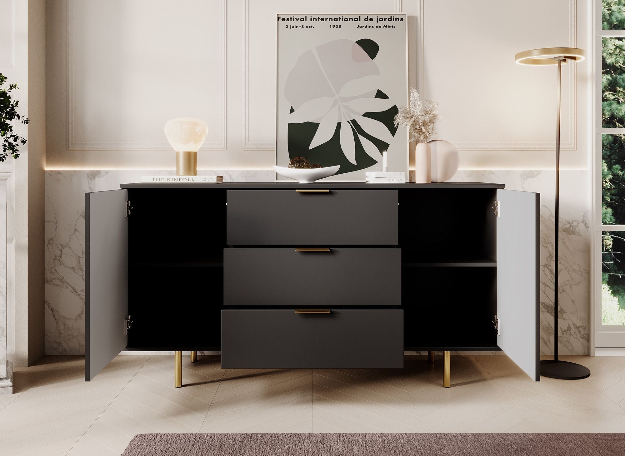 Meubella - Dressoir Nicola - Mat zwart - 150 cm