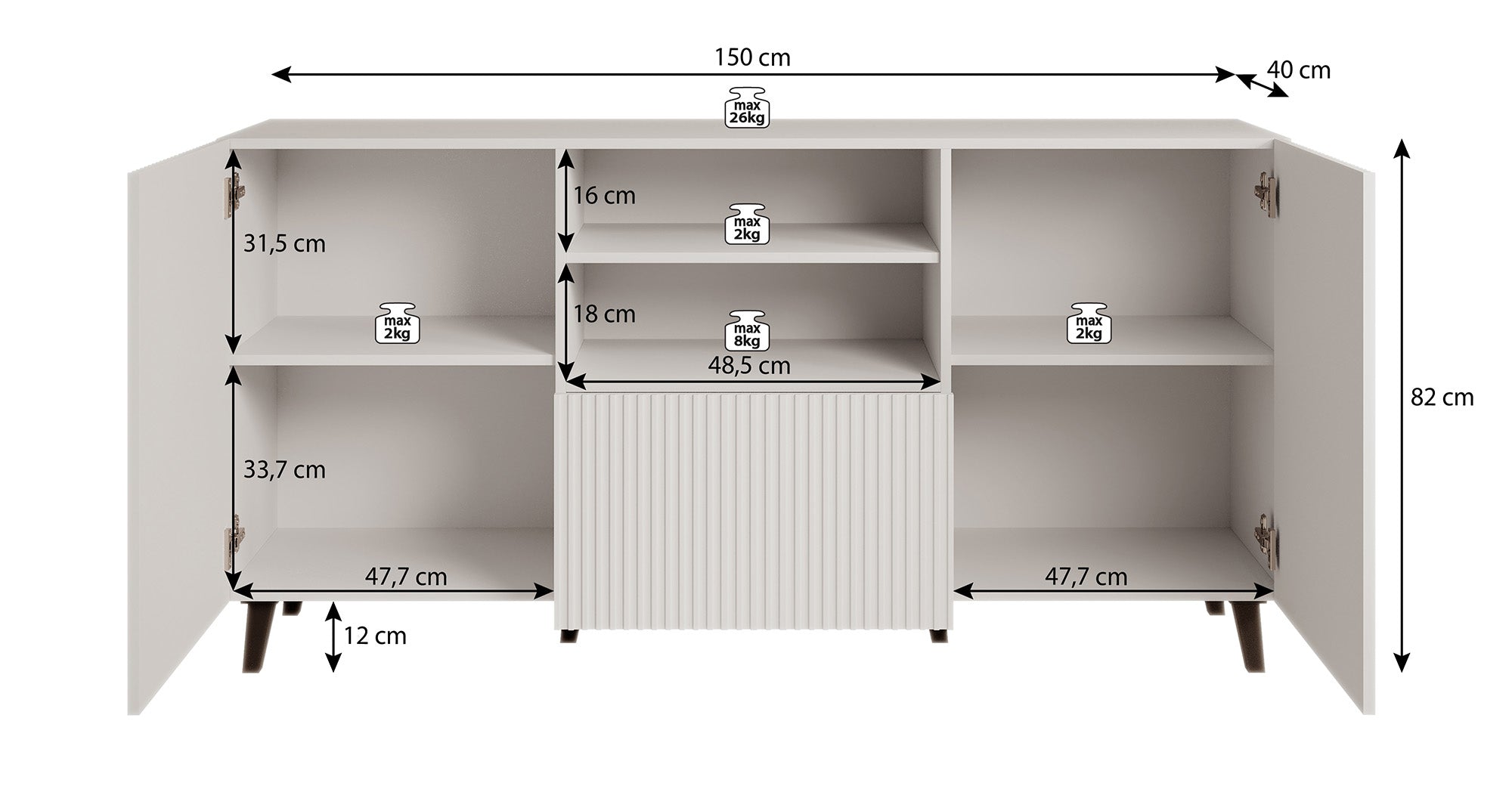 Meubella - Dressoir Palamos - Wit - 150 cm