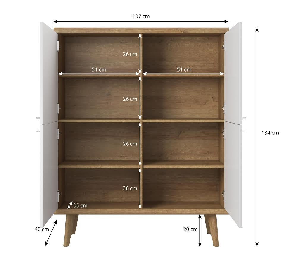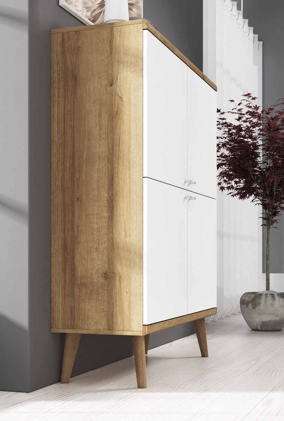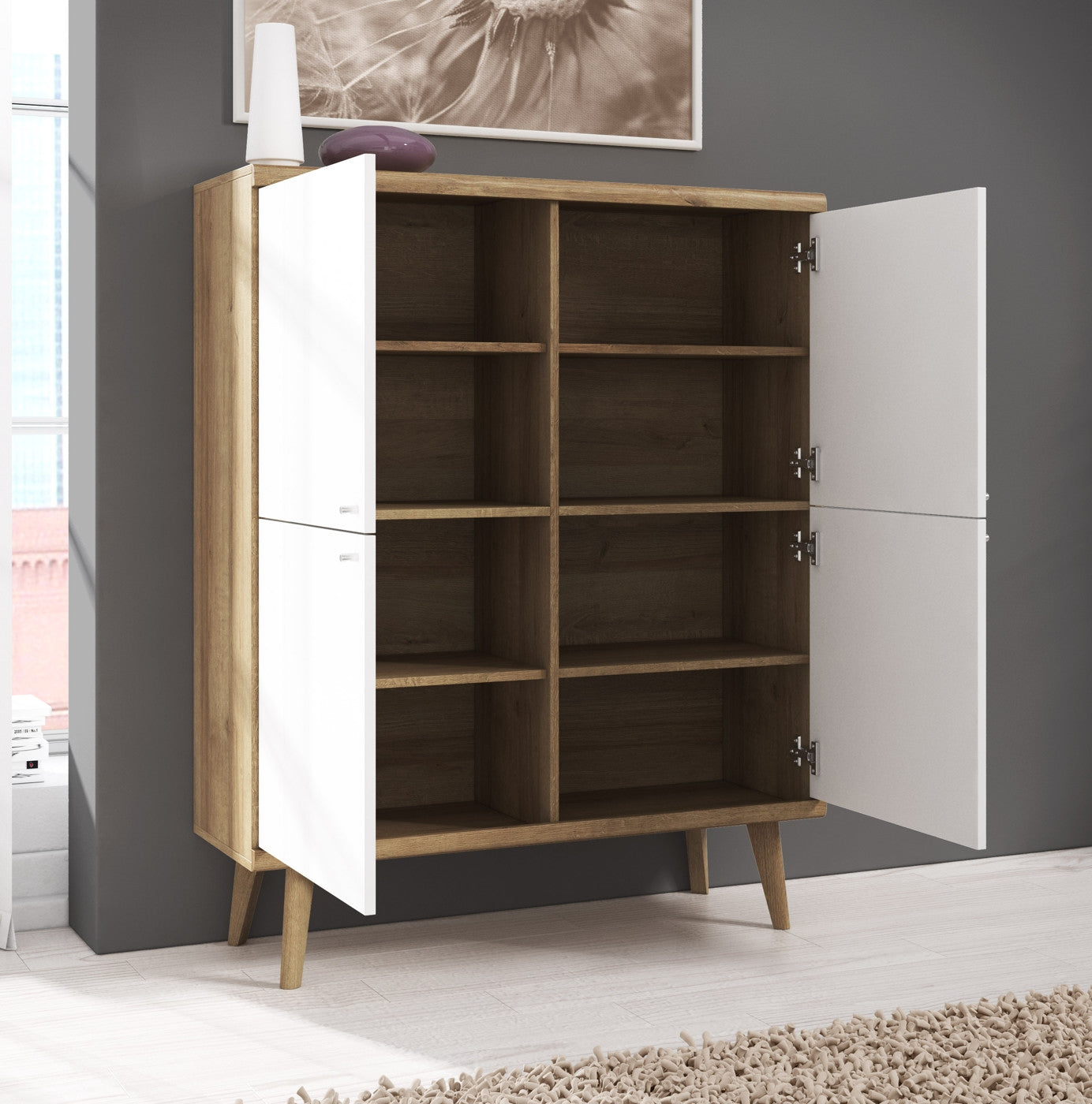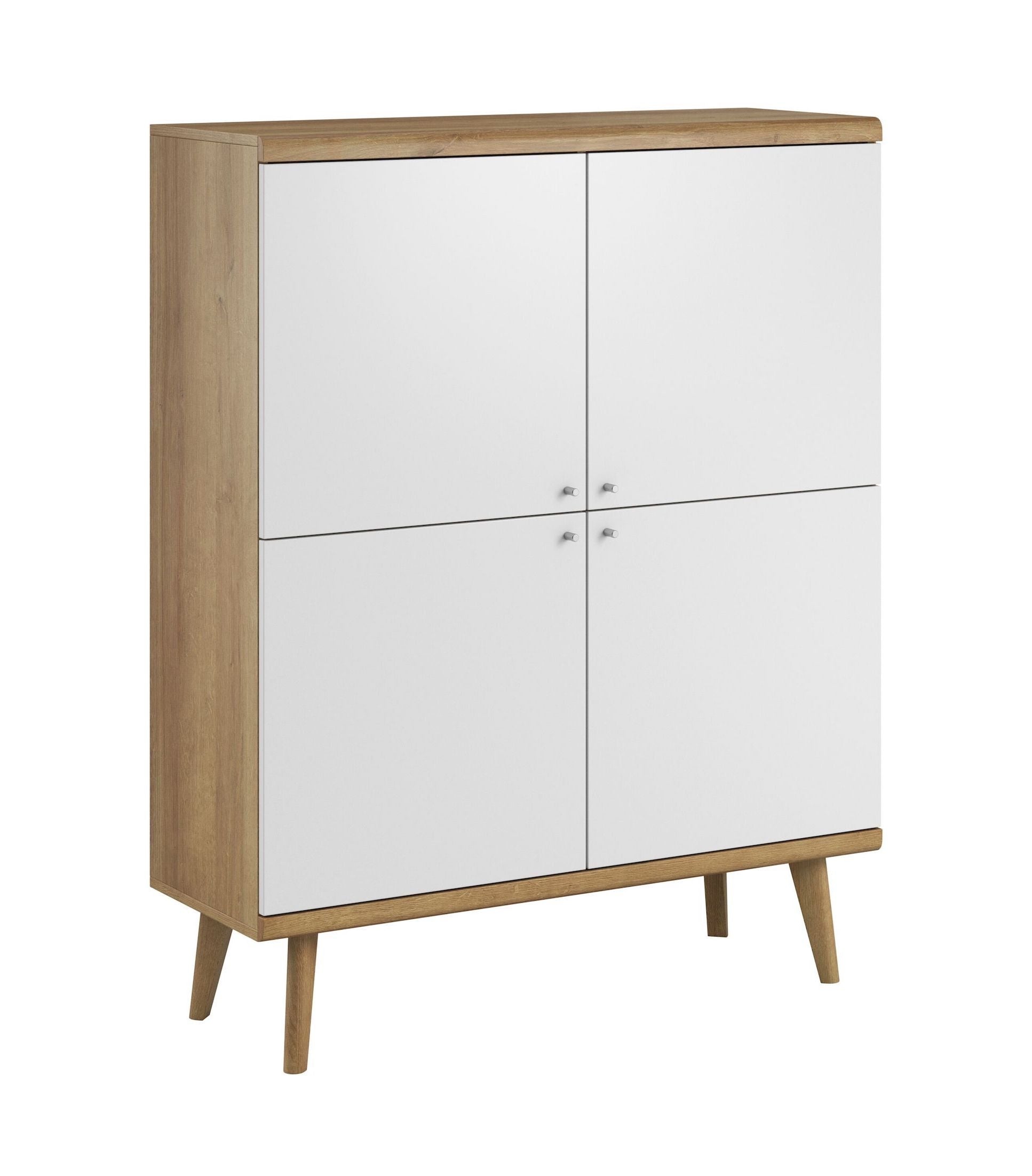 Meubella - Dressoir Primavera - Wit - Licht eiken - 107 cm - Hoog