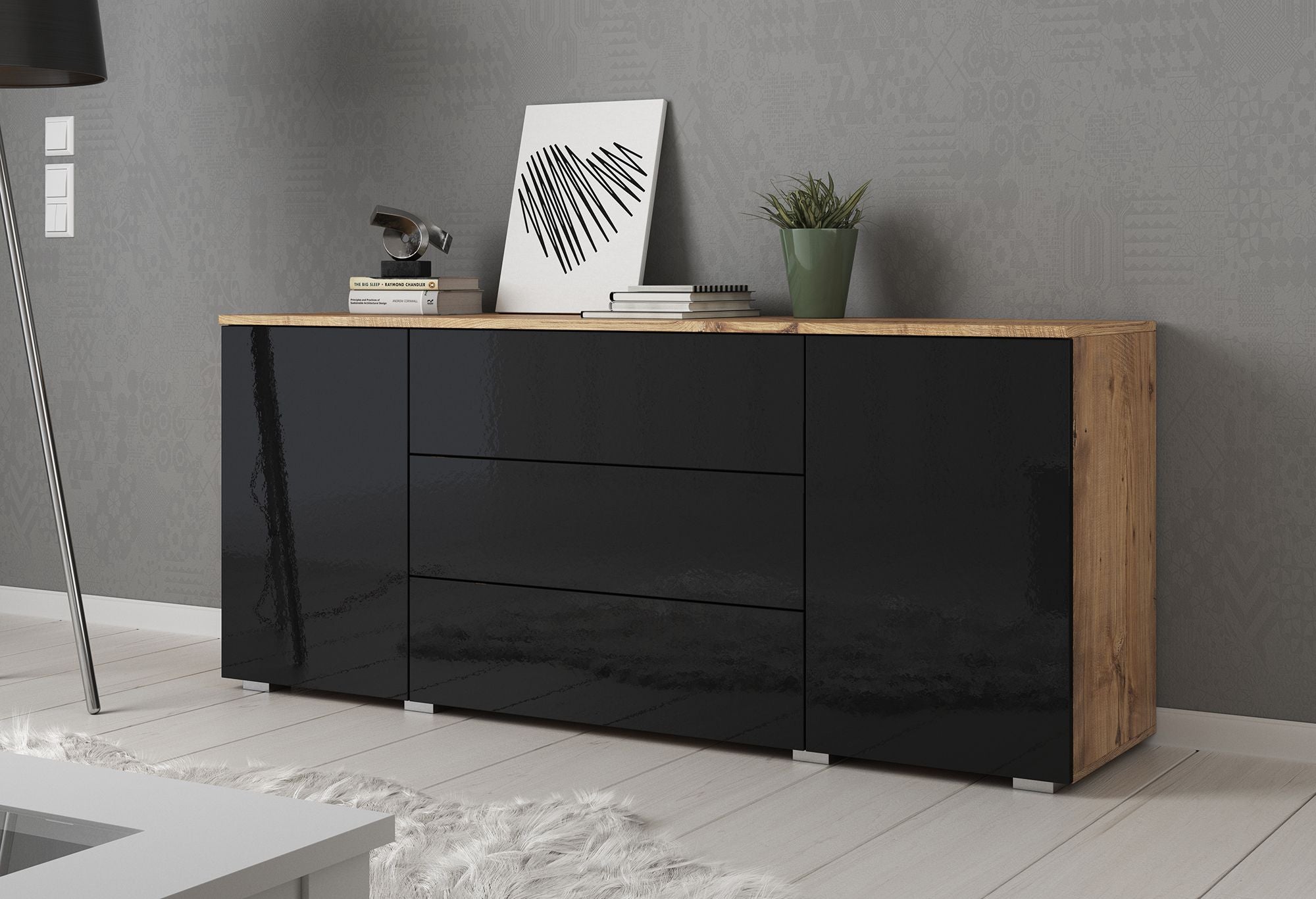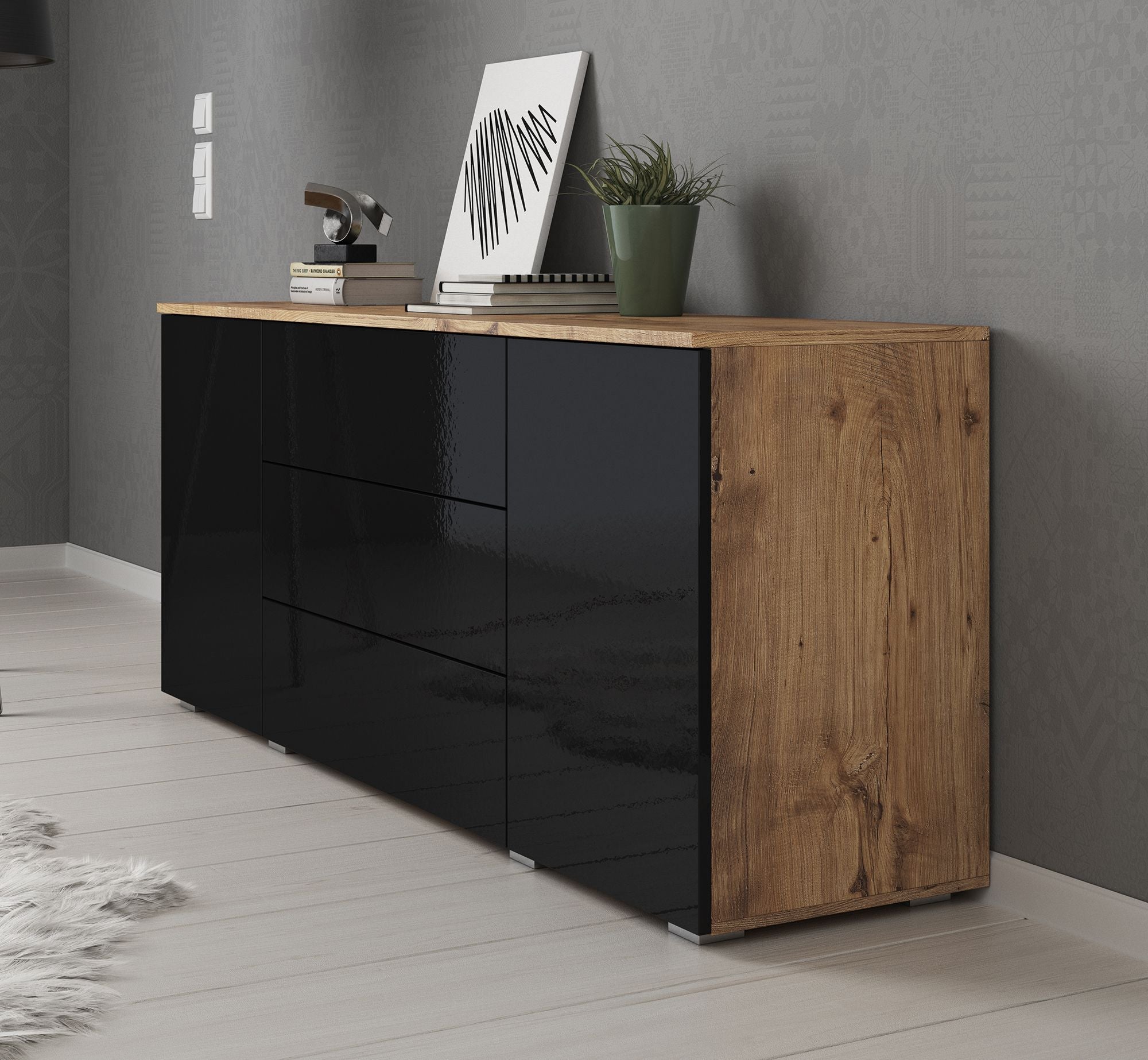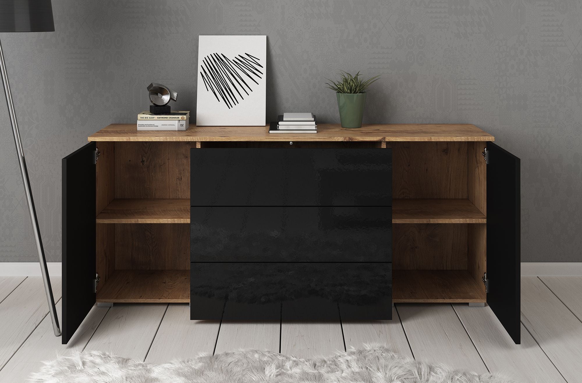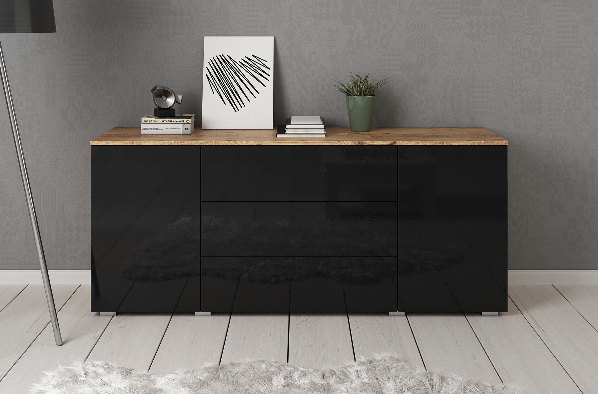 Meubella - Dressoir Pure - Zwart - Eiken - 150 cm