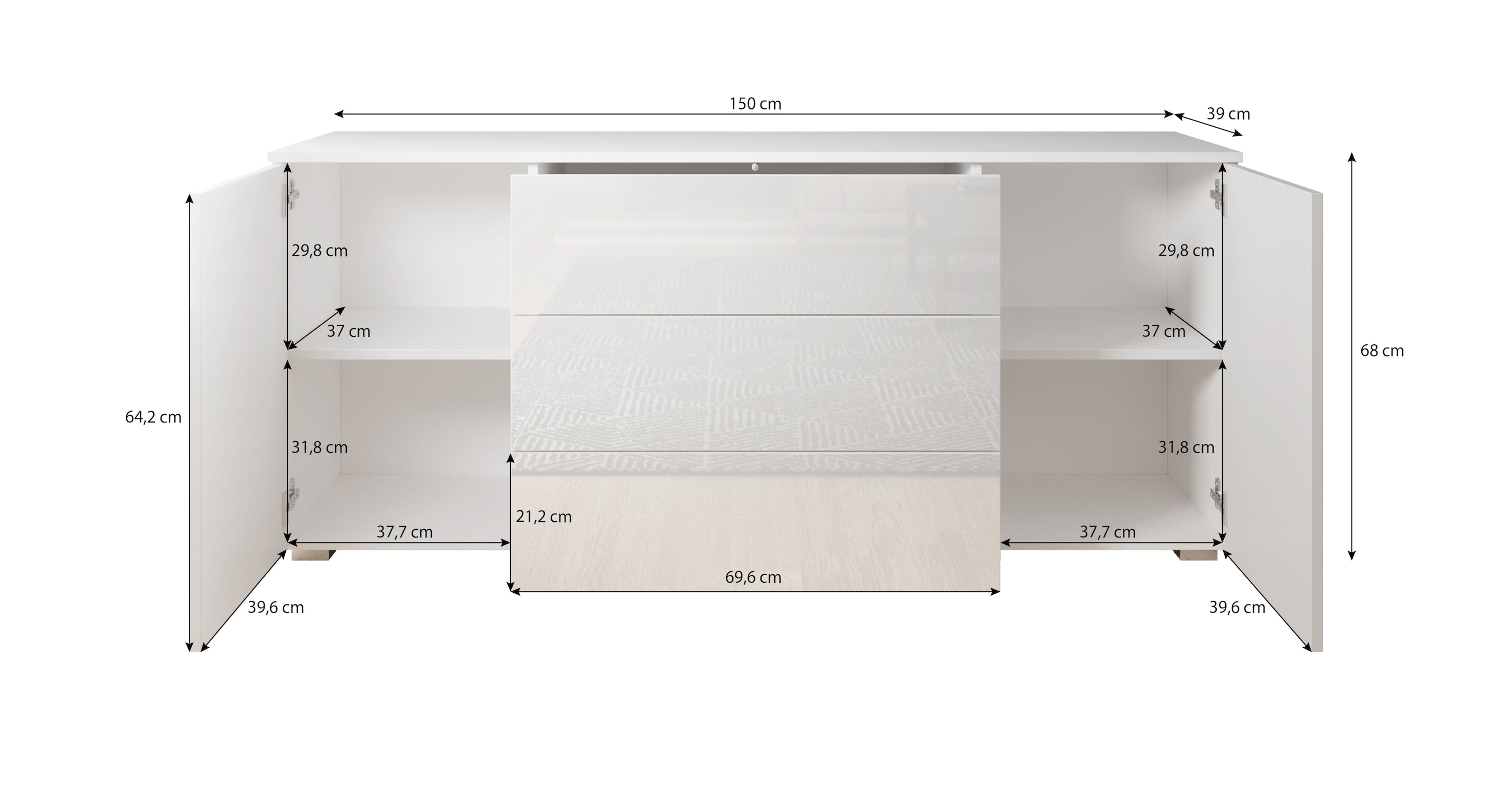 | Maat | H 68 x B 150 x D 39 cm |
