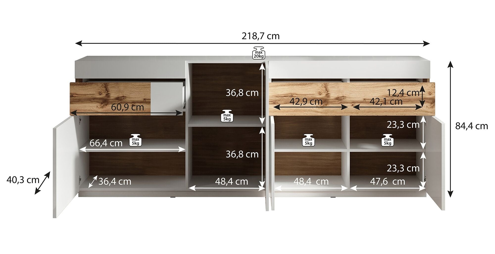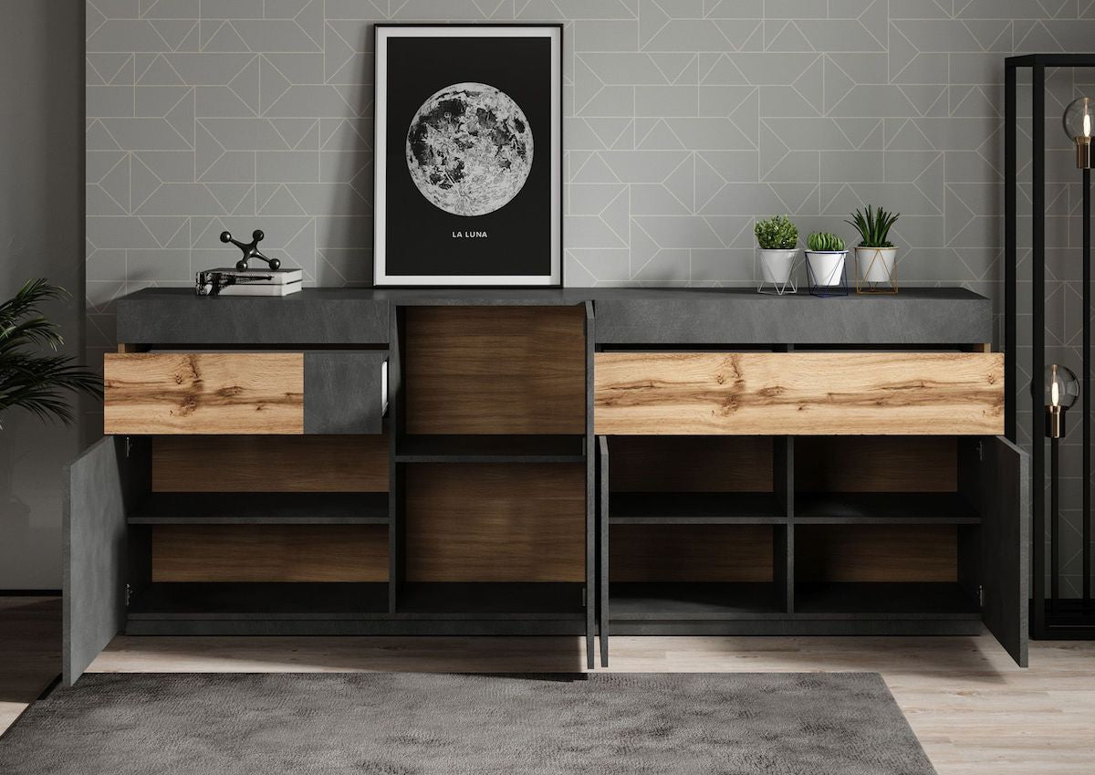 Meubella - Dressoir Sublime - Grijs - Eiken - 219 cm
