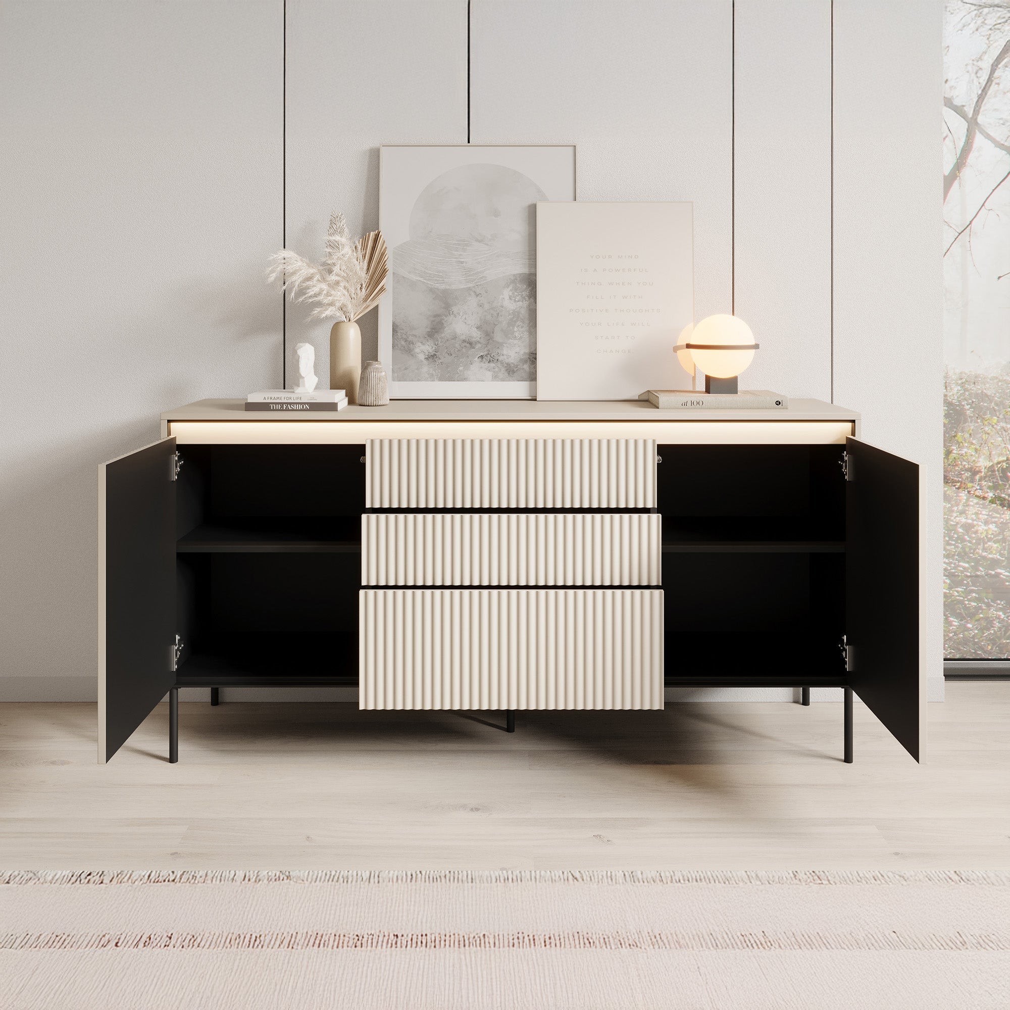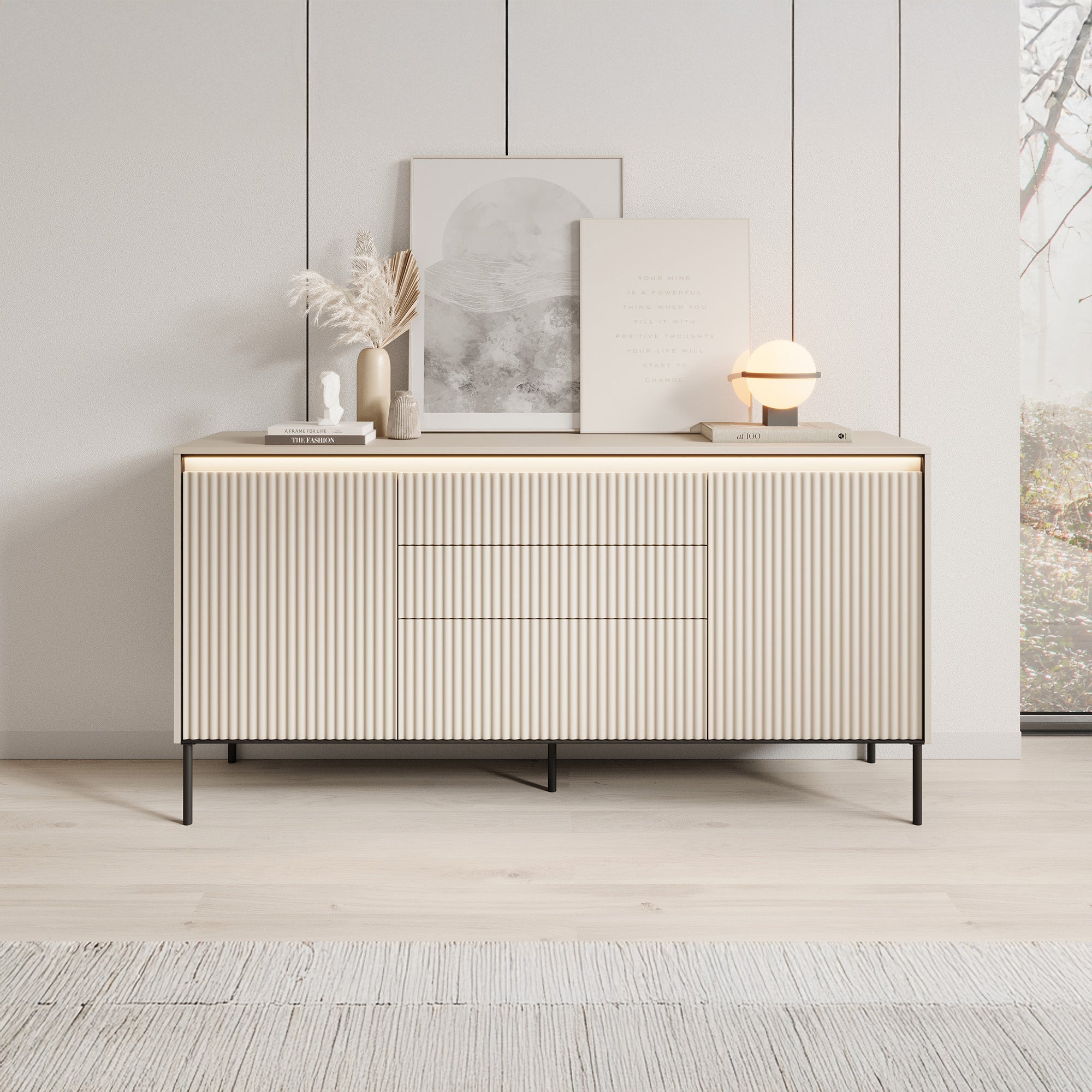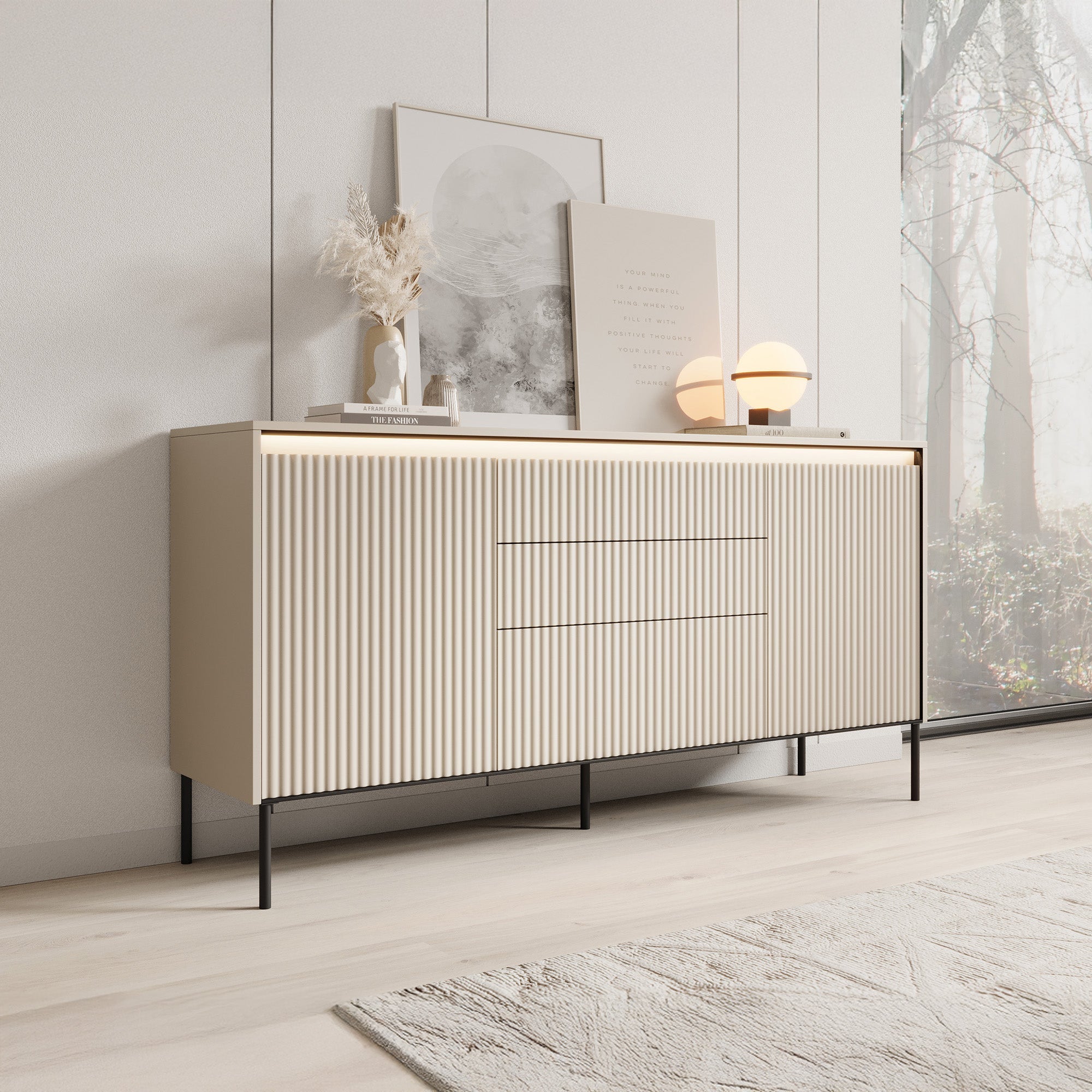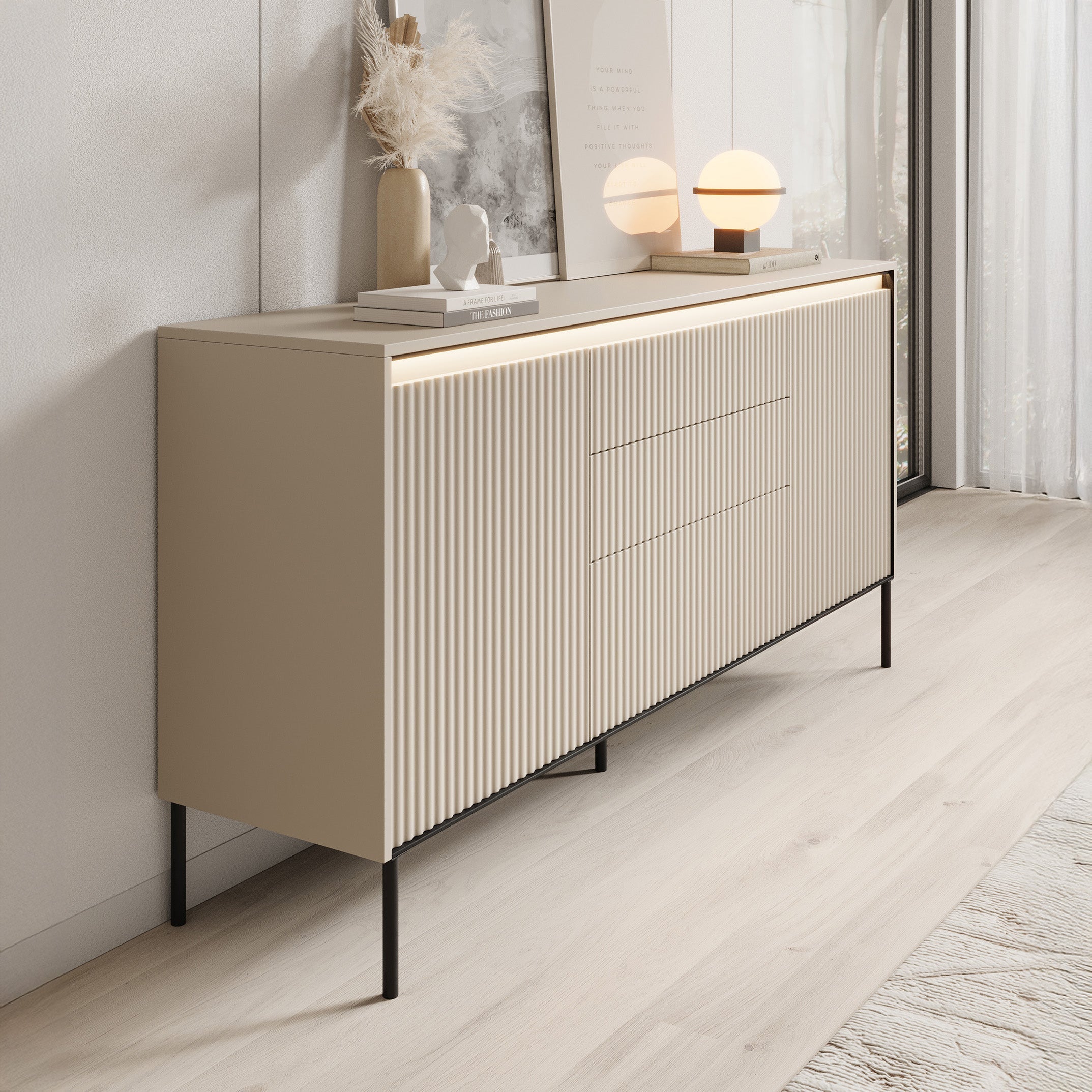 Meubella - Dressoir Timoteo - Beige - 166 cm