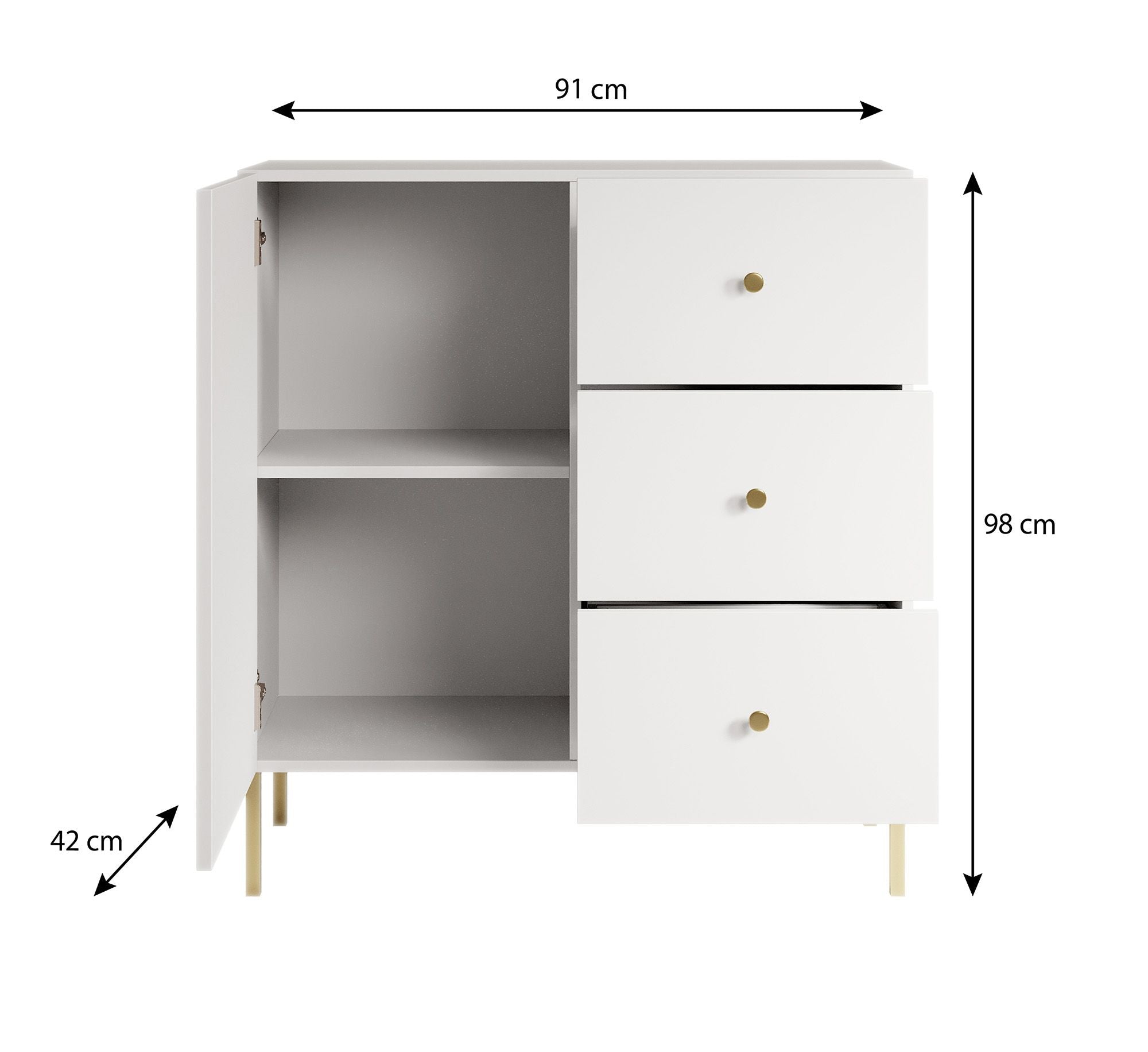 Meubella - Dressoir Vermont - Wit - 90 cm