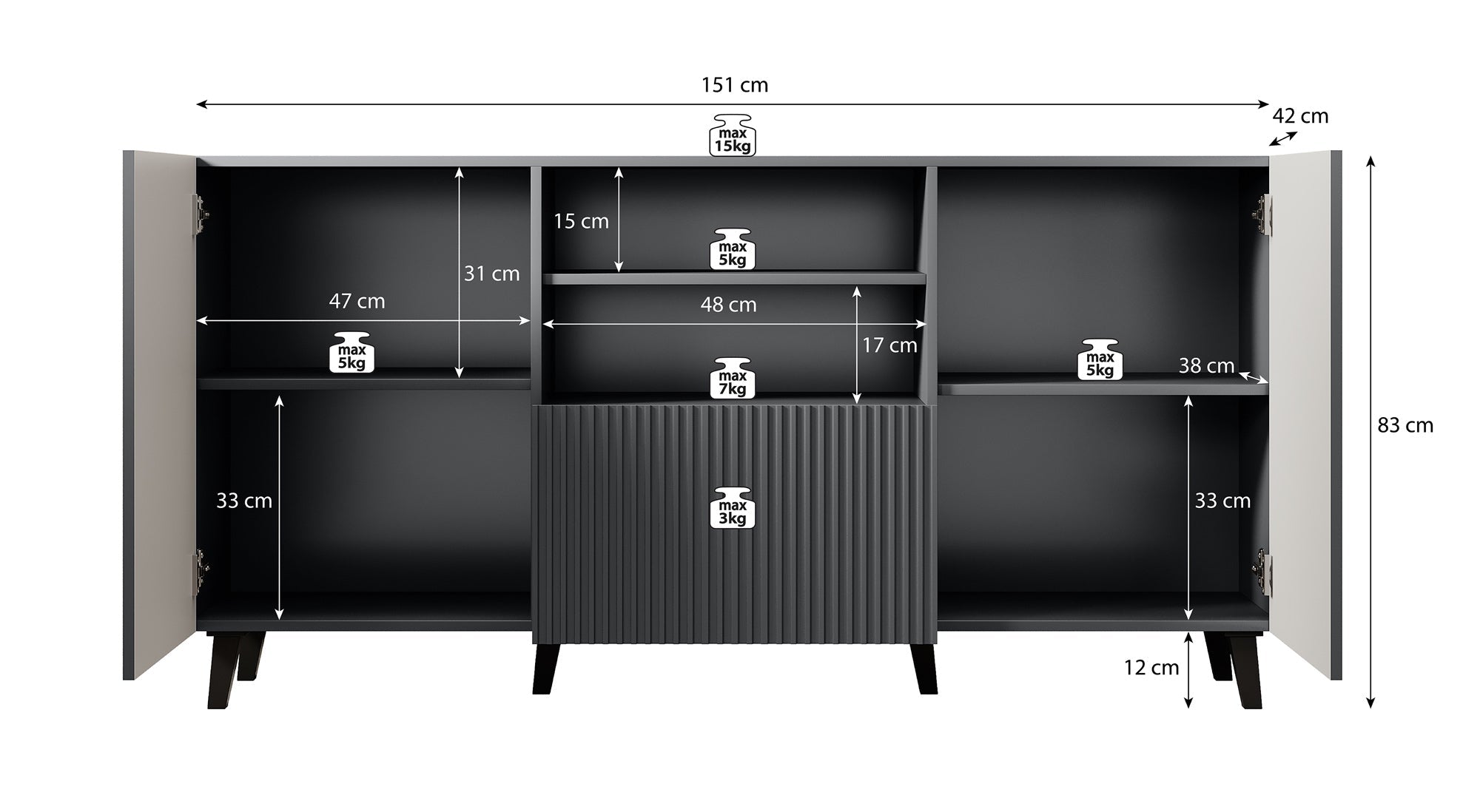 Meubella - Dressoir Vintar - Antraciet - 150 cm
