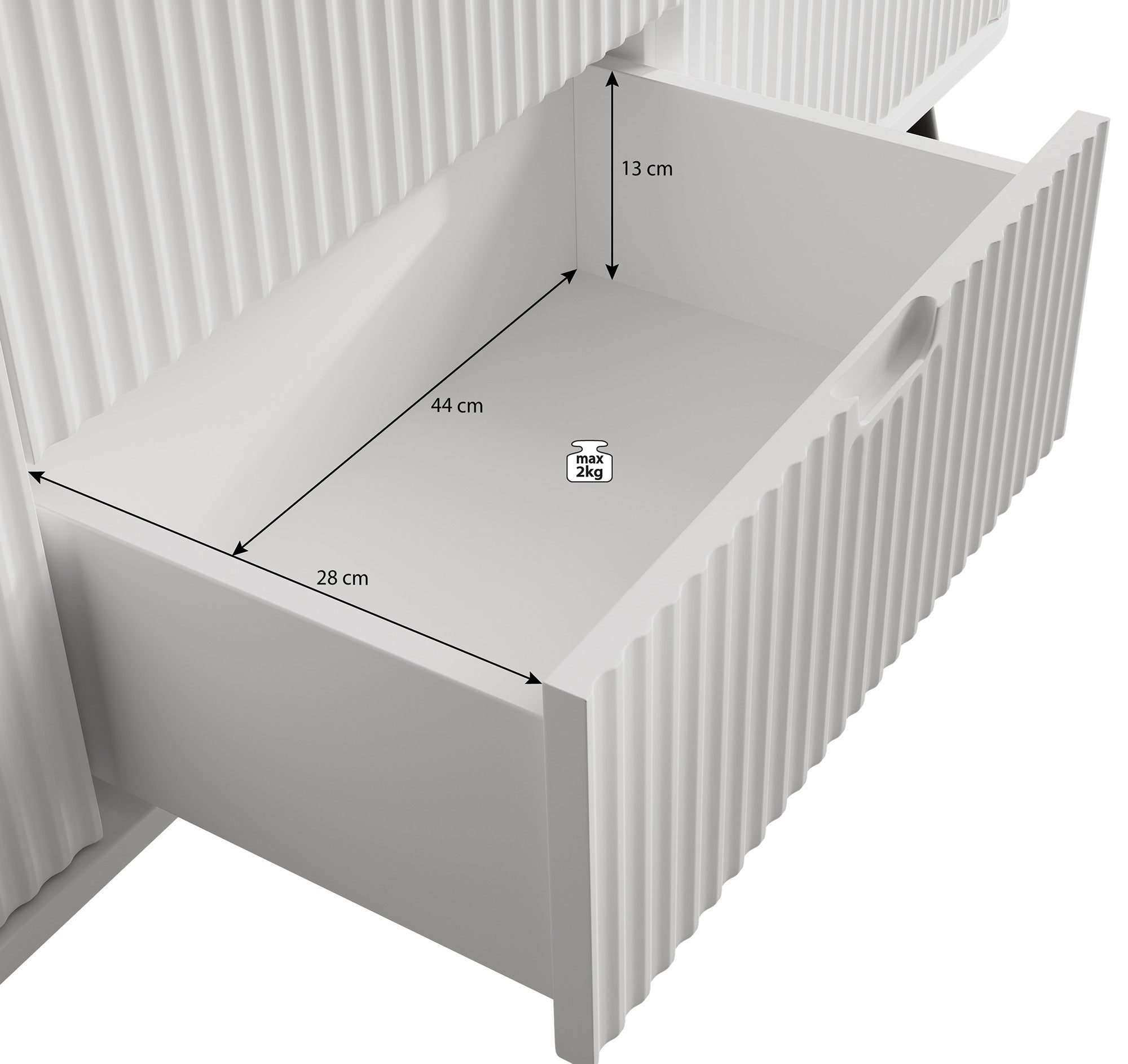 - Deuren en lades met inkepingen aan bovenkant