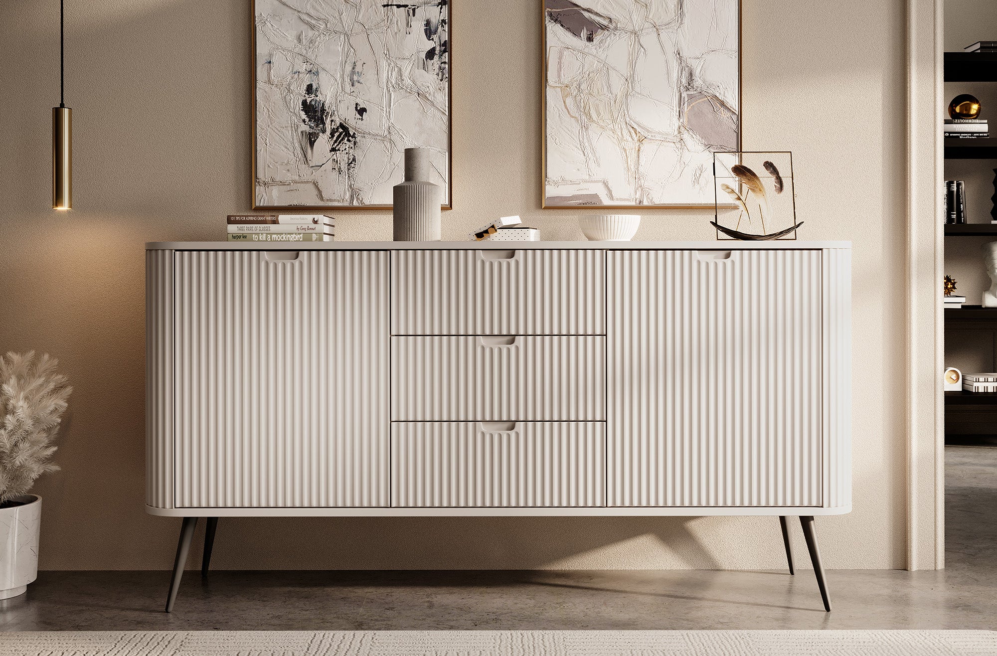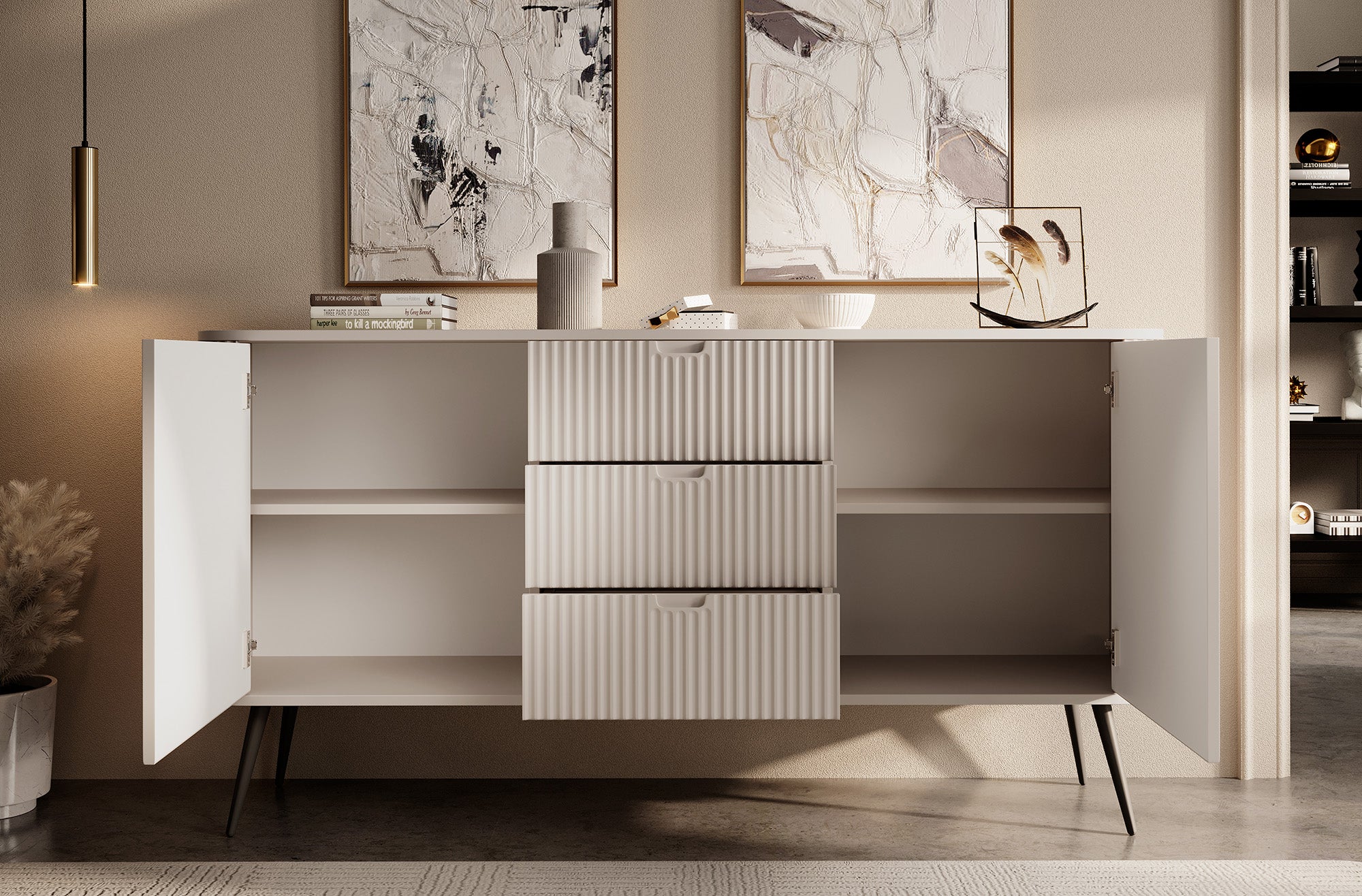 Meubella Dressoir Zakari - Beige - 168 cm